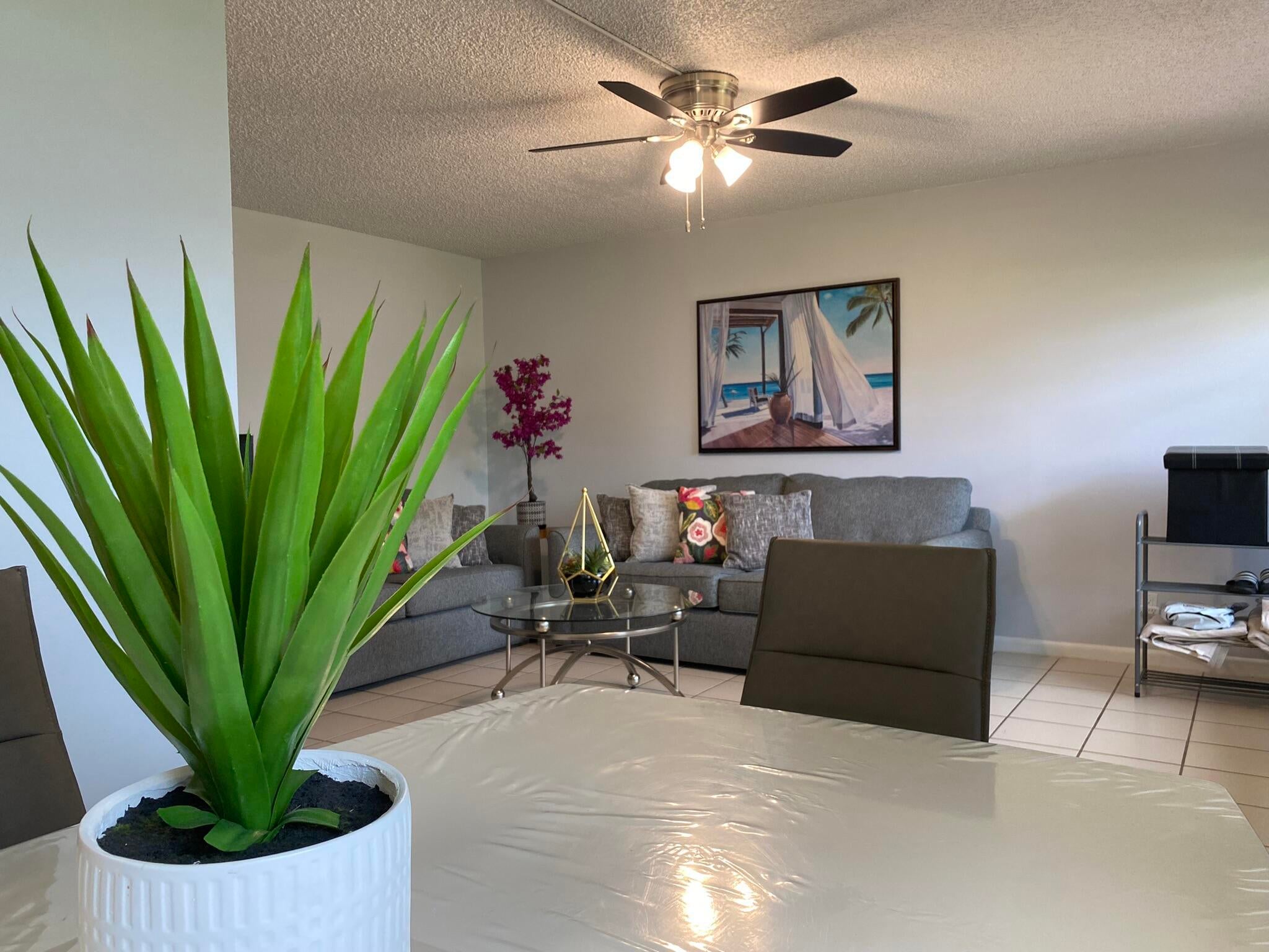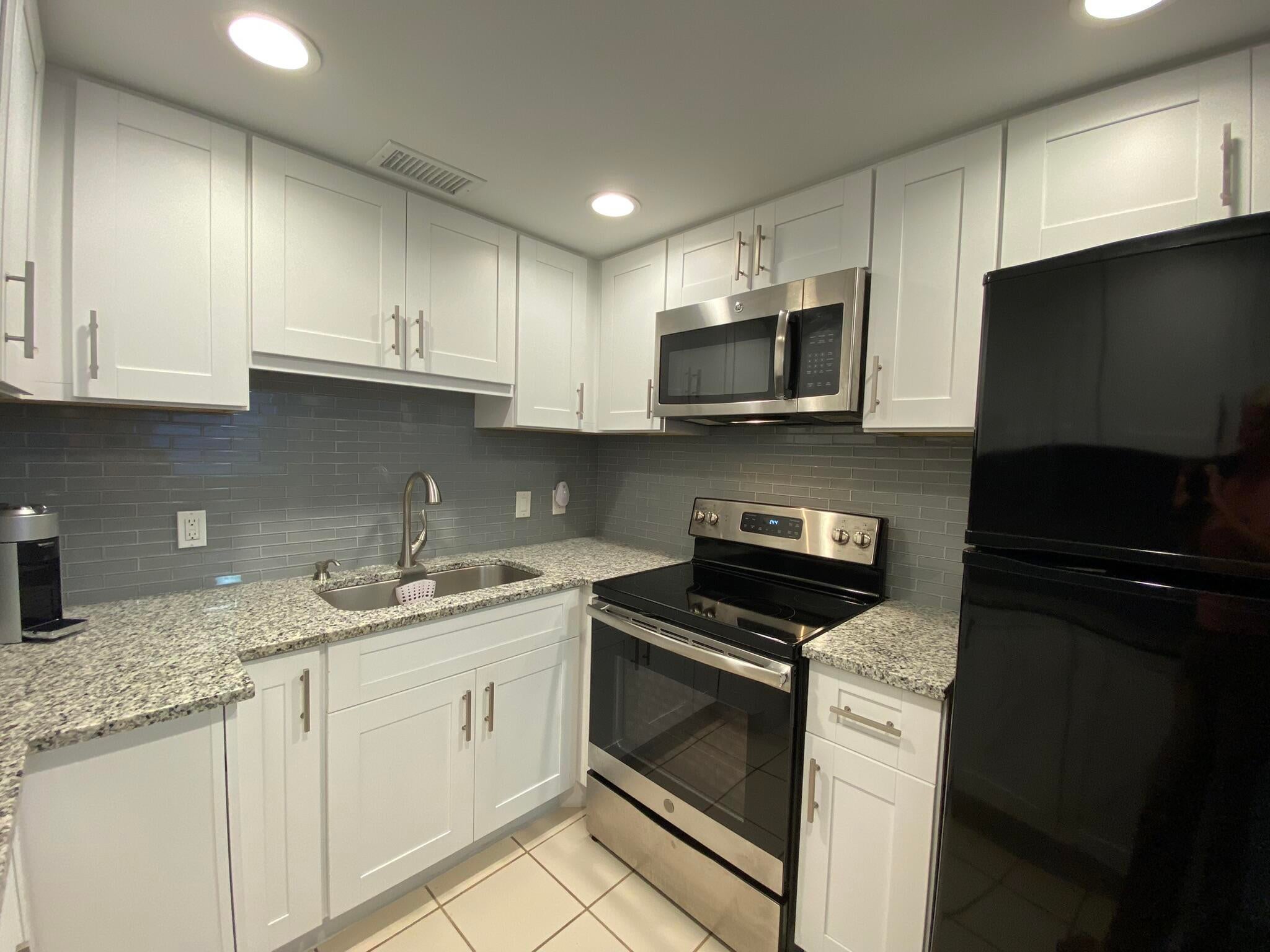 Discover your dream home in this recently remodeled 2-bedroom, 1.5-bath condo in the heart of Century Village, West Palm Beach--a vibrant 55+ community where luxury meets lifestyle! This first-floor gem boasts modern upgrades, including a contemporary kitchen with newer appliances, fully updated bathrooms with a step-in shower, and gleaming ceramic flooring throughout. Stay cool with central AC and unwind on your enclosed private patio, opening to a serene backyard garden with lush grassy views and mature trees--perfect for morning coffee or evening relaxation.Located in the prestigious Windsor N section, this condo offers unmatched comfort and convenience. Step into a bright, open layout designed for easy living, with every detail thoughtfully updated. Beyond your door, Century Village's Century Village's resort-style amenities await: multiple pools, a 1,200-seat theater, state-of-the-art gyms, libraries, hobby rooms, and a packed calendar of social activities. Plus, enjoy the community bus for hassle-free exploration. Just 15 minutes from pristine beaches, Palm Beach International Airport, and premier shopping, this is South Florida living at its finest.