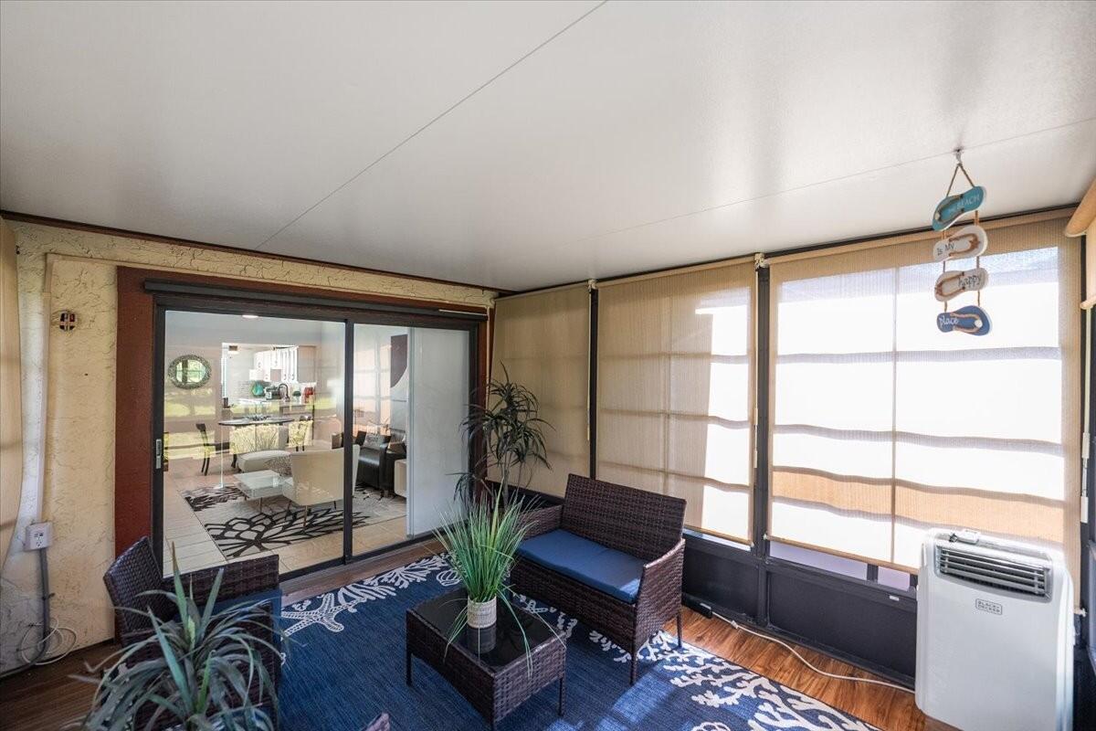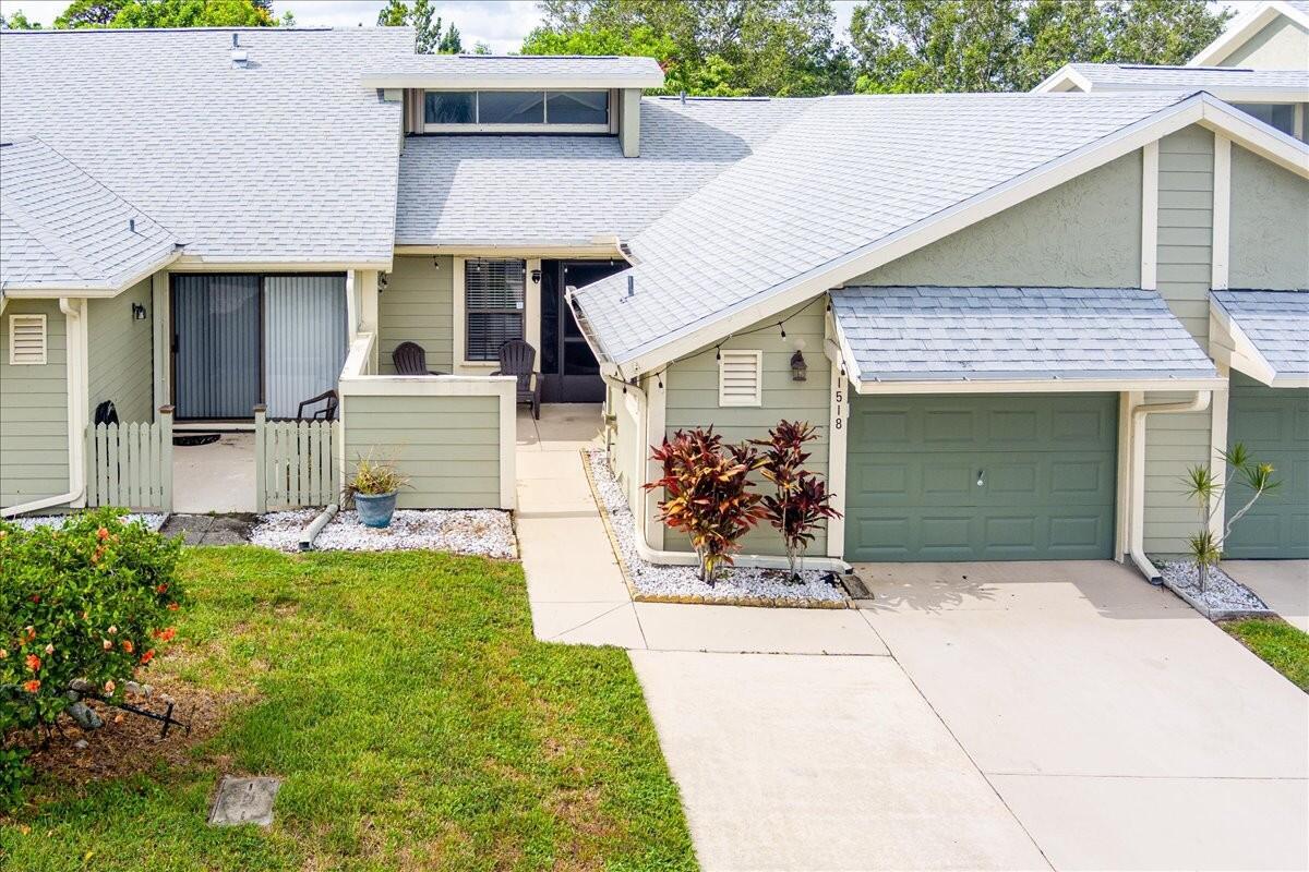 What a little jewel - this 2 bedroom 2 bath one car garage is totally renovated and upgradedIt shows like a model and is turnkey ready for youThe kitchen has quartz countertops, tile back splash and is fully upgraded.The bathrooms are remodeled The vaulted ceiling give the unit and light, large airy feelingThe brand new furniture is negotialble.newer roof 2022 - new A/C 2025The Florida room is perfect for relaxing in cooler weather and enjoying the park likesetting backing up to a water way The villa is just minutes from the beach,shopping, restaurants, hospitals and the Mid Florida Event Center Perfect as for retirement or second home