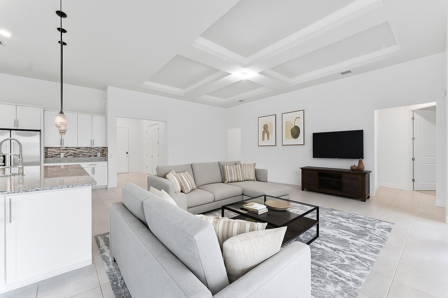 Welcome to this stunning 4-bedroom, 3-bathroom home located in The Fields. This immaculate residence boasts a spacious and open-concept floor plan, perfect for modern living and entertaining.Step inside to discover a beautifully upgraded kitchen, featuring sleek white shaker-style cabinetry, gorgeous granite countertops, a stylish subway tile backsplash, and a large center island with a breakfast bar.The kitchen is equipped with top-of-the-line stainless steel appliances, making it a chef's dream. The living areas and bedrooms are adorned with elegant, light wood-look tile flooring, creating a seamless flow throughout the home. The spacious master suite offers a tranquil retreat with an en-suite bathroom that includes a dual-sink vanity and a walk-in shower. The two additional bedrooms are generously sized and share a well-appointed second bathroom. Outside, you'll find a private, fenced-in backyard with a lovely patio area, providing the ideal space for outdoor dining or simply relaxing. The home also features a 3-car garage and a modern exterior with a tile roof. This property is a true gem, combining modern upgrades with comfort and style in a desirable border of Wellington location. Don't miss your chance to make this your new home!