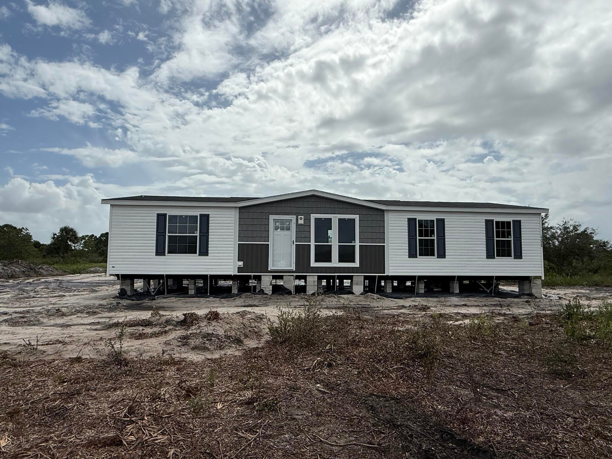Brand New 3BR/2BA | 1.25 Acres | Prairie/Viking Community Move-in ready and beautifully upgraded, this 1,493 SqFt Champion Embrace home offers a modern split floor plan with warm wood tones, accent walls, and contemporary interior design throughout. The spacious kitchen features a coffee bar, built-in microwave, pantry cabinet, large island with pendant lighting, and contrasting countertops. A separate dining area flows into the inviting living room, while the interior laundry room includes built-in cabinets and a hanging rack for added convenience. The private primary suite is designed for comfort, offering a standalone soaking tub, oversized walk-in shower, double vanity, and tall linen cabinet. Additional upgrades include finished drywall throughout, stainless steel appliances, black fixtures, and walk-in closets. Set on a beautiful 1.25-acre AG-zoned lot, this property is perfect for animals, recreational vehicles, and future plans for a barn, garage, or pool. Conveniently located just a short drive from Lake Okeechobee and the City of Okeechobee for shopping, dining, and medical services. Seller has additional move-in-ready homes available. Schedule your showing today!Photos are for illustration purposes only and may depict a similar home. Actual finishes, colors, and features may vary.