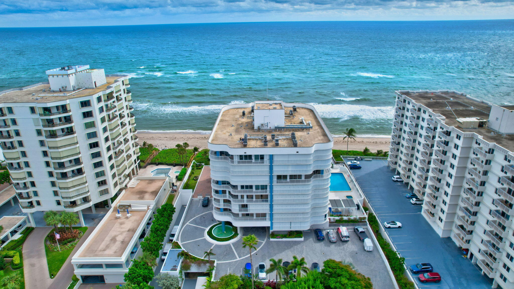 Stunning Corner Unit in Boutique Oceanfront Building Experience unparalleled luxury and breathtaking views in this exquisite 3 bedroom, 4 bathroom corner condo located in a prestigious boutique oceanfront building located directly on the sand in Highland Beach, Florida. Brand new hurricane windows. Spanning over 2,500 square feet, this meticulously maintained residence features panoramic intercoastal and ocean vistas from every room, ensuring you're always surrounded by natural beauty. The southwest corner location provides a unique vantage point, enhanced by a spacious wrap-around balcony - a perfect setting for morning coffee or evening sunsets.The thoughtfully designed owner's suite is a true retreat, boasting two generous walk-in closets with custom built-in shelves and luxurious his-and-her bathrooms ensuring comfort and convenience. Each of the two additional bedroom suites offers its own en-suite bathroom, making this condo ideal for guests or family. The expansive living room is perfect for entertaining, seamlessly blending elegance with a welcoming ambiance. This unit is ready for your designer touches and additional features include hurricane shutters for peace of mind and two designated parking spaces. Residents of this exclusive building enjoy a wealth of amenities, including a state-of-the-art fitness center, a sparkling pool, a rejuvenating sauna, and convenient storage options, including dedicated wine storage. Take advantage of miles of pristine sandy beaches just outside your door. Recent updates to the building include a stunning new lobby, a beautifully designed clubroom, and refreshed hallways, elevating the overall aesthetic and ambiance. This is a rare opportunity to own a piece of paradise where luxury meets value. Don't let this chance slip away schedule your private showing today! Conveniently located to dining, shopping, entertainment all major airports and highways.