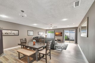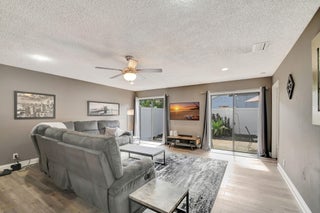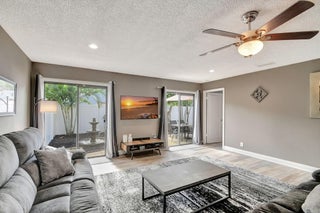 Welcome to this meticulously maintained and completely renovated 3 bed 2 bath + BONUS ROOM with oversized driveway for 3-5 cars. With Over 1600 sqft under air, no detail has been overlooked inside and out. All new flooring and baseboards in every room, the kitchen wall opened to make the room feel even bigger. All stainless steel Samsung appliances. 3 huge glass sliders and a glass block wall in the shower that brings in a ton of natural light. New AC, new fence, new hot tub, new electrical box, new gutters, and that's just to name a few of the many upgrades. Backyard is perfect for entertaining with its tranquil fountain and tropical landscape. Front and side yard redone to provide a low maintenance property with an even lower HOA at just $165. Also all Furniture negotiable.