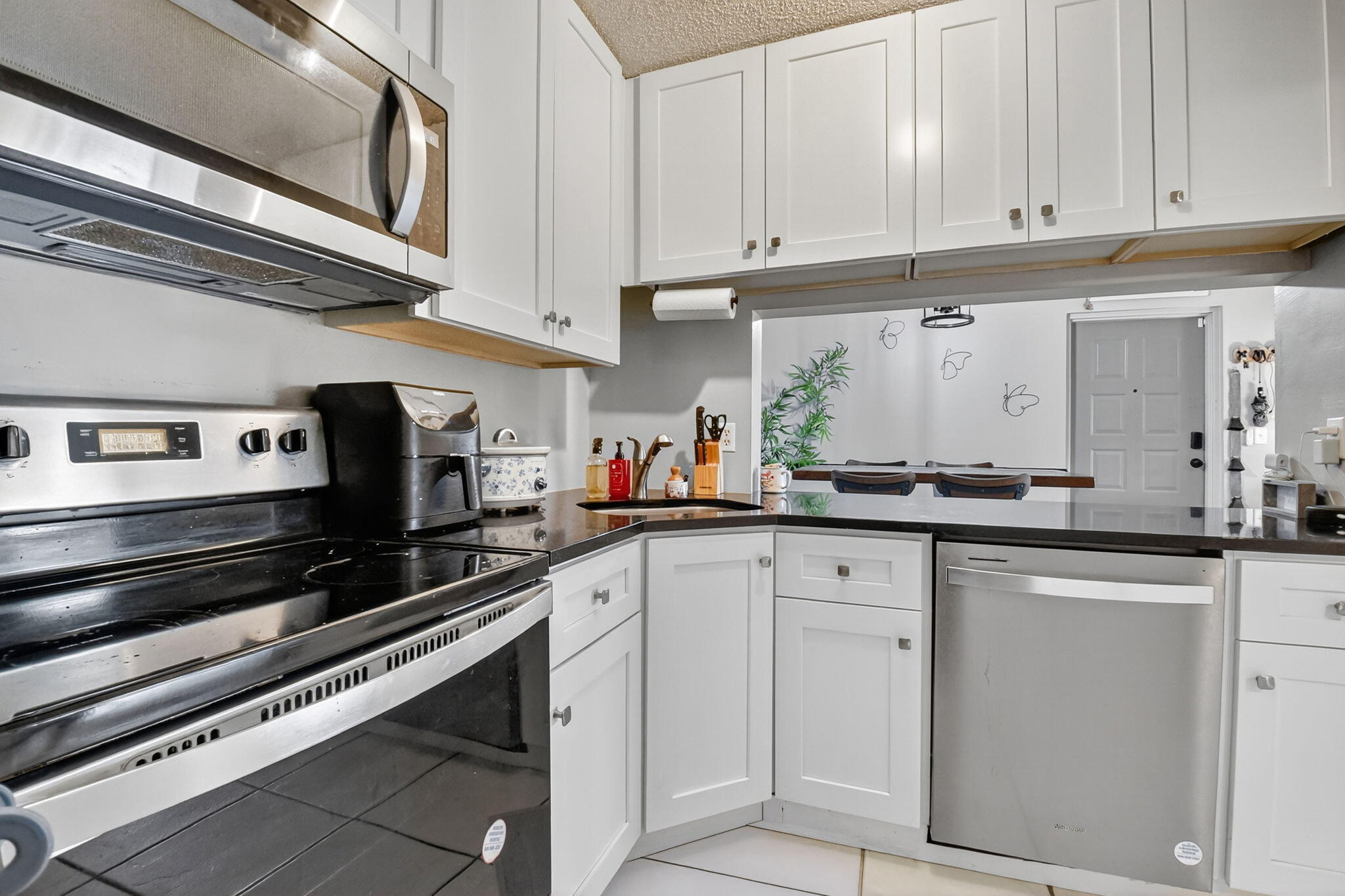 Dishwasher, Dryer, Microwave, Range - Electric, Refrigerator, Storm Shutters, Washer, Water Heater - Elec