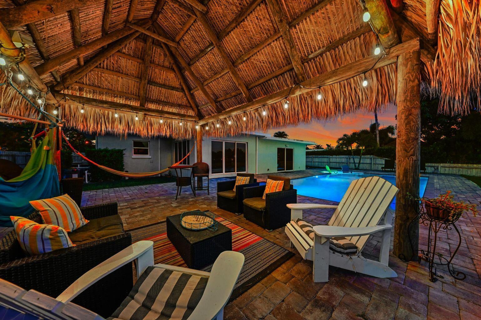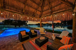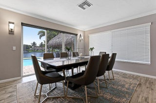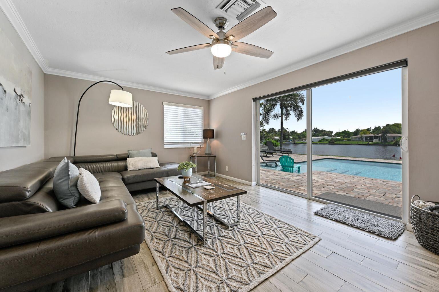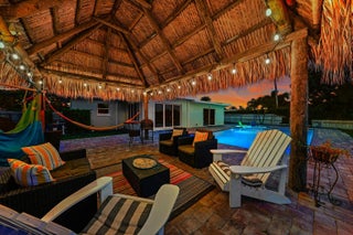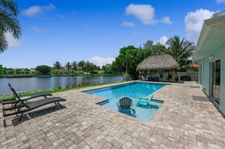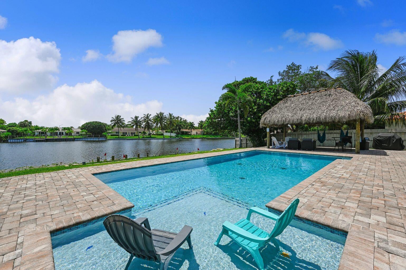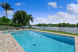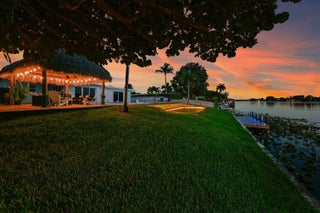 Exceptional Lake Clarke Shores pool home with approximately 100 feet of lake frontage and a private dock. This well-maintained 3-bedroom, 2-bathroom residence offers over 2,070 sq. ft. of living space, a spacious kitchen, and expansive water views from the main living areas. The backyard oasis features a salt water pool, hot tub, tropical landscaping, and direct lake access for boating, paddle boarding, and fishing. Conveniently located near shopping, dining, and the beaches. Offered by ownership entity; all showings by appointment only. Exclusions: All interior and exterior furniture, all storage items in the garage, and the hot tub do not convey. Some photos may display items that are excluded.