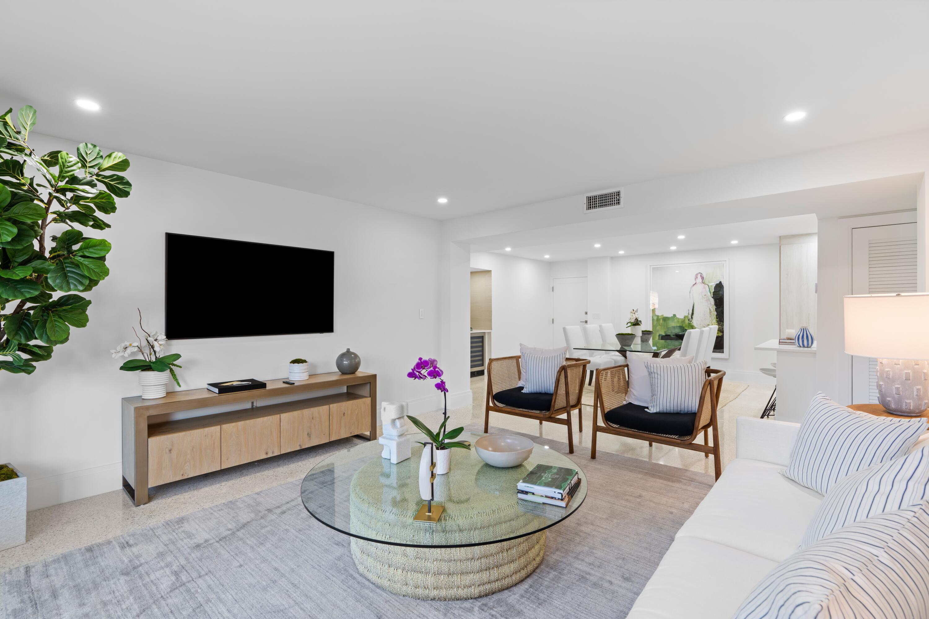 Pristine, low floor, residence with exquisite interior furnishing and design by Meredith Baer. Partial ocean views from all main rooms. Enjoy the private beach across the street or soak up the Palm Beach sun around the beautiful pool. A quiet, in-town, location with close proximity to shops and restaurants. Additional building amenities include a gym, club room, bicycle storage, changing rooms and cabanas..