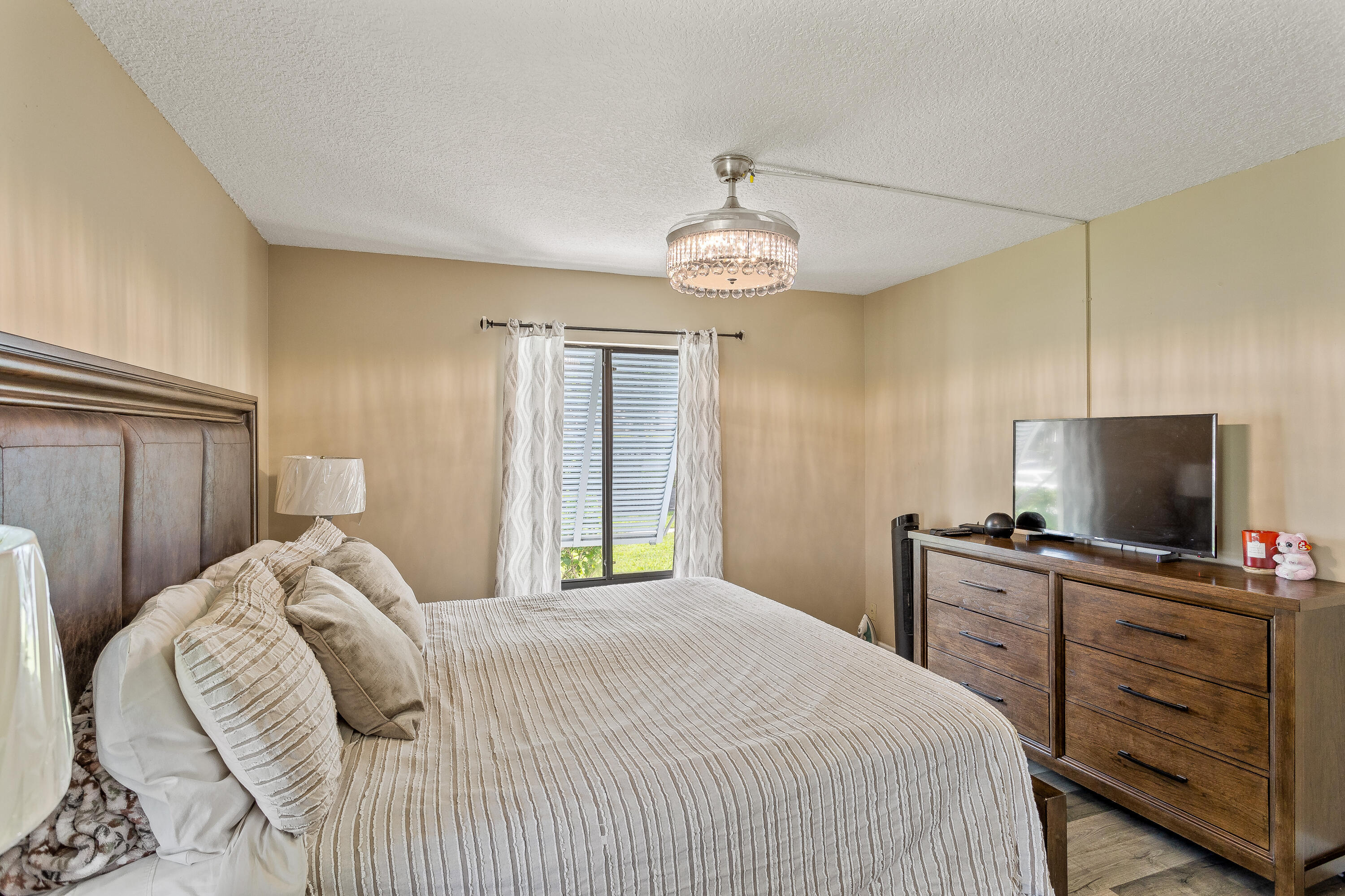 Step into this highly sought-after, 1st-floor 2-bedroom, 2-bath garden condo, where comfort meets style. The expansive kitchen is a chef's dream, boasting wall-to-wall cabinetry, abundant storage, and even a built-in office area perfect for working from home. Both bathrooms shine with full renovations, featuring stunning large-format tiles for a sleek, modern touch. The bedrooms have been upgraded with brand-new waterproof laminate wood plank flooring, combining beauty and durability. A spacious laundry room with full-size washer and dryer makes everyday living effortless. Relax year-round on your screened-in patio with roll-down shutters, offering privacy and peace of mind. Located in a gated community with 24/7 manned security, you'll enjoy access to a sparkling pool, tennis and racquetball courts, close to downtown, restaurants, and shopping.