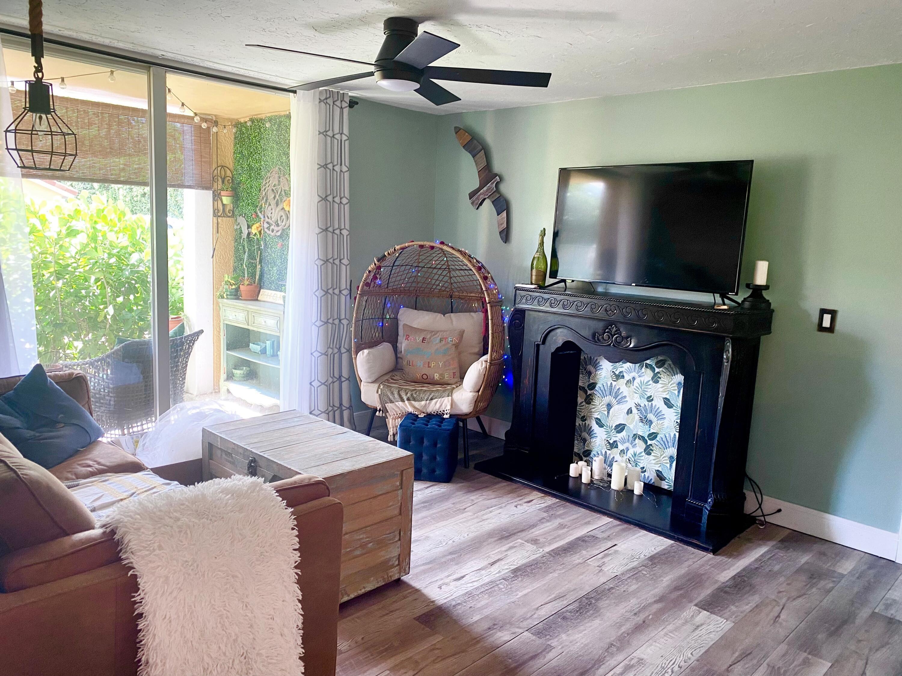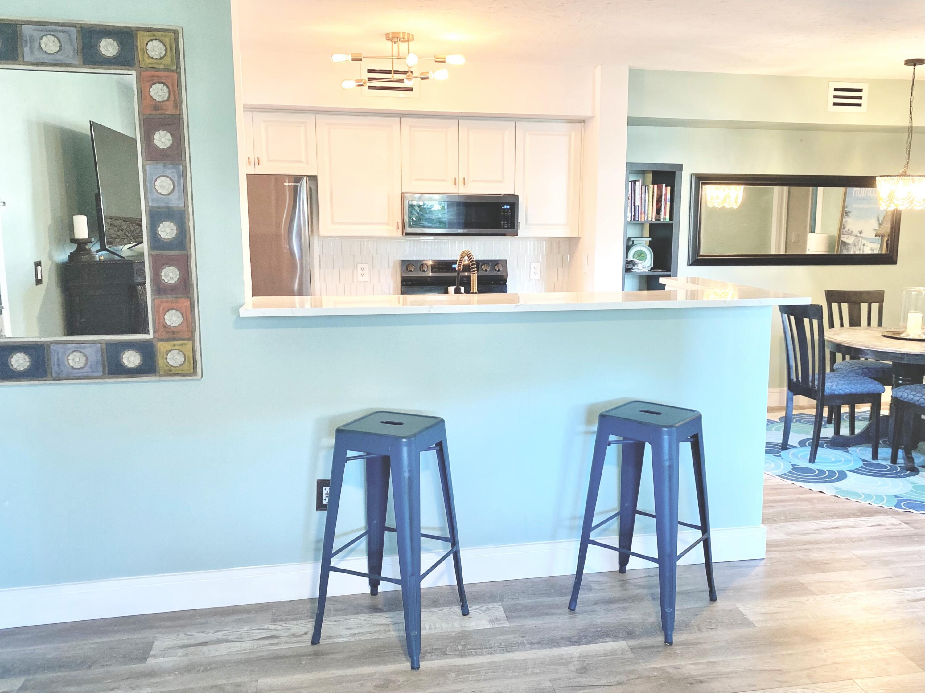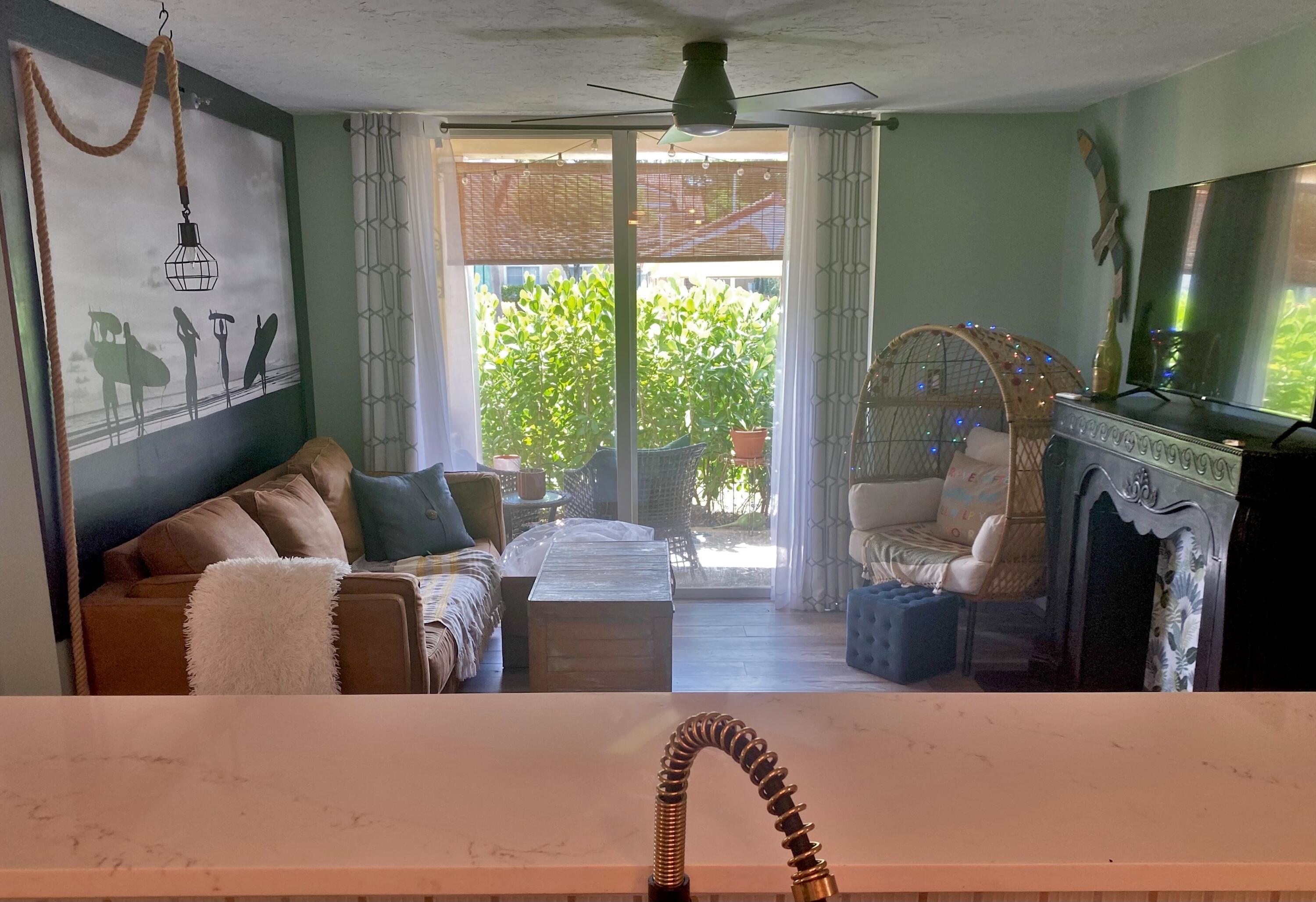 Stylish Corner Unit in a highly sought after Intracoastal Waterfront Community. Enjoy coastal living in this refreshed corner-unit condo with a first-floor private entry. The kitchen features quartz counter-tops and black stainless steel appliances with spacious laundry/pantry area complete with pantry cabinet and additional beverage refrigerator and storage shelves. Main living areas have luxury vinyl wood plank flooring throughout, private patio with a trendy green wall perfect for relaxing while overlooking the brand-new pickle-ball/tennis courts.Set in a pet-friendly, all-ages community, residents enjoy resort-style amenities: waterfront pool and clubhouse, pickle-ball, fitness center, waterfront tiki hut-BBQ area, theater room, dog park, onshore fishing area, plus Marina.Marina with boat slips just minutes to the Boynton Inlet. (available for rent or purchase when offered, for an additional cost). Partial furnishings make moving in easy. Pet friendly community (large dogs Ok!) Rentals allowed immediately, proven rental history, ideal for investors, seasonal rental income, or 2nd home vacation getaway. Close to beaches, waterfront dining, and everything the Intracoastal lifestyle offers. Maintenance fees include building insurance, High-speed fiber optic internet and cable tv, and water!