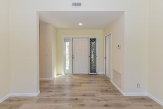 Impact windows and new vinyl flooring. Enjoy views of the Osprey Creek golf course from this move in ready villa. This gated community offers options for golf and social memberships, but not required. Experience peace of mind with PGT impact windows and slider and newer A/C (2019) and hot water heater (2024). The kitchen is spacious and bright. Home is vacant, photos with furniture are virtually staged.