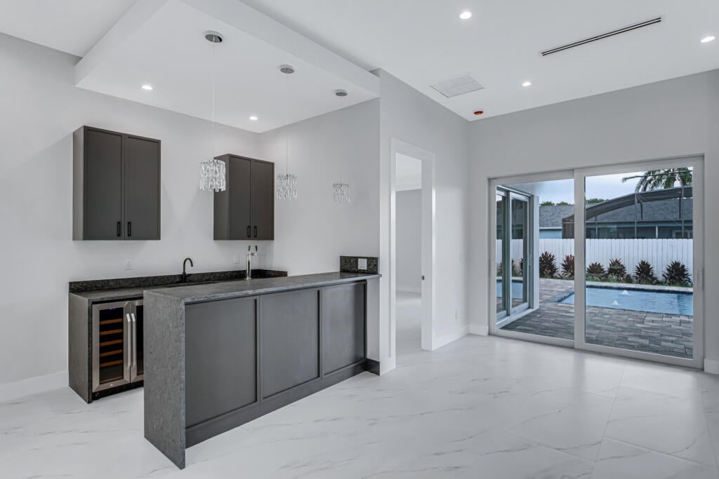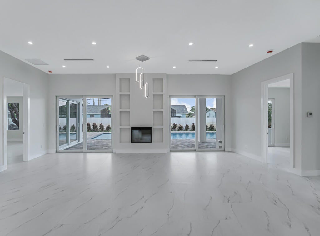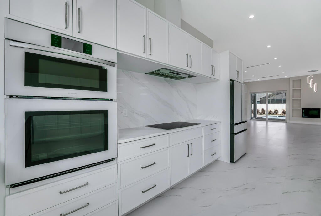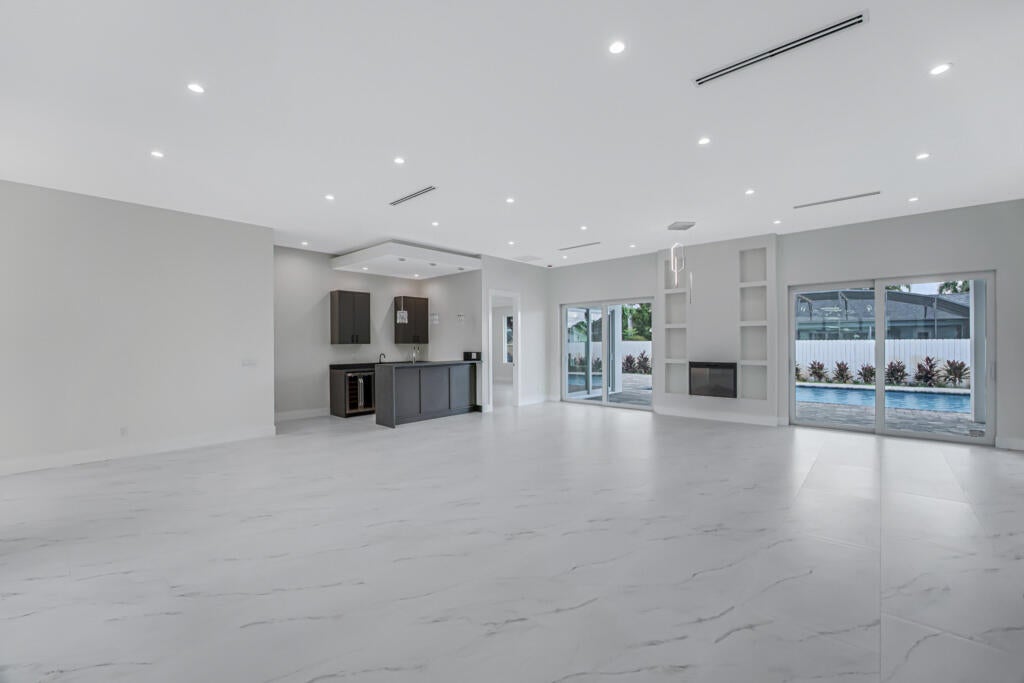 New-construction custom residence offers luxury living and gracious entertaining opportunities. five bedrooms, four and one half bathrooms with over 3289 living and over 4355 total square footage. A T-shaped kitchen island is a chef's dream, featuring a cooktop, wall oven, and ample storage. A decorative fireplace adds warmth to the living area. Step outside to a backyard with a pool and an open feel. The residence also features complete hurricane impact windows and doors, a wet bar, a laundry room with custom shelving, and an oversized single-car garage. Best of all, there's no HOA to limit your freedom. This property is the perfect blend of luxury and privacy, waiting for you to make it your own.