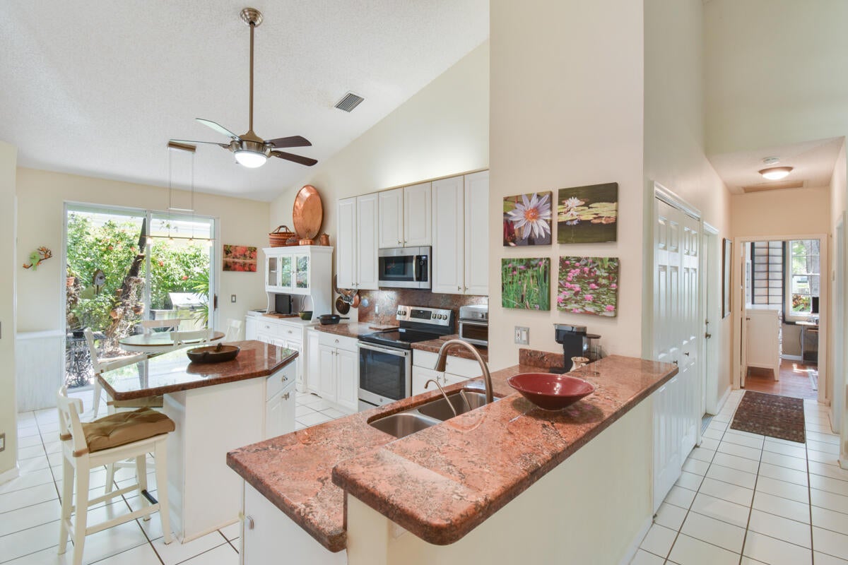 If you are looking for a lifestyle, Eastpointe is one of the best values in Northern Palm Beach County. This single family home, sits on one of the best lots in the development. Free flowing 2 bedroom (den has closet, easy conversion) , 2 bath floor plan. Generous master suite overlooking the 6th hole of the west golf course ( did I tell you they have 2-18 hole golf courses). Updated kitchen with great room concept. Wrap around screen patio, for optimum outdoor enjoyment. Outstanding location in the neighborhood. Everyone buzzes around on their own golf cart to play or socialize. Convenient North County Palm Beach Gardens location with 2 separate neighborhood entrances. All the shopping and dining is right around the corner. Eastpointe has a minimum Social Membership.Full Golf Membership ( Best golf membership value in Northern Palm Beach County).Don't forget to visit The Pointe, located closer to the Donald Ross gate. It's a new entertainment destination on premises with Pool, Lite Bites and drink. Eastpointe is dollar for dollar the best Club Community in Northern Palm Beach County.
