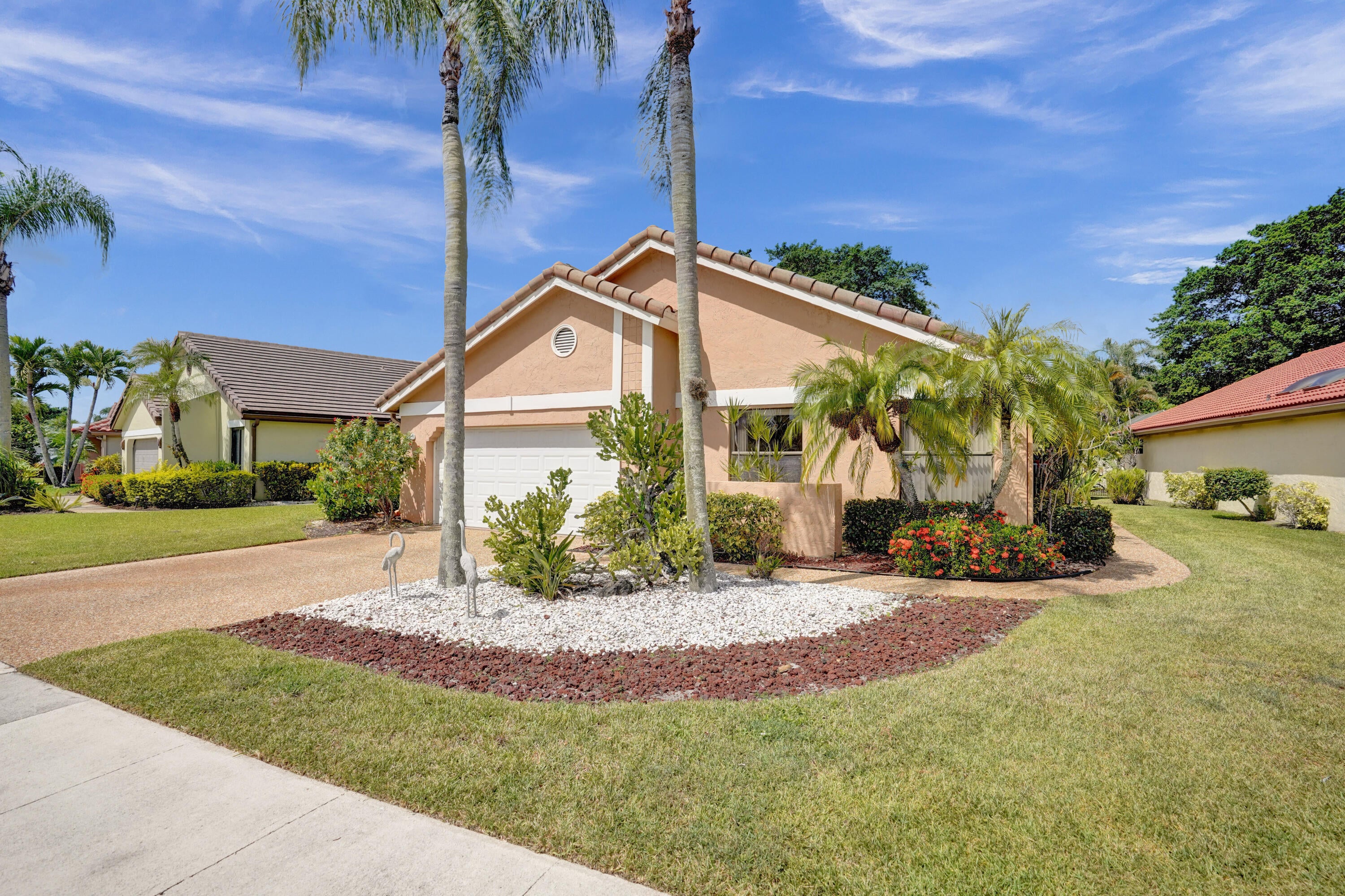Come see this lovely three bedroom, two bathroom home in the all-age community of Boca Woods Country Club. From the moment you enter, you will feel the space and openness...there are cathedral ceilings in the main living area and the kitchen wall has been taken down - the island makes entertaining so easy. Stainless steel appliances and plenty of cabinets. The kitchen and bathrooms were renovated several years ago and they still look great. You will love the amazing primary bathroom with the added linen closet. For continuity, ceramic tile has been used throughout the house. The washer and dryer area has been enclosed and a laundry room was created where there is also an extra refrigerator. And there are no rear neighbors - just a beautiful view of the 6th green of the Lakes course.Membership is mandatory and allows you to enjoy the beautiful newly renovated clubhouse, two fabulous golf courses, Har-Tru tennis courts, state-of-the-art fitness center and spa (including nail and hair salon), Bocce ball, pickleball and fine dining in the clubhouse.