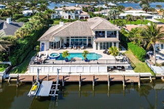 Nestled on one of the many island communities in Ocean Ridge, this stunning home defines the Florida Lifestyle. A desired eastern exposure, this deep water custom home with a 100-foot dock and a 16,000 pound boat lift is a yachtsman's dream. The outdoor entertaining area spills into this majestic home, making this the ultimate place for entertaining. The home boasts a large living area, high-end finishes, fireplace, office, and beautiful pool area, including pool, spa, outdoor shower, and cabana bath. Master suite is located on the lower level and there are 2 guest suites on the second floor with a large balcony with a beautiful view. This home is immaculate and ready for even the most discerning buyer.
