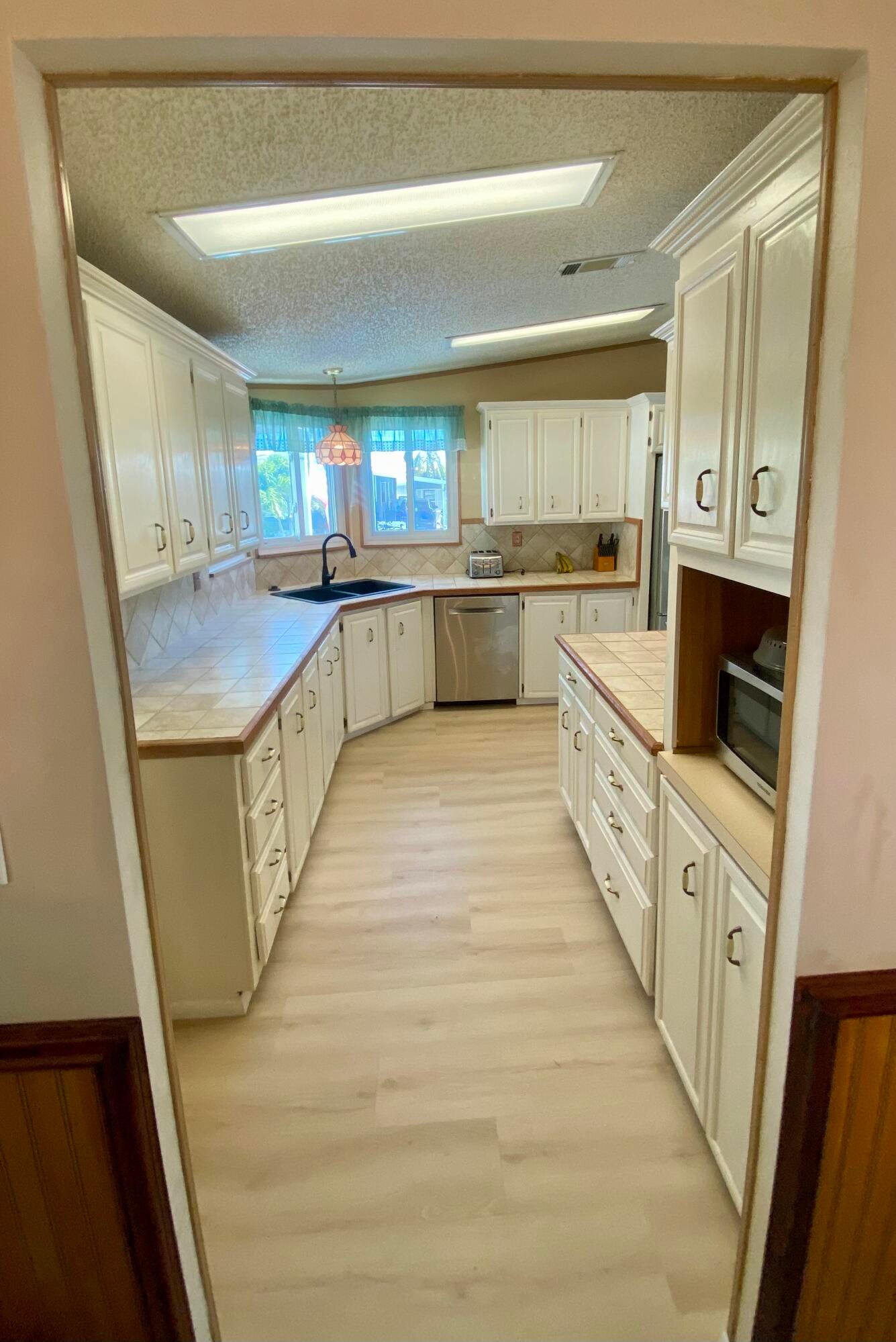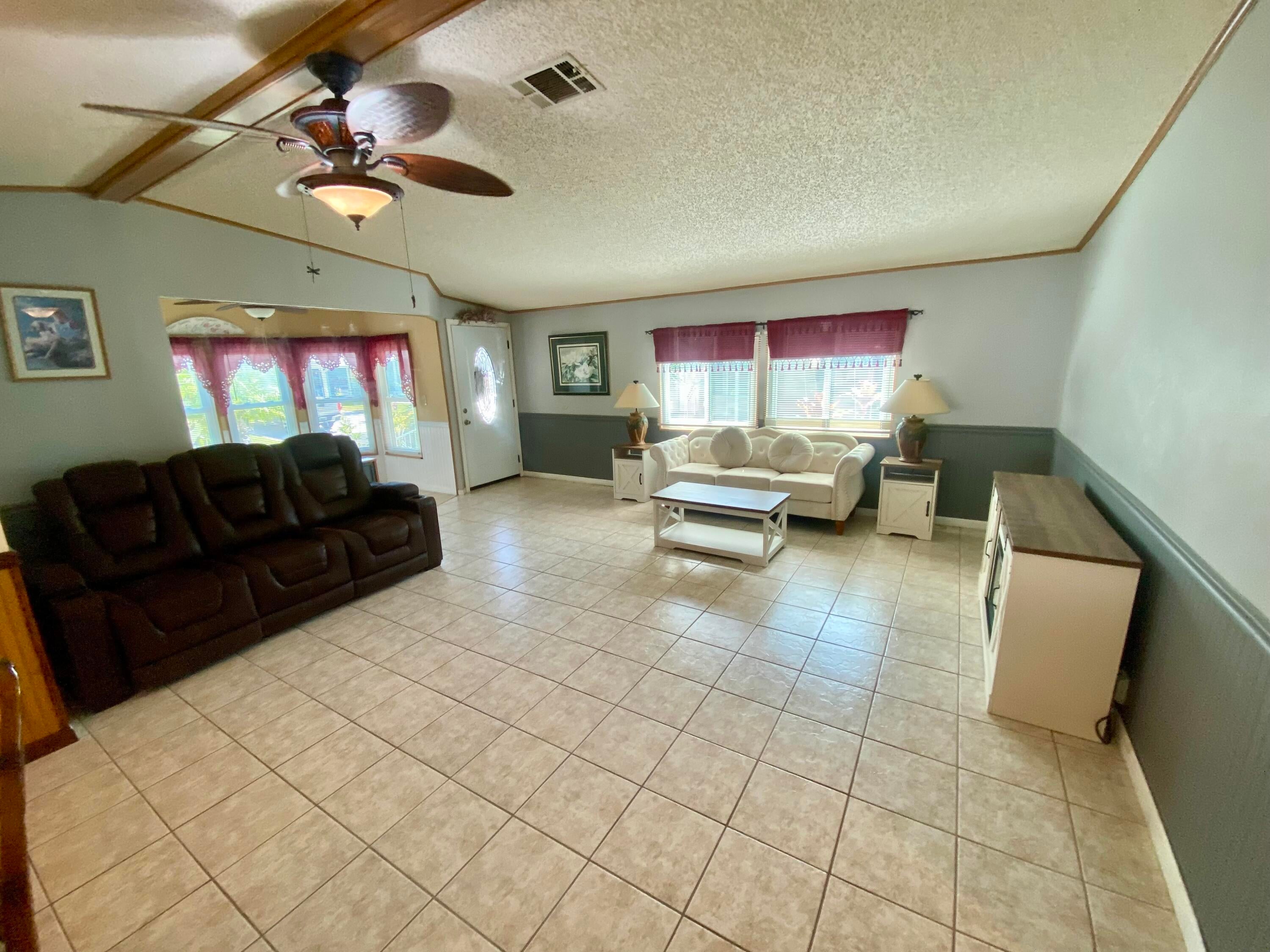 Come by and see this gorgeous 2-bedroom, 2-bath manufactured home in Tropical Isles, a beautiful 55+ community located in Fort Pierce. The first thing you'll notice is the bright & brand new Lifeproof luxury vinyl plank flooring with ample counter space and a custom pantry with an eat-in dinette. The home features a spacious & open living room with vaulted ceilings and a dining area offering plenty of space for both entertaining and everyday living. The master bedroom is beyond spacious, and has a very large and roomy master bathroom while the guest bath has a stunning full-sized skylight! Hurricane windows throughout and comes with a brand new generator to boot! Come make this house your home!
