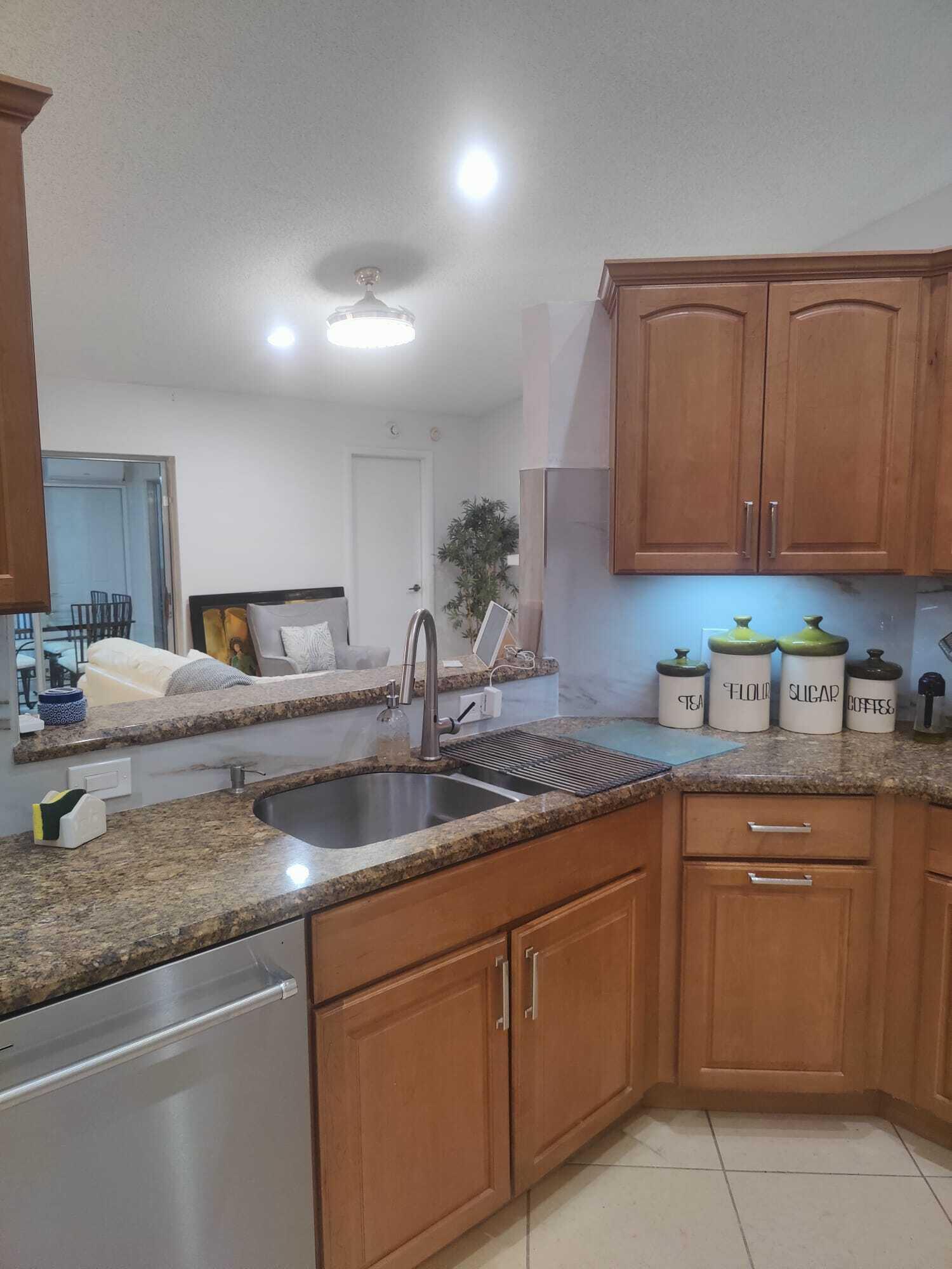 Beautifully Upgraded Corner Villa --New roof scheduled for 2026. Truly turnkey and move-in ready. This spacious corner-unit villa offers comfort and style with vaulted ceilings and skylights that fill the home with natural light. The upgraded gourmet kitchen features granite countertops, new backsplash, rich wood cabinetry, stainless steel appliances, a wine cooler, motion-sensor undermount lighting, touchless faucet, and coffee station. Enjoy remodeled bathrooms, a beautifully landscaped patio, and a new console A/C in the family room.