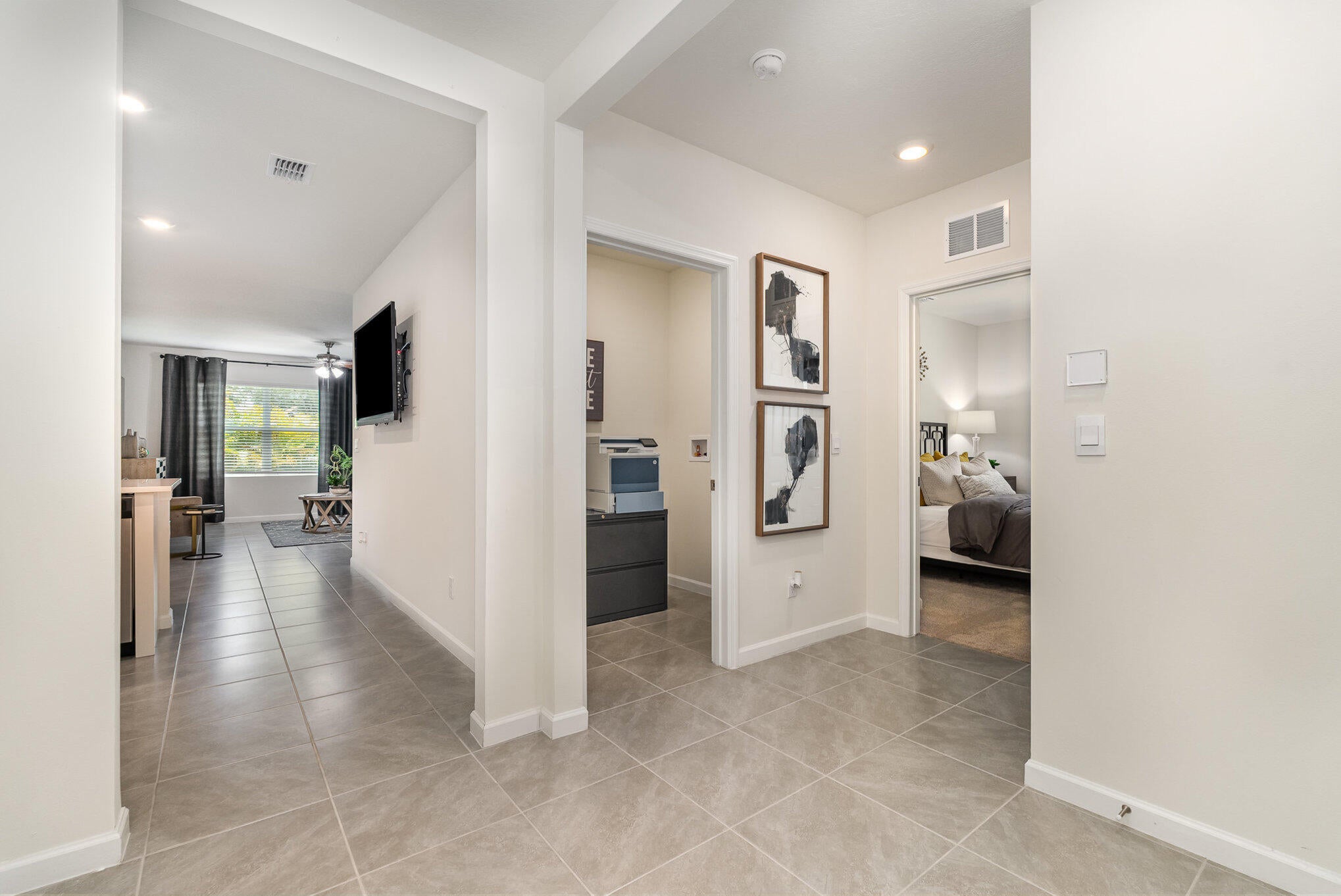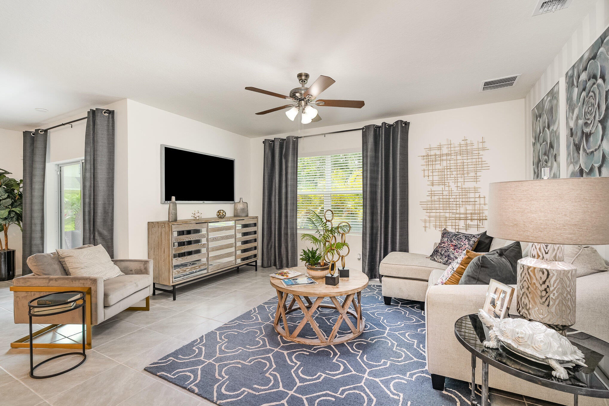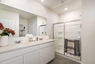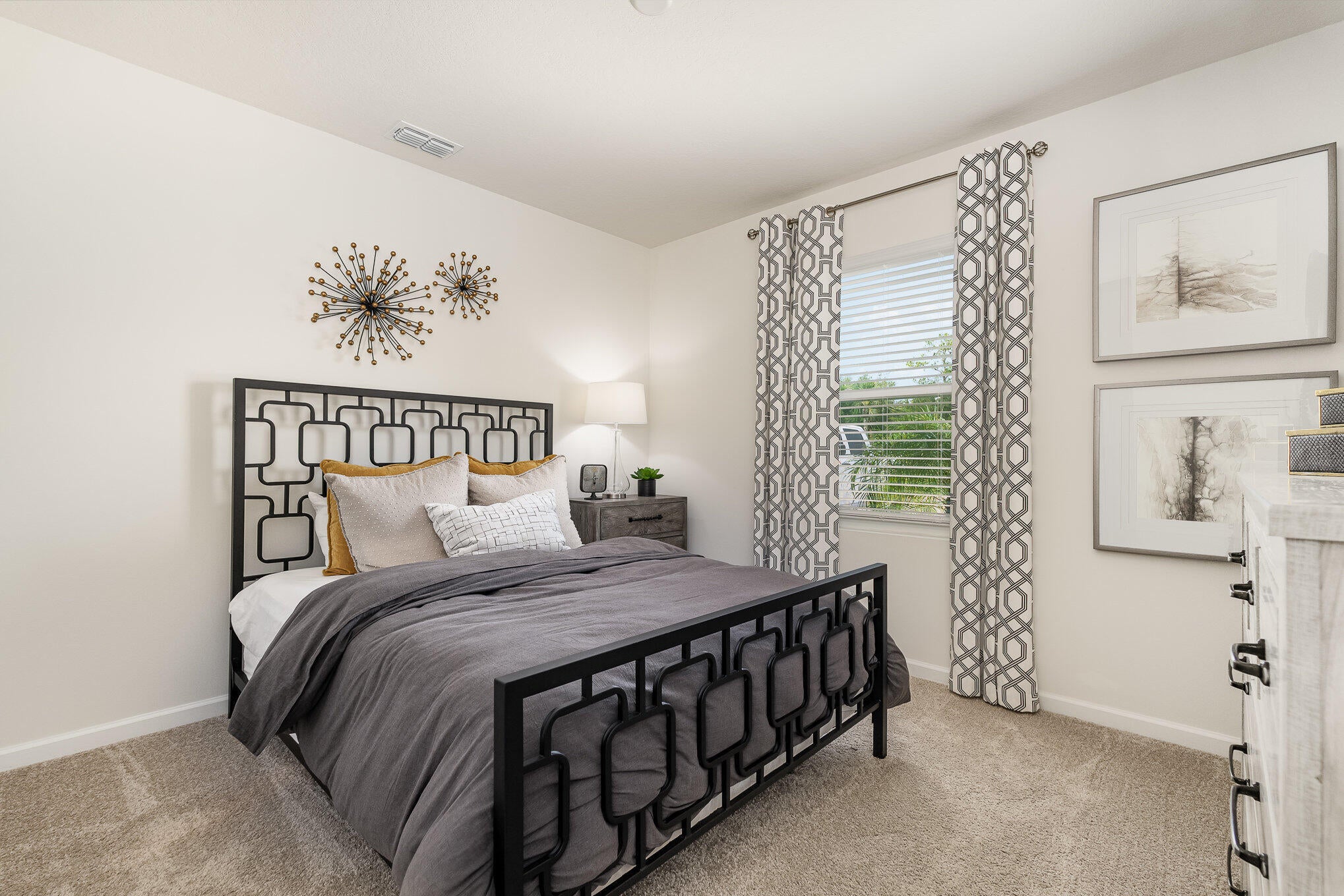 The Cali floorplan at Morningside in Fort Pierce offers 1,828 sq. ft. of elegant living space. This 4-bedroom, 2-bathroom home features gorgeous quartz countertops, oversized tile flooring, and sleek finishes. The open-concept design connects the living, dining, and kitchen areas, ideal for entertaining. The kitchen includes an oversized single-bowl undermount sink, stainless steel appliances, and a large island. The primary suite features an ensuite bath with dual sinks and a walk-in closet. Equipped with smart home technology for convenience.