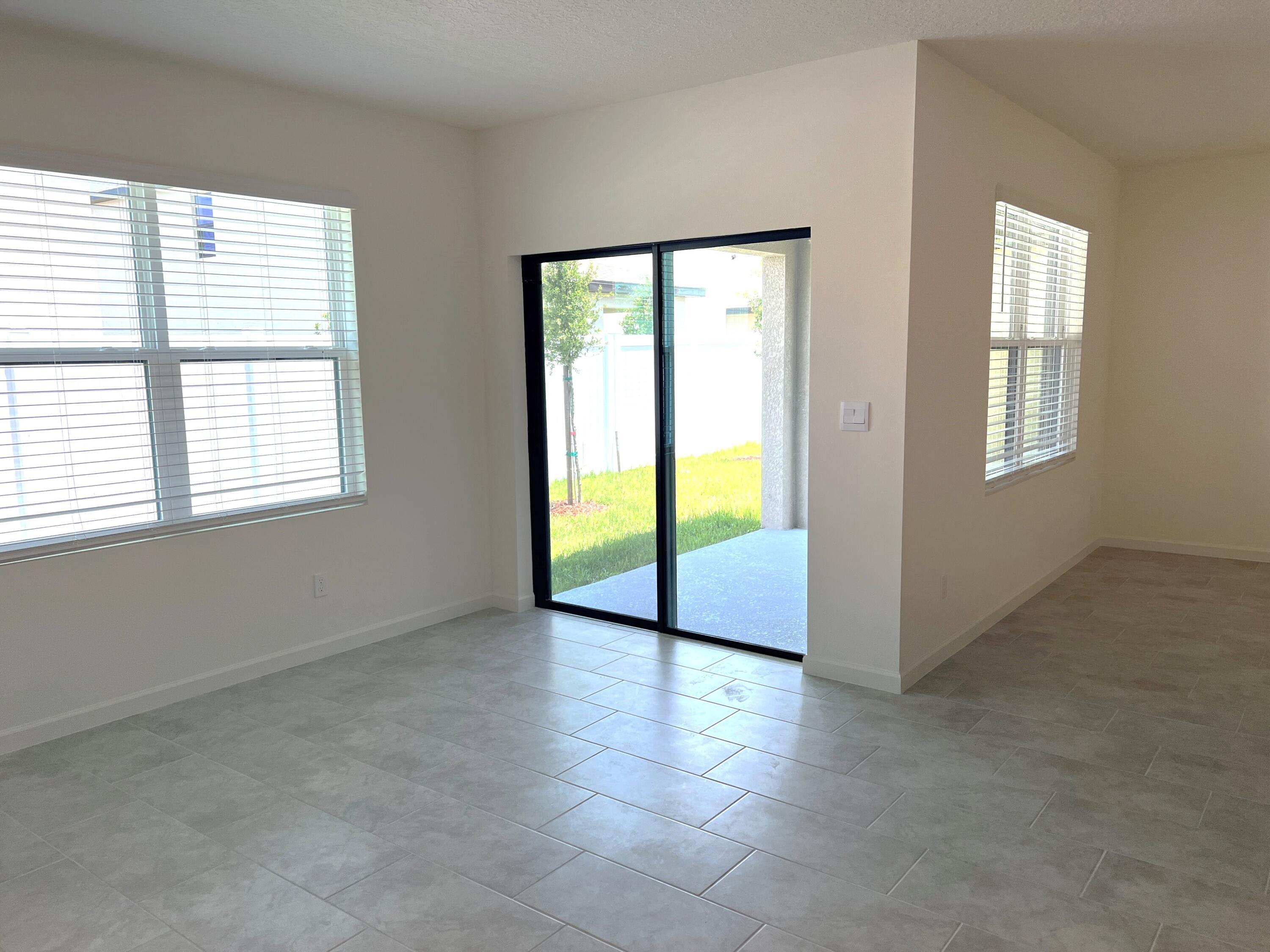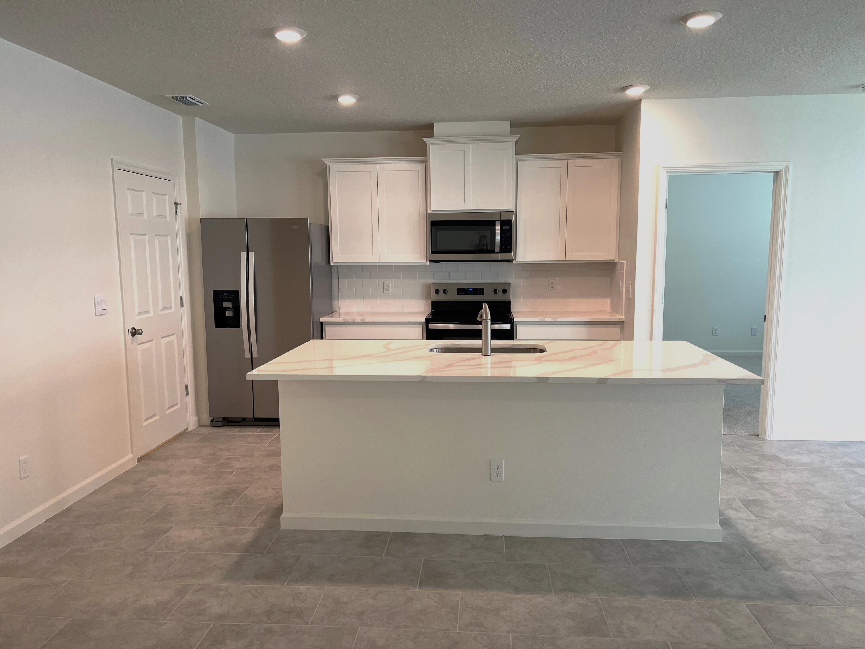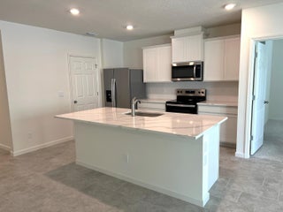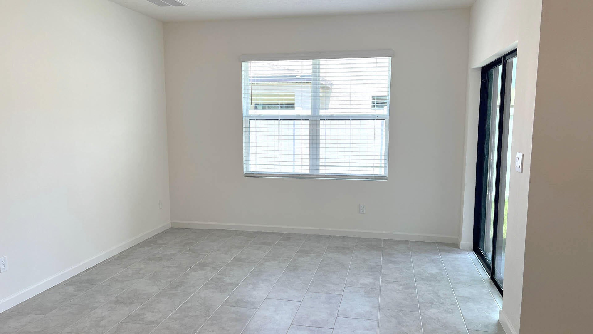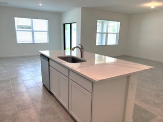 The Aria, a popular one-story floorplan in Morningside, Fort Pierce, offers 3 bedrooms, 2 bathrooms, and 1,672 sq. ft. of living space. The open-concept design features oversized tile flooring in the main areas. The kitchen boasts quartz countertops, an oversized single-bowl undermount sink, stainless steel appliances, and a spacious island. The primary suite includes a double vanity and walk-in closet. Additional features include a laundry room, two-car garage, and smart home technology. The Aria combines modern design and functionality for your perfect home.