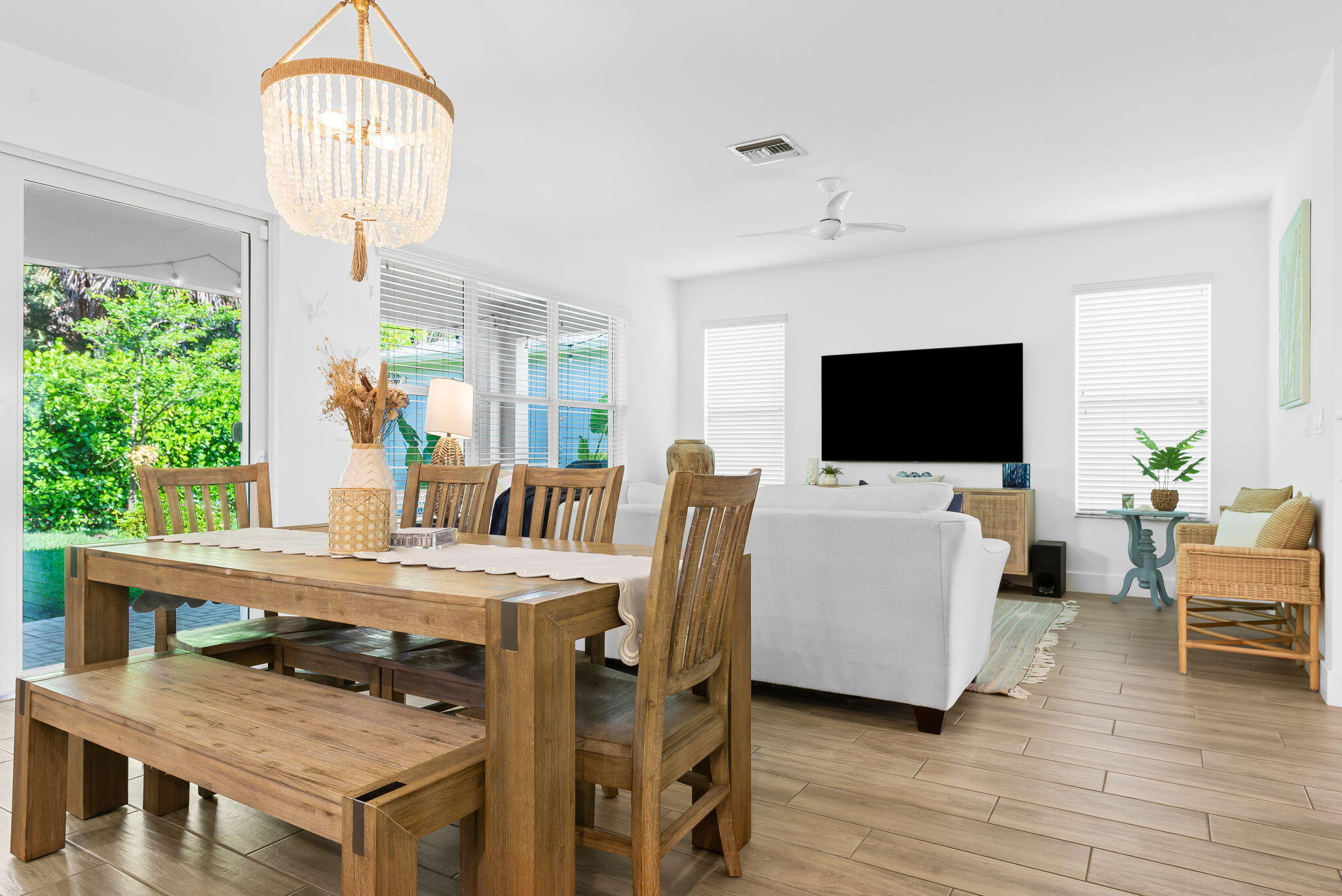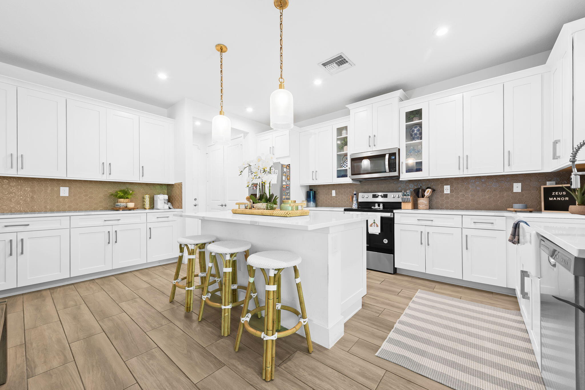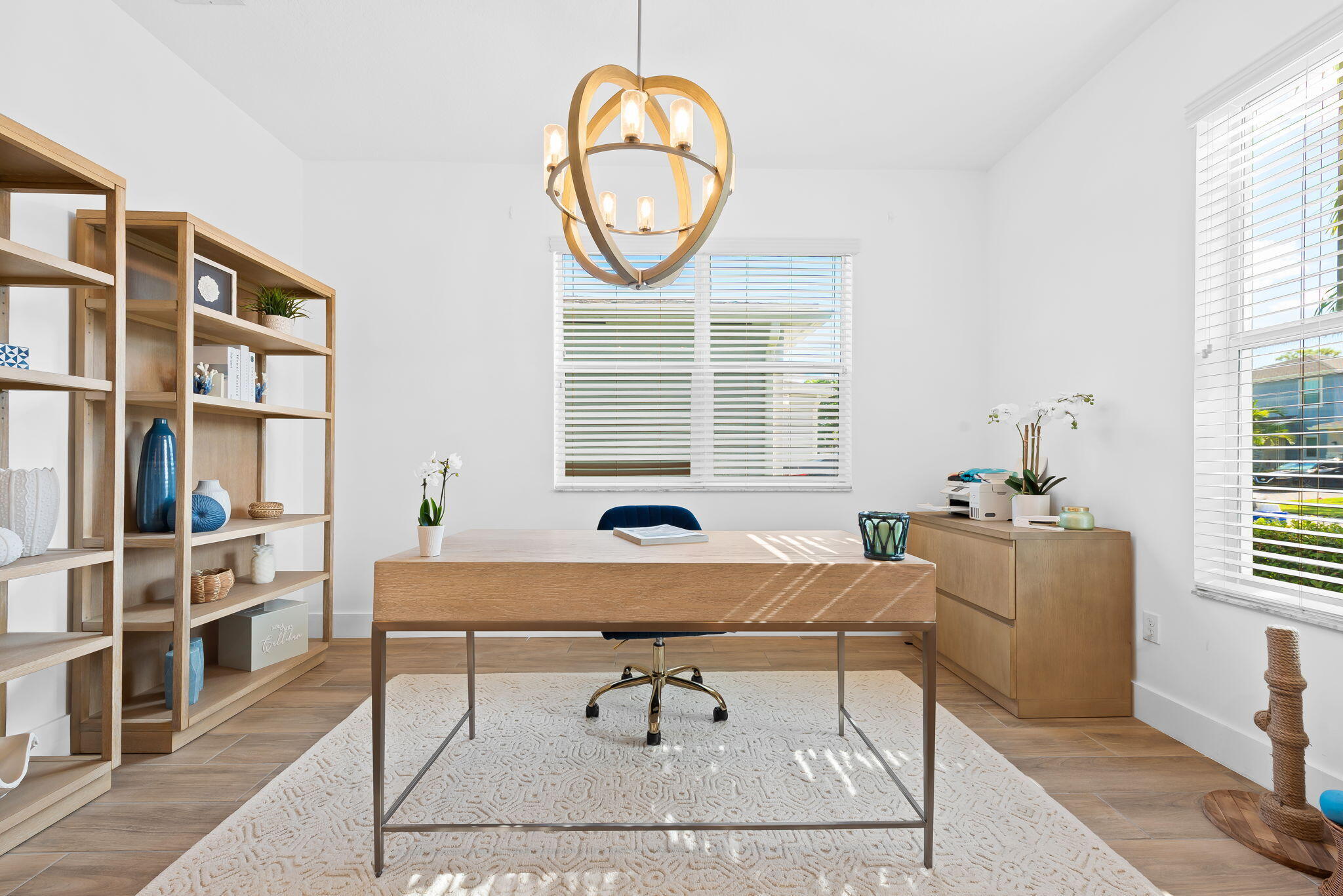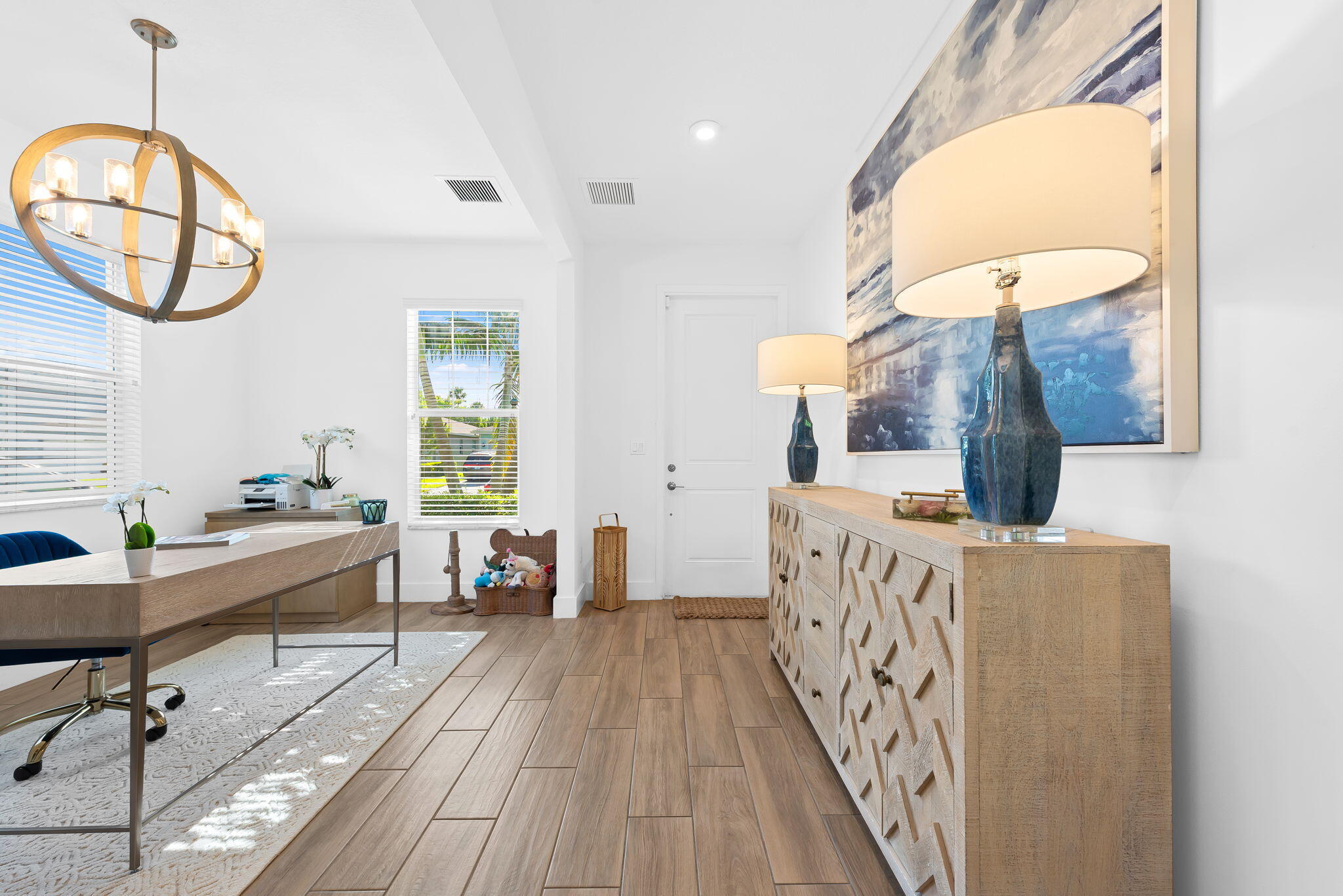Built in 2021, New Everything, Move-In Ready! Located in the gated community of Solcera that features a resort-style pool, playground, and dog park. Inside, the layout begins with a versatile flex room, then opens to a bright living dining area and a gourmet kitchen with abundant cabinetry and counter space. Sliding doors lead to a covered patio and fenced backyard that overlooks a lush landscaping area with oak trees. Upstairs, a spacious landing area with loft/den space connects to 3 bedrooms, including a generous primary suite. Enjoy low gated security, and easy access to I-95, Florida's Turnpike, top parks, Downtown WPB, and the area's best beaches.