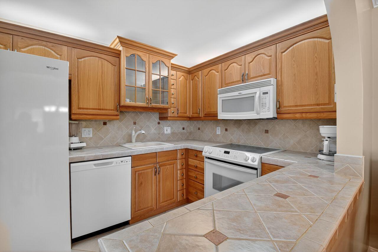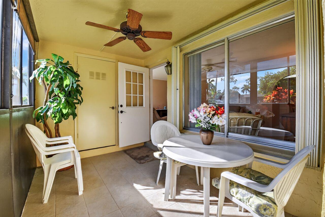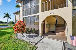 Enjoy effortless living in this first floor 2BR/1.5BA condo with scenic canal views. Features include crown molding, tile flooring, walk 'in closets, and a neutral color palette. The kitchen boasts arched entryways and a newer refrigerator, while the laundry room includes a newer washer/dryer. Stay comfortable year around with a 2020 energy efficient AC and accordion shutters for added storm protection. Community amenities include a lakeside pool, a vibrant social calendar, and a clubhouse equipped with impact windows and a generator for peace of mind in any weather. Partially furnished with a relaxed coastal vibe, this move in ready home offers assigned parking just a short distance from your door and plenty of guest parking.Conveniently located near the Turnpike, I95, beaches, shopping, dining, and Palm Beach International Airport. Schedule your private tour today!