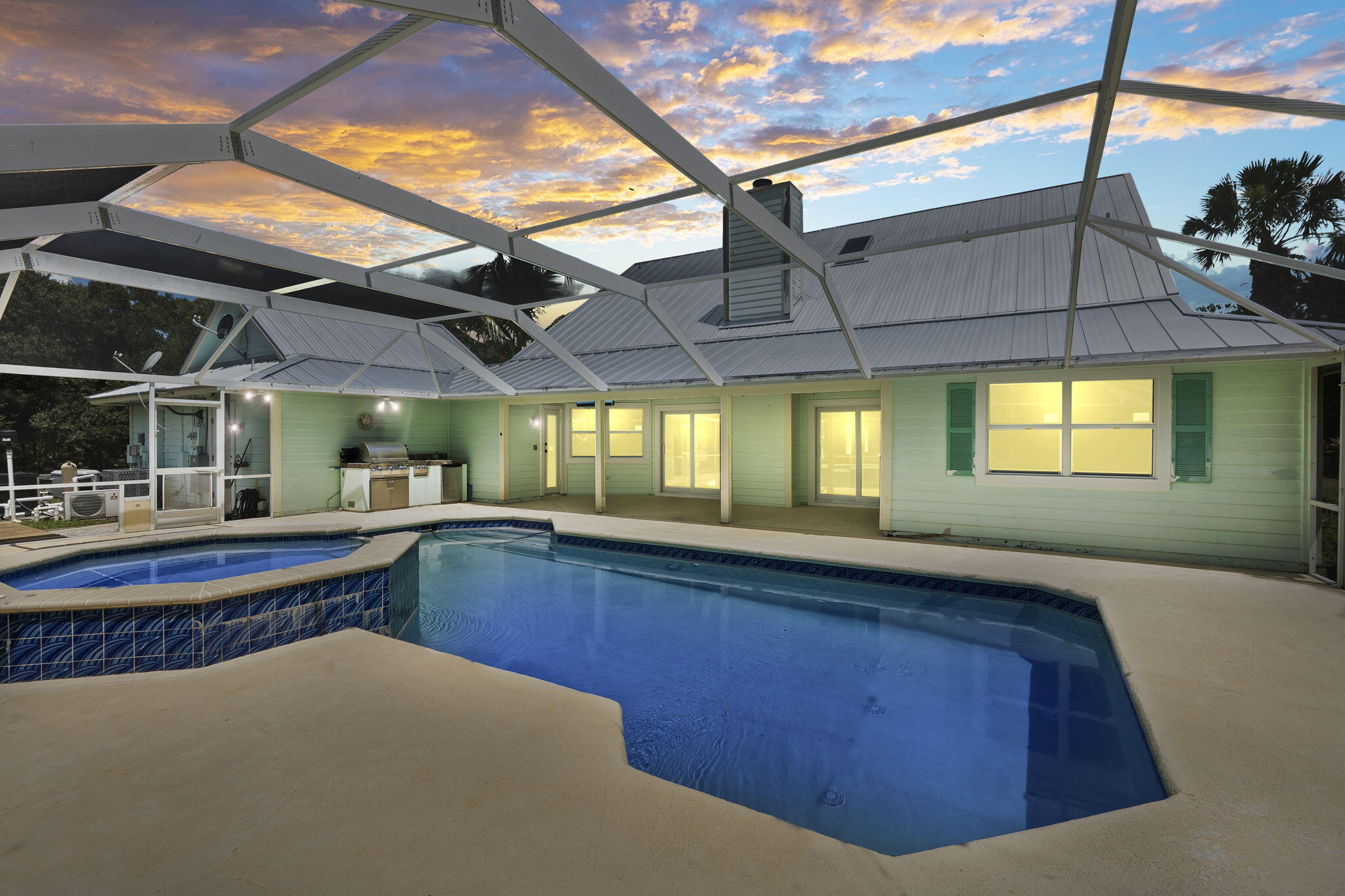 Discover the perfect blend of country charm and modern comfort in this Palm City Farms pool home on 4.6 fully fenced acres. This spacious 4 bedroom, 2.5 bath farmhouse features anew metal roof, impact doors and windows, and two new ac units for year round comfort. The updated master bath offers a fresh spa like retreat, while the inviting kitchen and living spaces are perfect for gatherings. Step outside to enjoy a sparkling enclosed pool and spa, a 4-stall barn ideal for horses and storage, and a scenic pond that adds to the property's serene settings. Plenty of room for livestock, gardening, or just enjoying the peace and privacy of country living.