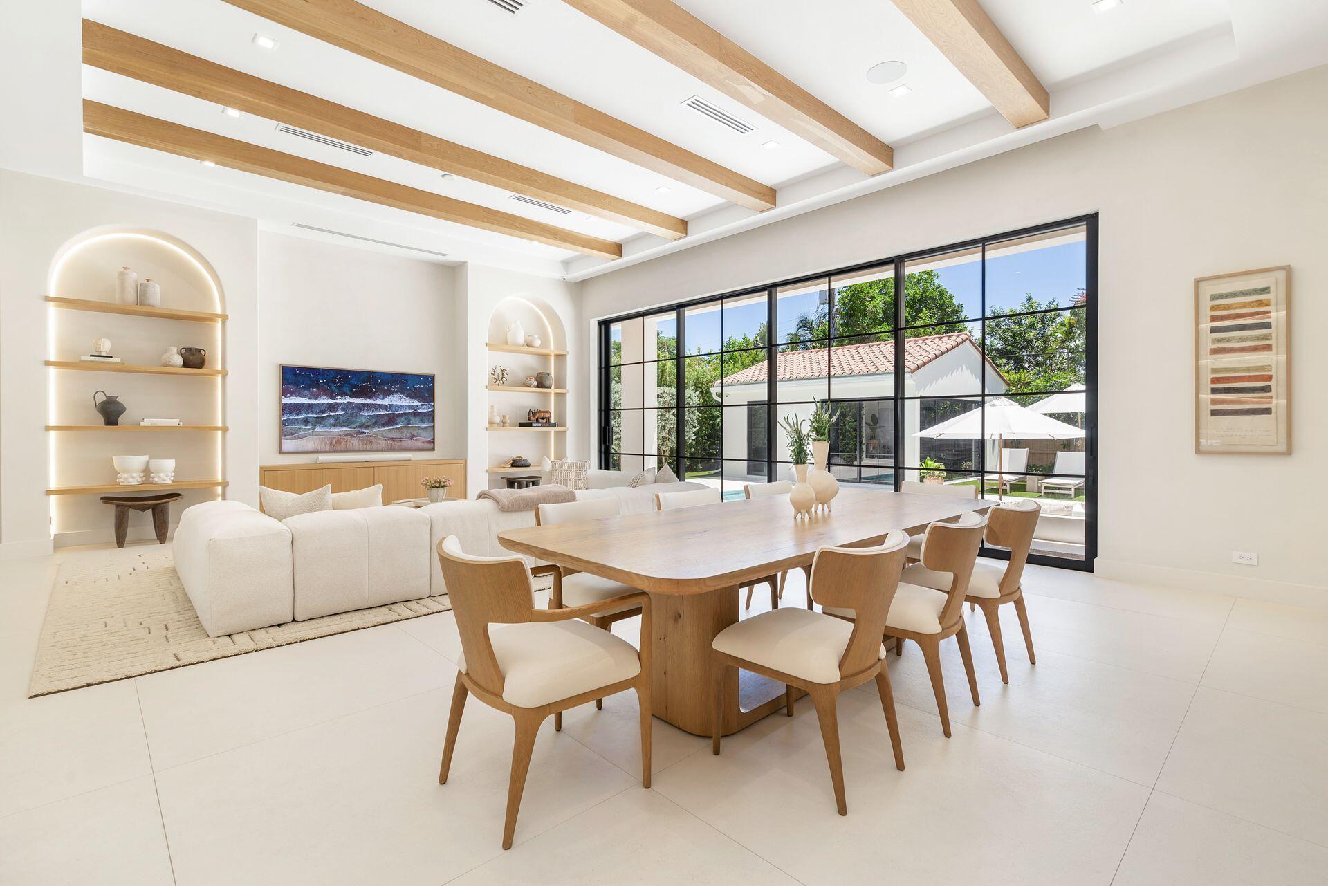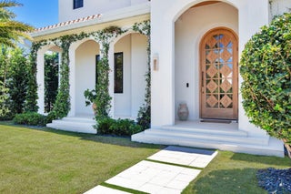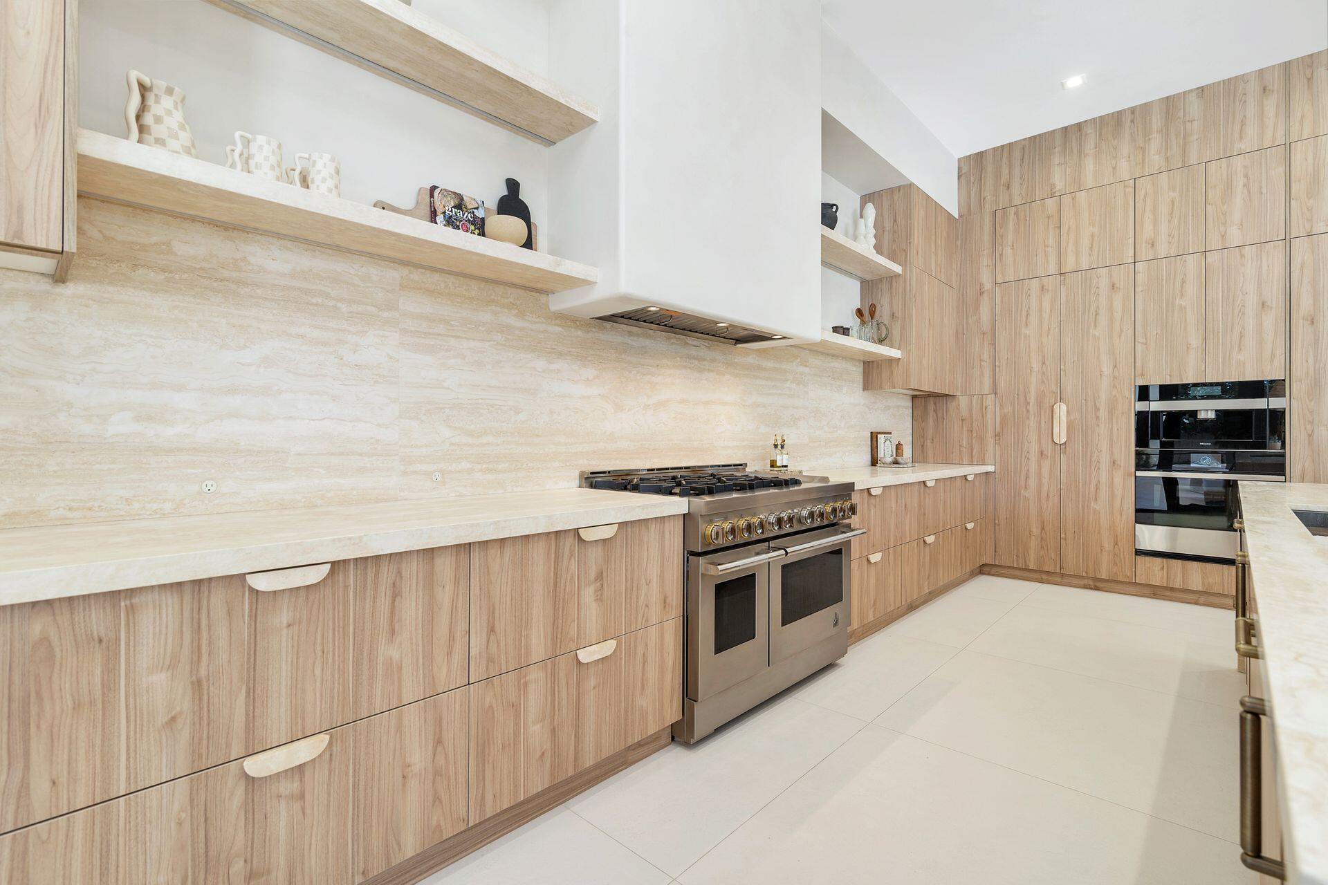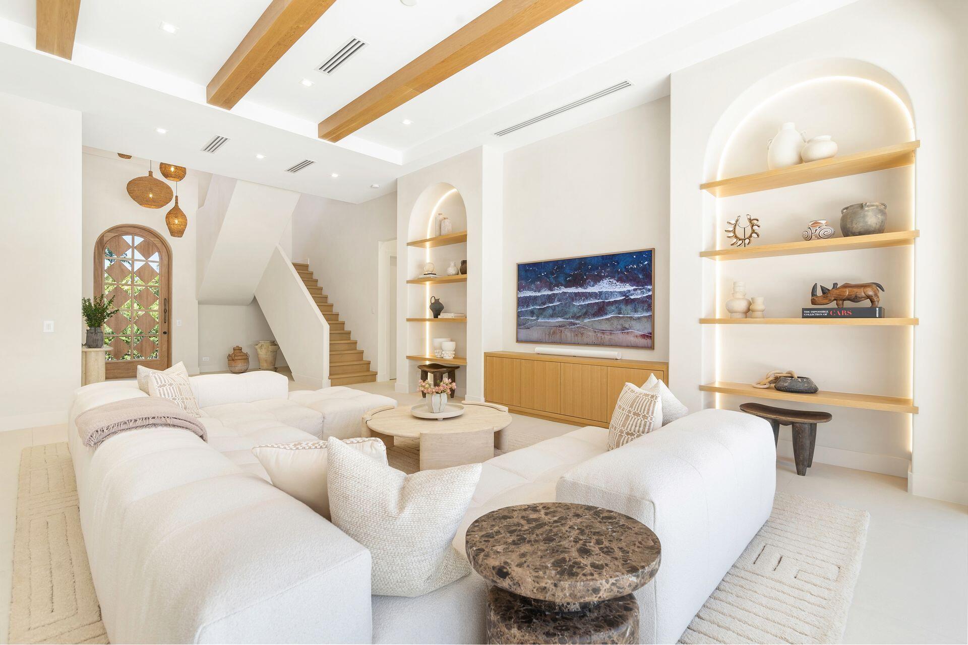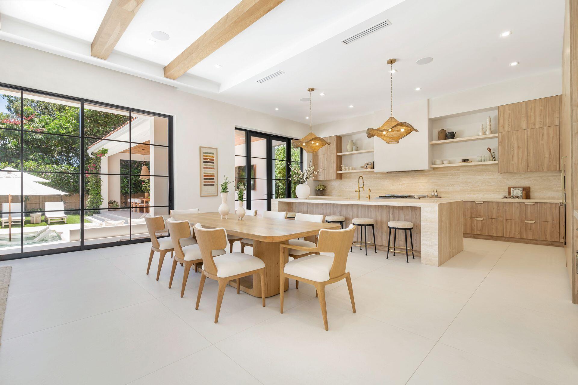 Uber-chic and effortlessly cool, this modern Mediterranean residence combines refined design with a warm, livable feel. Built in 2024 and offered fully furnished, the home features 4 bedrooms, 3 full baths, and 2 powder rooms--completely turnkey and ready to enjoy.With 12' ceilings on the main level and a dramatic wall of 10' sliding glass doors, the interiors are open, airy, and designed for both everyday living and entertaining. The view from the custom front door carries straight through to the south-facing pool, where a Badu swim jet, covered loggia, summer kitchen, and gym/guest cabana create a true private retreat.Every element of the chef's kitchen has been thoughtfully considered, from the travertine countertops and backsplash to the custom pulls - this kitchen is dreamy!Located near the Flagler Drive bike trail, Worth Avenue, fine dining, and much more.