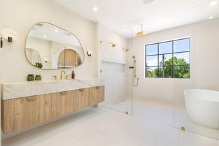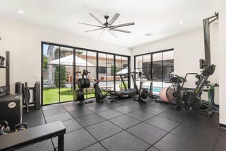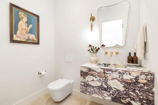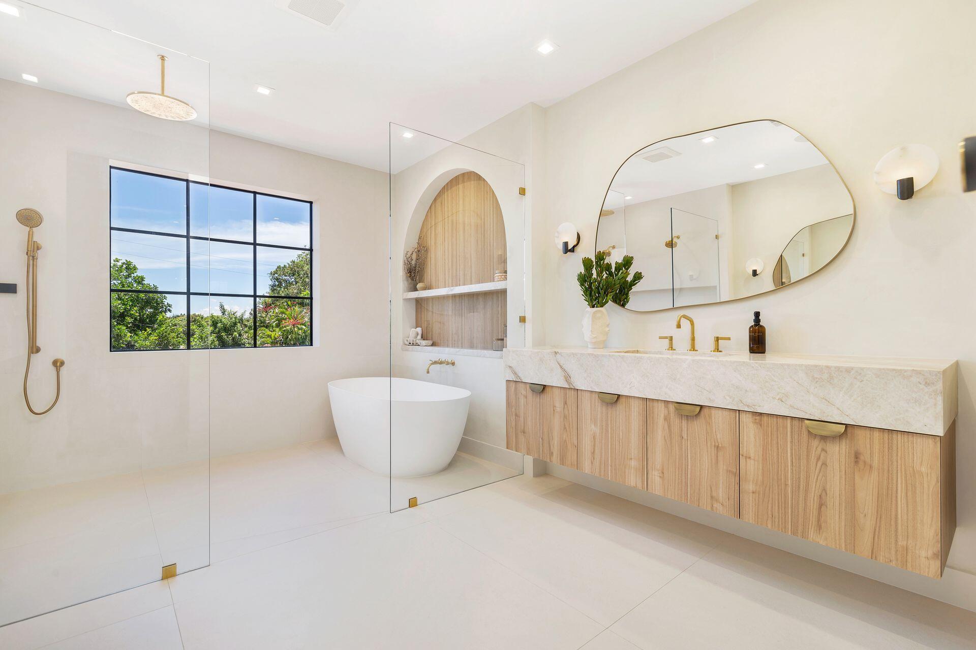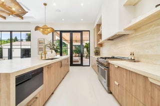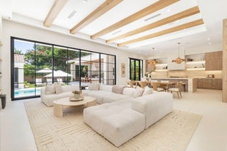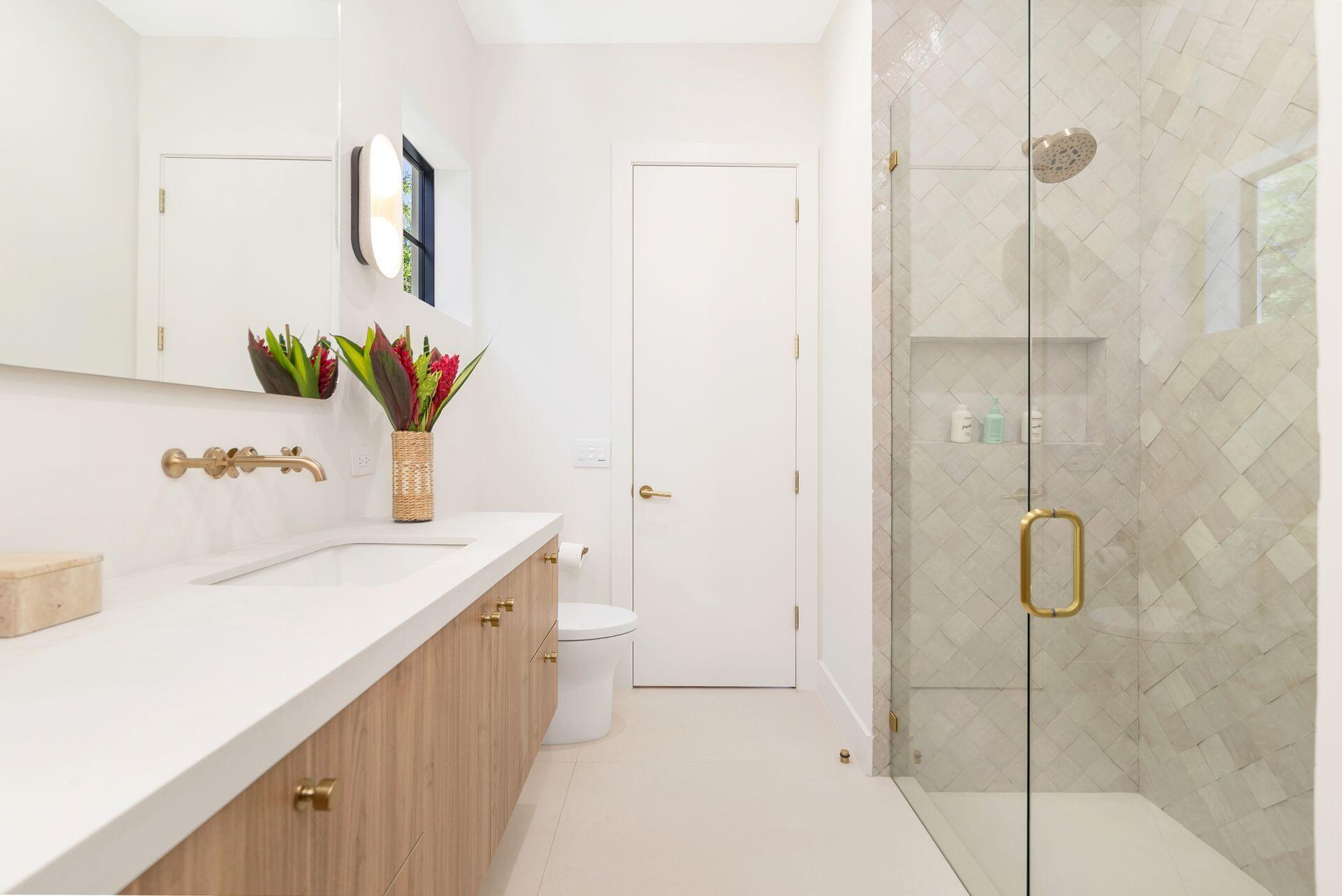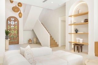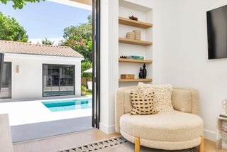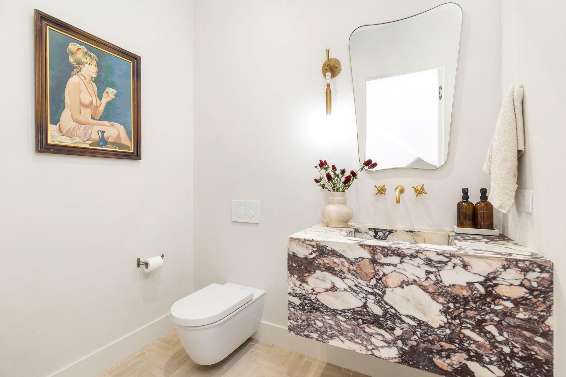 Uber-chic and effortlessly cool, this modern Mediterranean residence combines refined design with a warm, livable feel. Built in 2024 and offered fully furnished, the home features 4 bedrooms, 3 full baths, and 2 powder rooms--completely turnkey and ready to enjoy.With 12' ceilings on the main level and a dramatic wall of 10' sliding glass doors, the interiors are open, airy, and designed for both everyday living and entertaining. The view from the custom front door carries straight through to the south-facing pool, where a Badu swim jet, covered loggia, summer kitchen, and gym/guest cabana create a true private retreat.Every element of the chef's kitchen has been thoughtfully considered, from the travertine countertops and backsplash to the custom pulls - this kitchen is dreamy!Located near the Flagler Drive bike trail, Worth Avenue, fine dining, and much more.