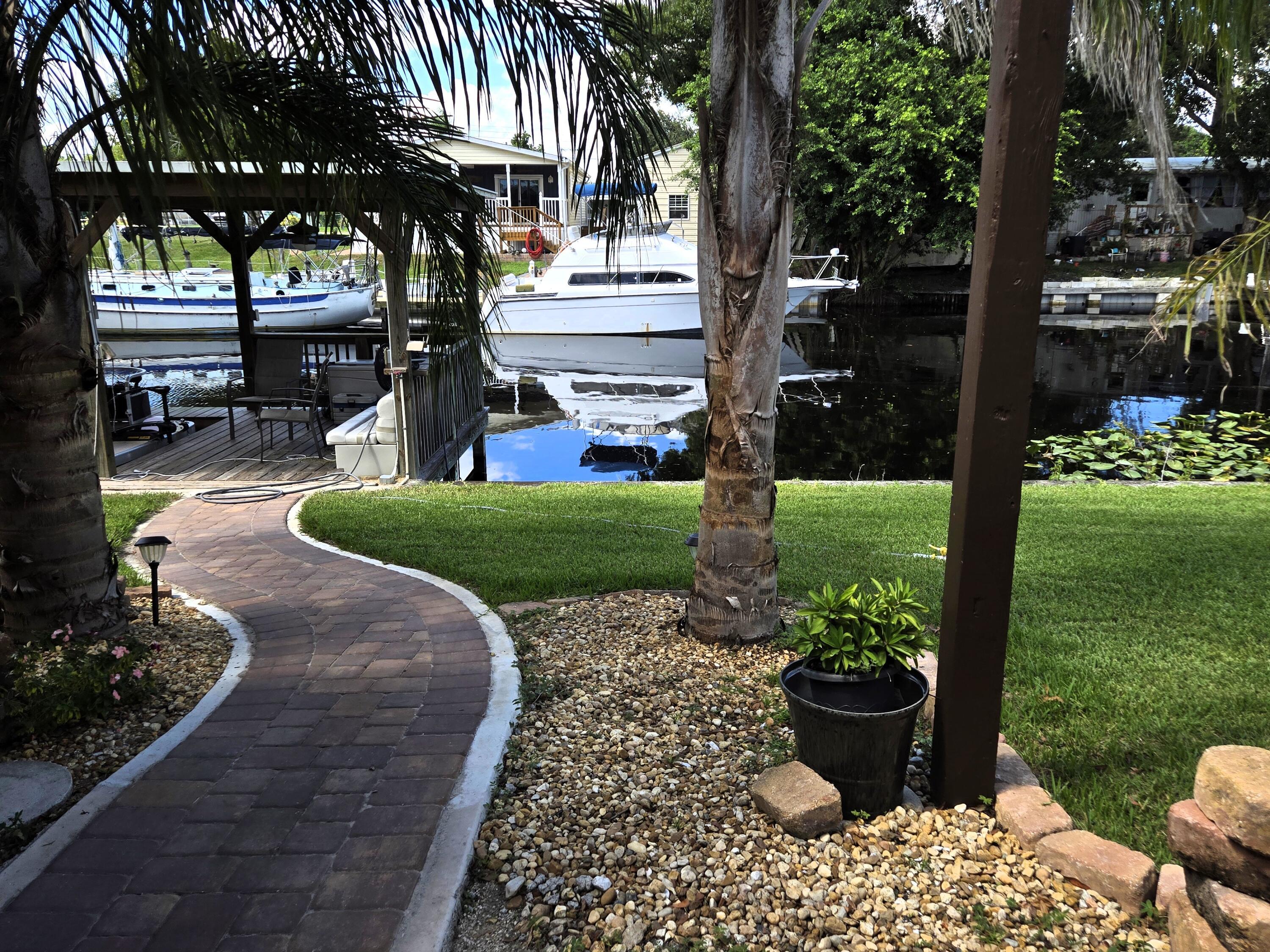 TREASURE ISLAND - DWMH - This 2 bdrm 2 ba home has 1,004 sf under air with 2,276 total living sf. Home has many upgrades less than 5 years old to include kitchen, appliances, cabinets, baths, flooring, paint & light fixtures. AC replaced 5 yrs to include new duct work. New HWH. Enclosed Florida room provides additional living space with windows overlooking canal. Covered porch is perfect location for morning coffee and sunset breezes. New paver sidewalk leads to boat house with power & lift. Seawall. Carport. A 10' x 22' workshop and a 8' x 10' shed provides plenty of storage for all your outdoor tools and toys. Wide canal leads to Taylor Creek. Furniture is less than 2 yrs old and negotiable. This home will not disappoint - don't miss out! Room dimensions are approximate.