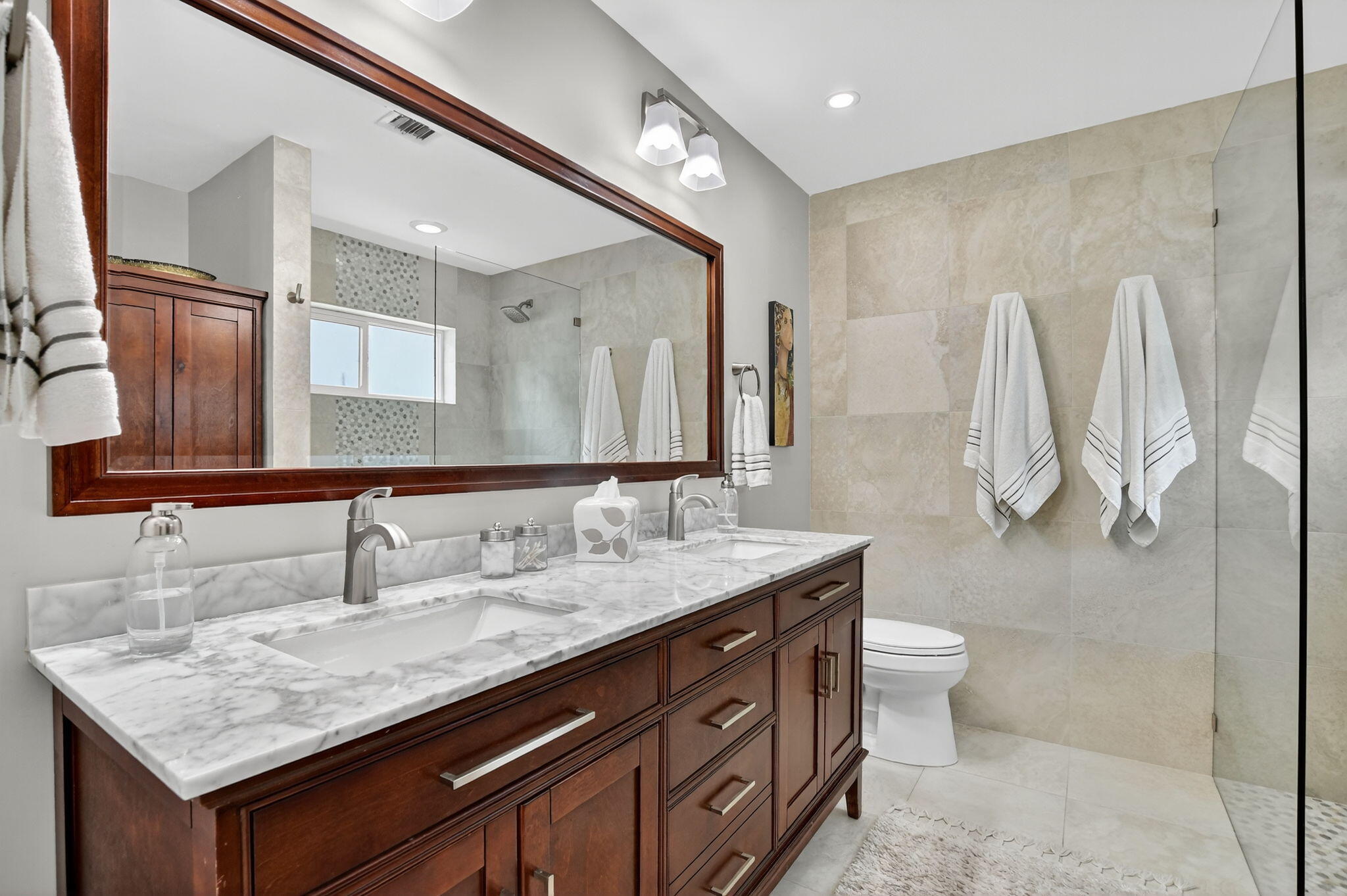 ABSOLUTELY GORGEOUS ESTATE | EAST BOCA'S PRESTIGIOUS HIDDEN VALLEY | BEST A+ RATED SCHOOLS - Step inside to a bright, wood kitchen cabinets, open layout featuring beautifully remodeled bathrooms 2022, stylish new interior doors, impact-rated windows and doors 2019, A/C system 2020, water heater 2021, and a hurricane-rated garage door 2023. Enjoy South Florida living in your private backyard oasis with tranquil canal views, new wrought iron fencing, a resurfaced pool patio, and a new pool pump -- perfect for relaxing or entertaining. The roof has also been professionally cleaned and maintained for added peace of mind. Don't miss out on this opportunity