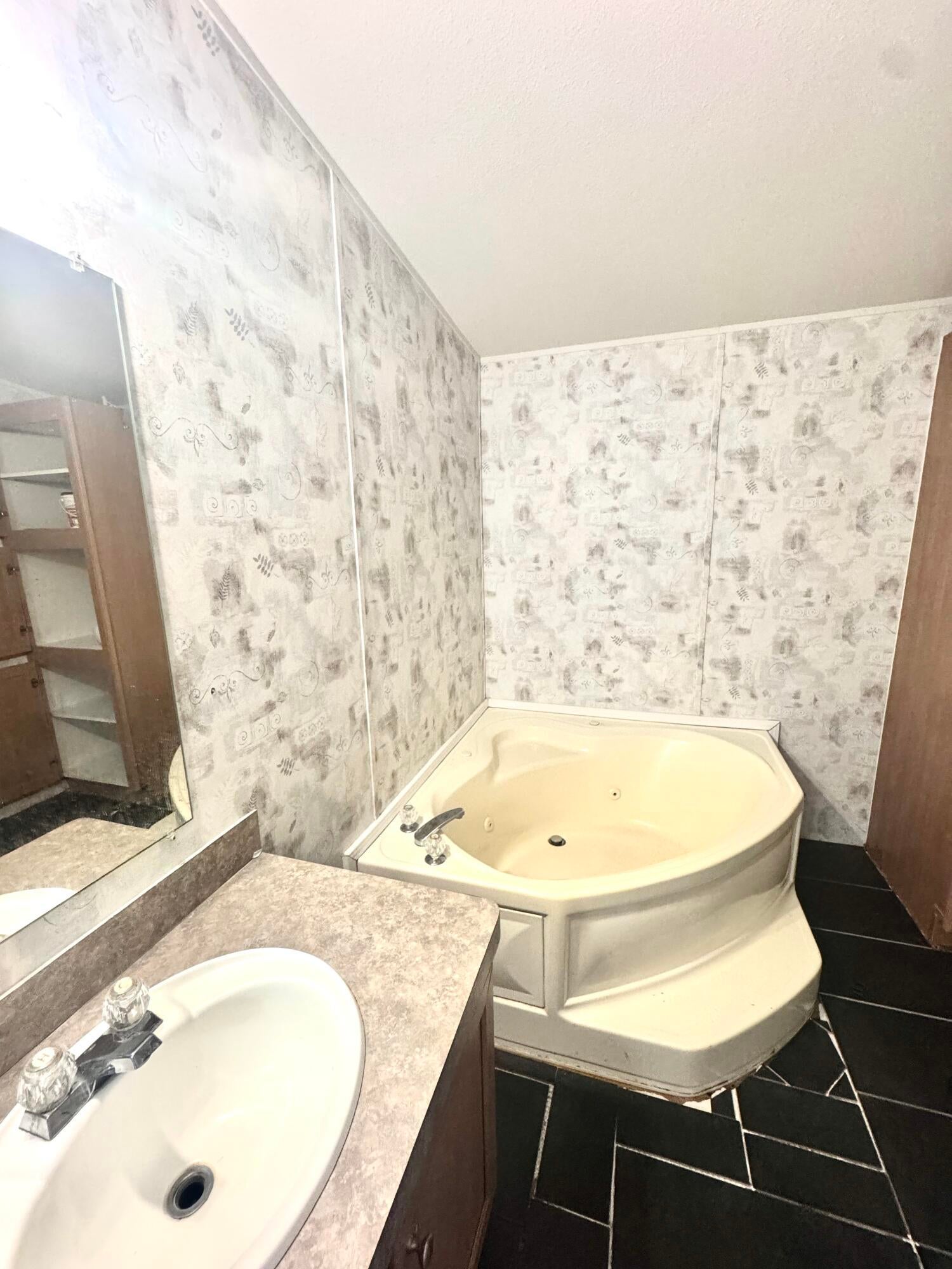 Seller Financing Available! This huge Palm Harbor mobile home on almost a 1/2 corner lot is ready for its new owners. With 4 bedrooms & 2.5 bathrooms, it's big enough for the whole family. It has a living room AND family room in a split floor plan set up. The laundry room has a half bathroom and comes with the washer and dryer. It has a gas stove and gas on-demand water heater. The roof was installed only a couple years ago and the AC has been upgraded to a 4 ton. The master bedroom has an additional sitting room/office/nursery attached and comes with a large soaker tub plus stand up shower. With some minor TLC, this home is perfect for anyone! Partially fenced back yard with 2 sheds.
