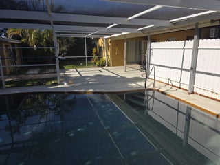No HOA, centrally located, ready to move, metal roof, central ac, terrazzo floors, updated kitchen in 3/2, screened in pool, huge screened in patio area. All measures are approximate.