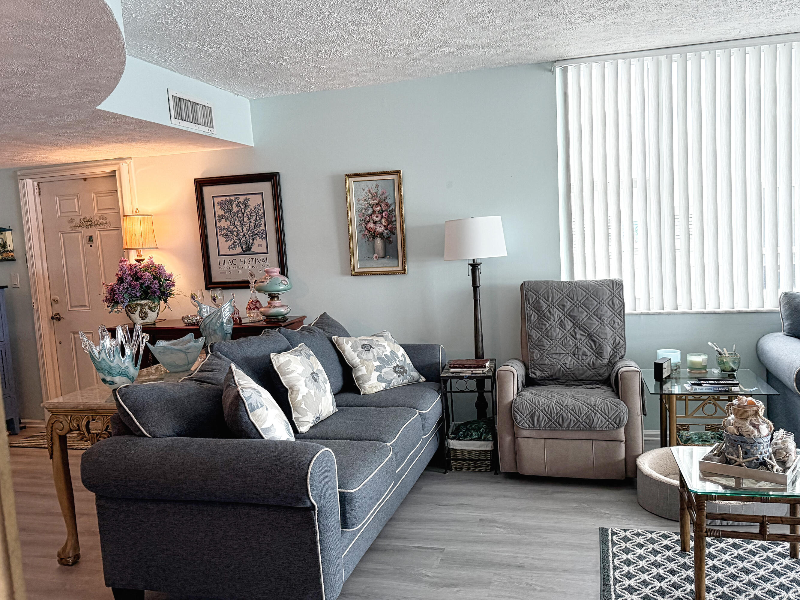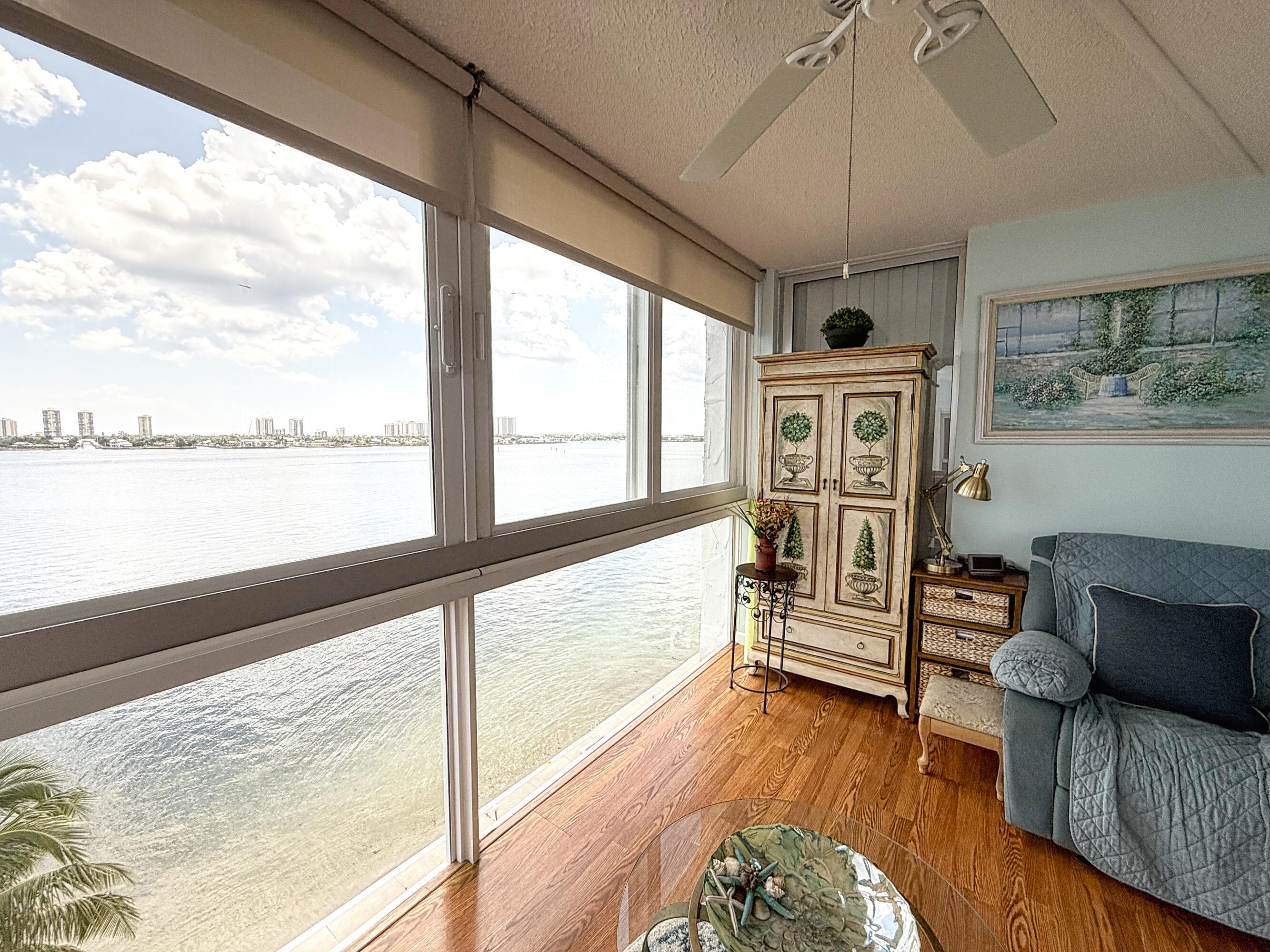 This unit is offered under a lender approved short sale from a reverse mortgage pending appraisal. Amazing opportunity to own a penthouse corner unit with stunning Intracoastal and Singer Island views in a 55+ community. This spacious 2/2 offers plenty of storage, a 2024 Trane AC & water heater, new washer/dryer, microwave, refrigerator, dishwasher, and newer range. New LVP flooring in living area, a bright sunroom under air, and a tranquil master suite with walk-in closet and spacious vanity area. Some furnishings included/see photos. This well-maintained building offers an elevated pool, shuffleboard, and social areas above parking. Covered space is right by the entrance--no walking in the rain! Milestone inspection passed with flying colors and no assessments. Don't miss out!
