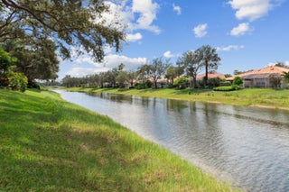 The Charm & Provenance of this One Owner Residence is what separates it from the Rest! That Sense of Warmth & Heritage, rarely found in Newer Homes, is the Essence of this Residence! It's One of the Reasons why this is a Unique Opportunity! This Pristine Oakmont is In the Fantastic 24 Hour Manned Gated Community of Riverwalk! One of the Best Locations in Palm Beach County, 15-20 minutes to Everything including Palm Beach, the Ocean & Airport! The Residence, is Impressive & Commanding, as it's Sited on a Lush, Professionally Landscaped & Maintained, Wide, Parcel, like No Other with Extensive Tropical Gardens & Beds, has a Side Loading 2 Car Garage with a Lush Expansive Motor Court that leads to the Covered Ceramic Tile Entry that opens to the Gracious Foyer (Fixture Excluded) withNewer Stunning Travertine Marble Floor(This Stunning Travertine Marble Floor is in the Great Room & Bedroom Hallway, as well) that Leads to the 26 Foot Great Room with a 12 Foot Ceiling & a Ceiling Fan, that leads to the Open & Airy Entertainment Sized Tile Dining Area with another Ceiling Fan, a Set of Sliding Glass Doors that lead to a Beautifully Landscaped, Private & Secluded Patio with a Stone Path to the Yard, that is Perfect for Outdoor Grilling & there are also 18 Feet of Sliding Glass Doors, (Great Room & Dining Area Combined) Leading to a 22 Ft Covered Lanai with a Ceramic Tile Floor, 2 Ceiling Fans & Panoramic Views of the Azure Blue Lake & the Lush Tropically Landscaped, with Many Picturesque Gardens & Stone Beds, Professionally Designed & Maintained Back Lawn! It's Wide & Spacious with a Gorgeous Sculptural Tree as the Centerpiece; like a "A little Piece of Heaven"! (The Potted Plants both Front & Rear are Excluded from the Sale) There is a Den/Office with a Faux Wood Floor, Two Clerestory Windows & a Ceiling Fan, that's Perfect for Today's, Stay at Home, Telecommuting Workforce! It opens to the Foyer as well as to the Tile Kitchen, The Hub for Casual Entertaining & Everyday Living! With Newer Appliances including a Double Door Refrigerator, Range, Microwave & Dishwasher! The Secluded & Private Master Suite with a Faux Wood Floor has A Ceiling Fan, Sliding Glass Doors that lead to a Patio, a Dressing Area with 4 Closets including One Walk-in, with Shelving & Hanging Space, 2 Double Width Closets, all with the same Style Built-in Shelves & a Linen Closet, Plus the Ultimate Luxury, 2 Baths, One with a Sumptuous Soaking Tub, an Extra Long Vanity & a Separate Make-up Counter with a Mirror & the other with another Vanity & Sink & a Gorgeous Extra Large Stall Shower! The Bedroom Wing consists of 2 Large Bedrooms, one with a Faux Wood Floor & the other is Carpeted, Ceiling Fans, a Full Bath with a Vanity & a Built-in Ceramic Tile Tub & Shower & a Utility Room/Butler's Pantry, with Lots of Extra Cabinets, a Maytag Washer & Dryer, that leads to the 2 Garage! There are Accordion Hurricane Shutters, a Newer Rheem HVAC (2017) & a Rheem Hot Water Tank! (2018) There's a Security System & Central Vacuum System Throughout, a Central Vacuum System too! The 600 Acre Community is Incomparable having 200 Acres of Lakes, 12 miles of Pedestrian Walkways with Cobblestone Bridges, Park Benches & Street lamps! There is a Roving Security Patrol, an Exclusive 24 Cable Channel to find out what is going on & there is a lot! The Town Center, the Heart & Soul of the Community has All The Amenities including 3 Heated Swimming Pools (1 Lap Pool, 1 Adult & 1 Resort), 6 Har-Tru Lighted Tennis Courts, 4 Lighted Pickleball Courts with an onsite USPTA Pro on Staff & a Pro Shop, a Fitness Center, a Bocce Court, a Tot Lot, a Post Office, Plus the Acclaimed "Centanni Cafe", a Genuine Italian Restaurant in the Town Center, run by a Chef with over 23 years Experience in Italian Cuisine with Outdoor & Indoor Dining overlooking 3 Lakes for your Dining Pleasure serving Lunch, Dinner & there will be Special Parties on Holidays too! There are also Takeout & Catering Services! These Service & Amenities are included in the HOA! Plus, the grounds of the property, front & back are taken care by the HOA Fee plus so is the Newly Upgraded X-finity Platform Comcast Cable & Internet Service! It is like Living in a 5 Star Resort, 365 days a year! Sit Back, Relax & Enjoy Living in the Ultimate Florida Lifestyle Community! You will never want to Leave! This Inviting Oakmont, on a Wide Professionally Landscaped Parcel that is like A Lush, Green, Lakeside Paradise of Gardens & Stone Walkways, with a Side Loading Garage, is Available to Just One Lucky Buyer, to call it Home!