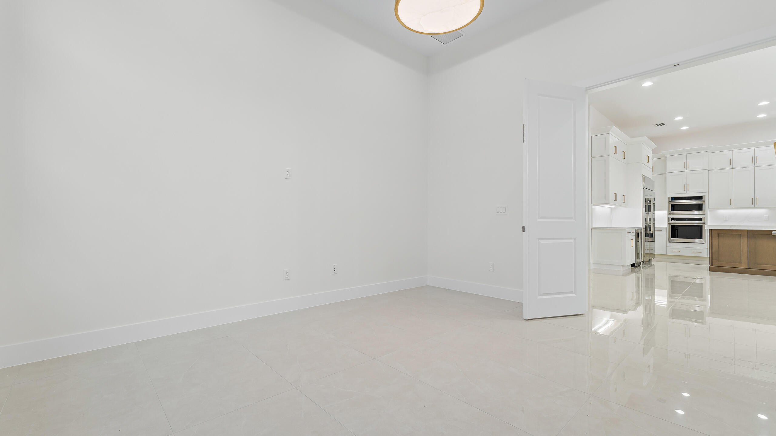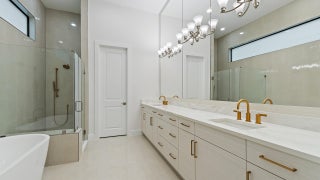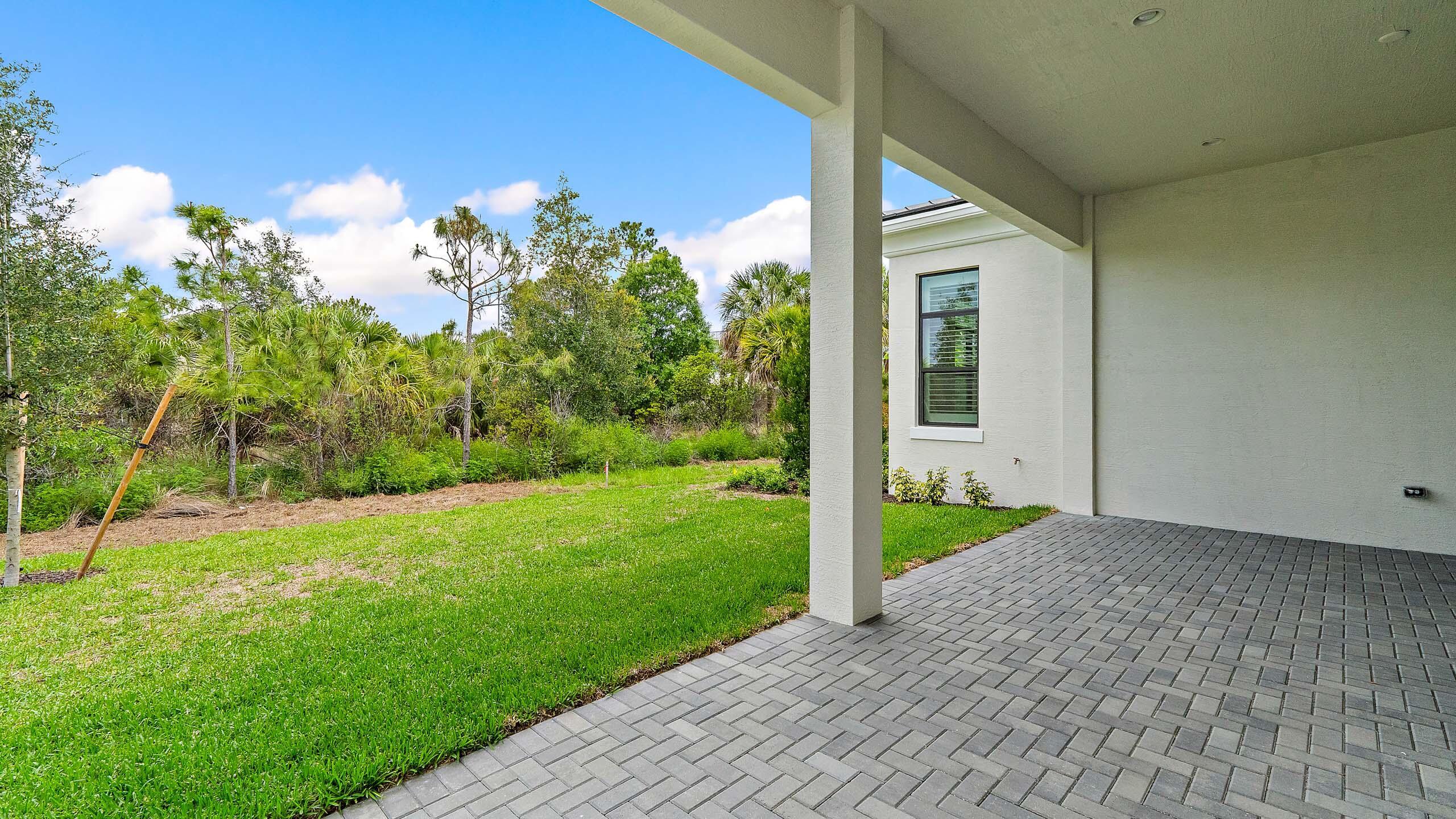 **NEW CONSTRUCTION** Move-in ready new construction by Kolter Homes featuring the Michelangelo floorplan on a preserve homesite in the gated community of Artistry Palm Beach Florida. This single-story home offers three bedroom suites, three full bathrooms, one half bath, and a split three-car garage. Interior upgrades include custom lighting, decorative wood beams in the foyer, tray ceilings, insulated impact glass, and spray foam insulation. The kitchen is equipped with gas cooking, a 48'' Monogram refrigerator, wine reserve, quartz backsplash, 3'' quartz island, second-tier upper cabinets, crown moulding, and a cabinet panel package. The owner's suite features a freestanding soaking tub and an expanded walk-in closet.Additional enhancements include a den with optional double doors, a tub-to-shower conversion in the secondary bath, and a gas stub for a future pool heater. Artistry Palm Beach offers 24/7 manned gated entry, resort-style amenities, and a prime location just one mile from Alton Town Center and minutes from beaches and The Gardens Mall. No homes are located behind the property, and a nature trail is nearby.
