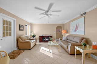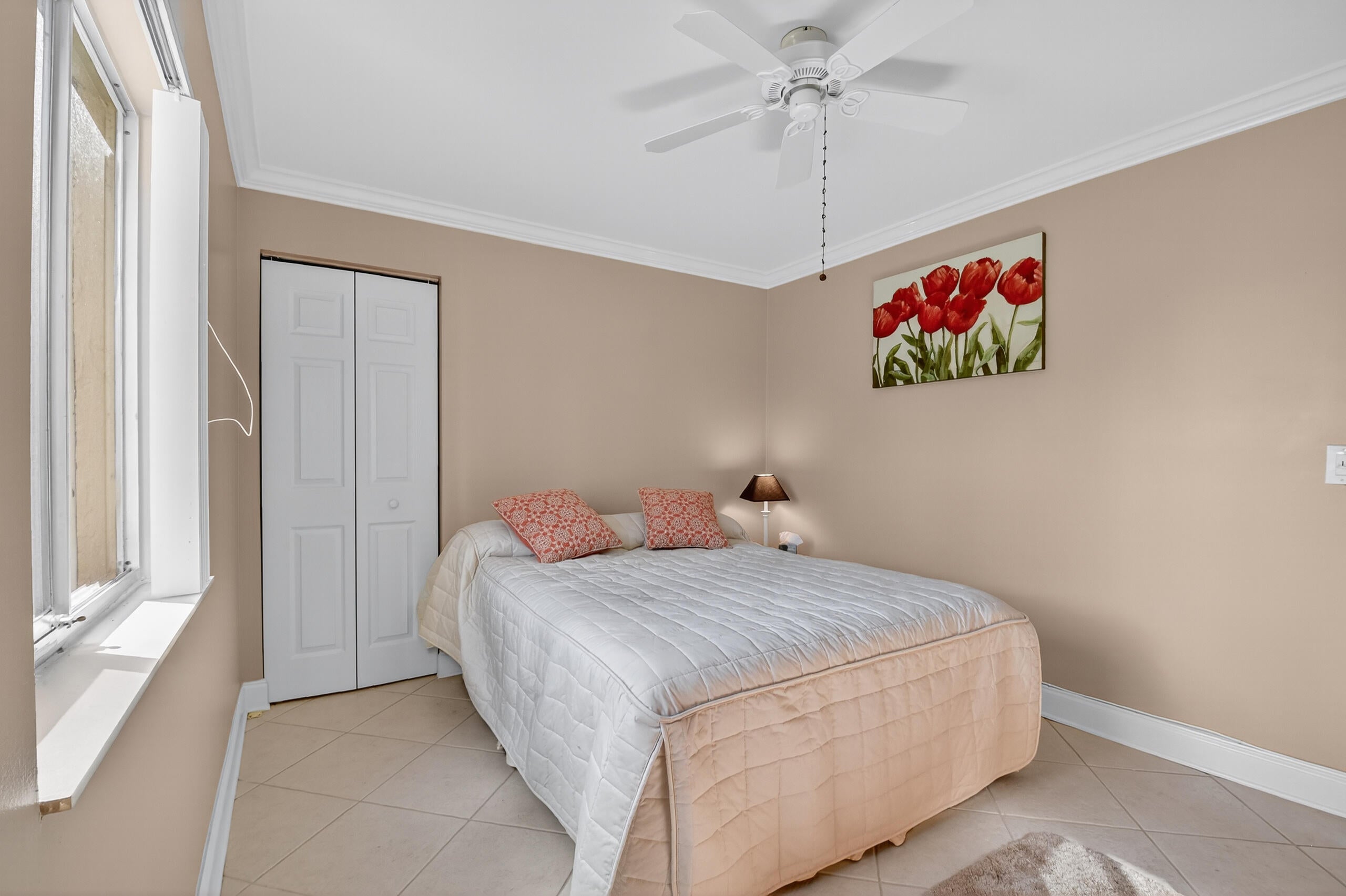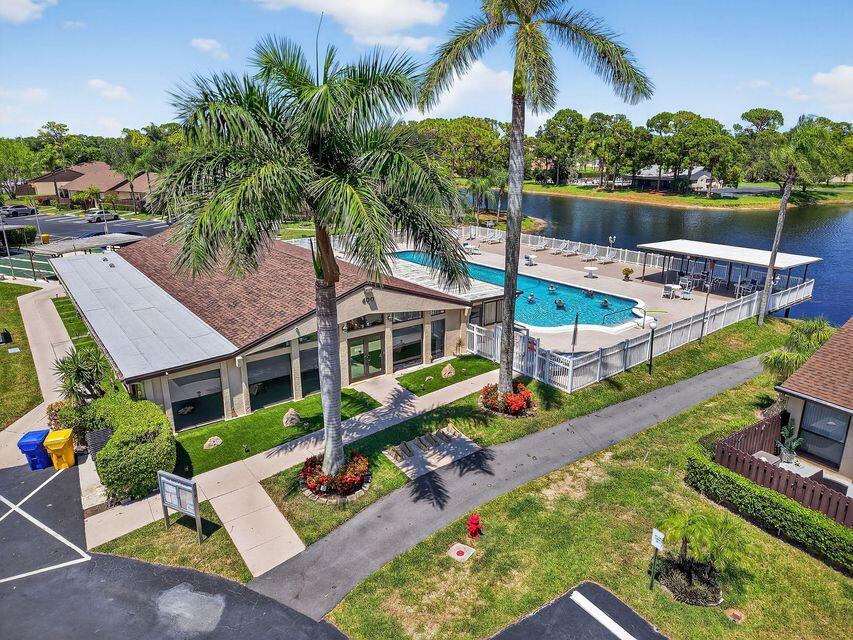 Enjoy effortless living in this first floor 2BR/1.5BA condo with scenic canal views. Features include crown molding, tile flooring, walk 'in closets, and a neutral color palette. The kitchen boasts arched entryways and a newer refrigerator, while the laundry room includes a newer washer/dryer. Stay comfortable year around with a 2020 energy efficient AC and accordion shutters for added storm protection. Community amenities include a lakeside pool, a vibrant social calendar, and a clubhouse equipped with impact windows and a generator for peace of mind in any weather. Partially furnished with a relaxed coastal vibe, this move in ready home offers assigned parking just a short distance from your door and plenty of guest parking.Conveniently located near the Turnpike, I95, beaches,shopping, dining, and Palm Beach International Airport. Schedule your private tour today!