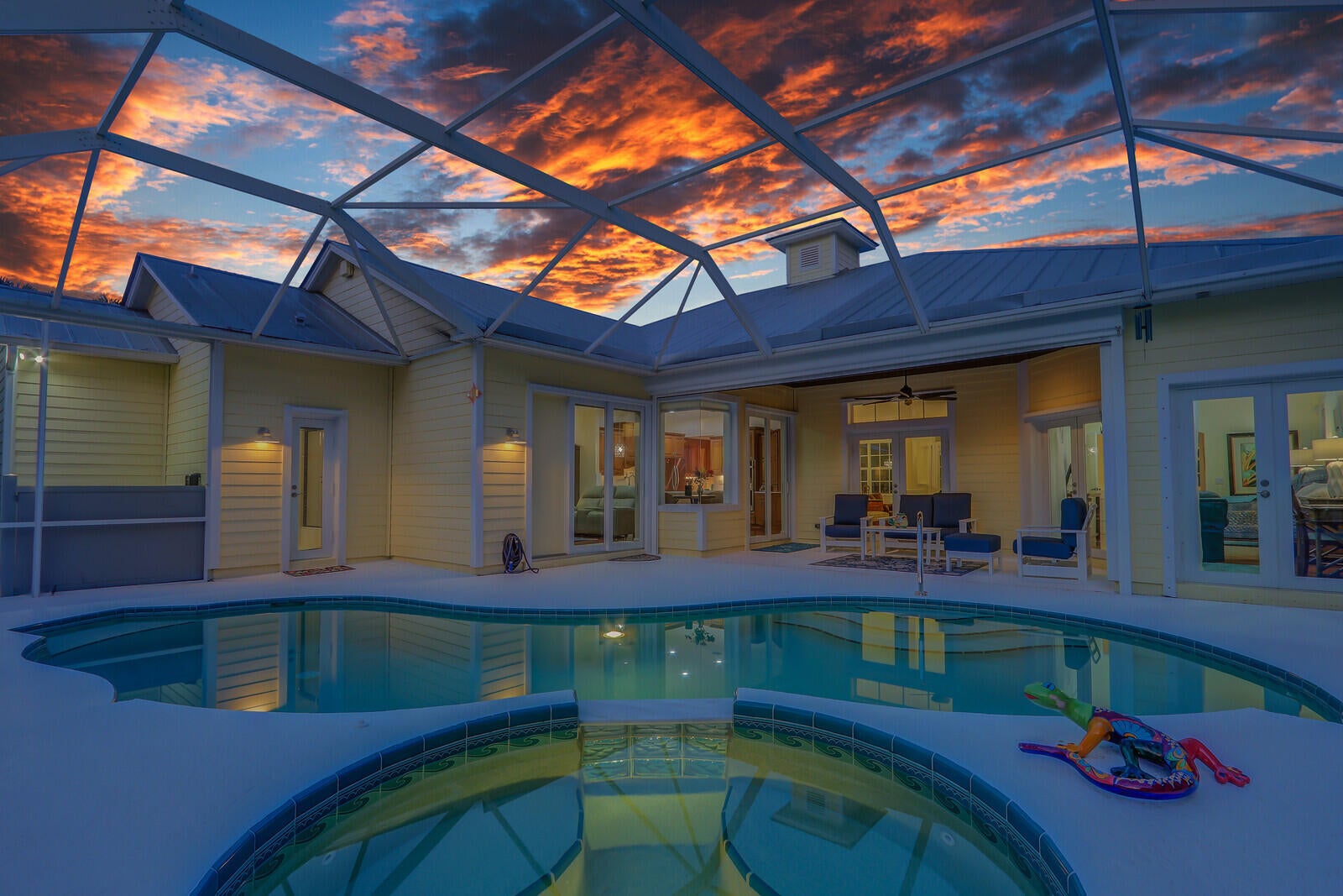 This home has it all. This CBS home offers 4 bedrooms, 3 baths, a 2 1/2 car garage, a screened in pool, a whole-house propane generator, plus a detached garage & workshop for all your projects. Custom built with HardiPlank siding, a metal roof, and hurricane-rated windows, it blends Key West charm with peace of mind living. Owners have added a ton of updates, including new countertops and appliances, custom landscape lighting, garage epoxy flooring, a Tesla charger, custom closet systems, LED high-hats, a retractable hurricane-rated screen on the lanai, and a video security system.Situated on a private half-acre lot that backs to a wooded preserve, giving you privacy and great sunset views from your patio and pool. Located in highly desired community. A+ schools. Don't miss out!