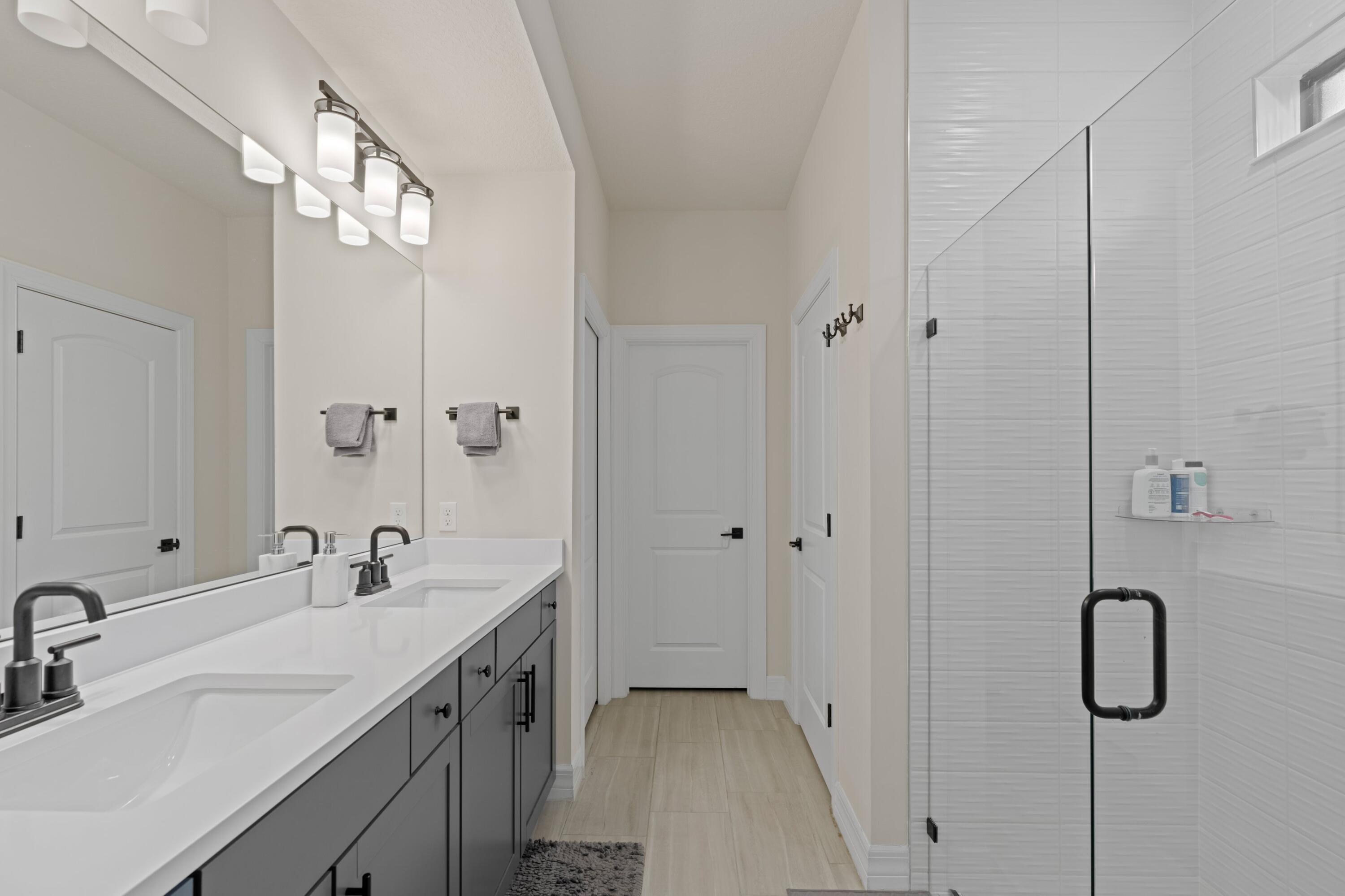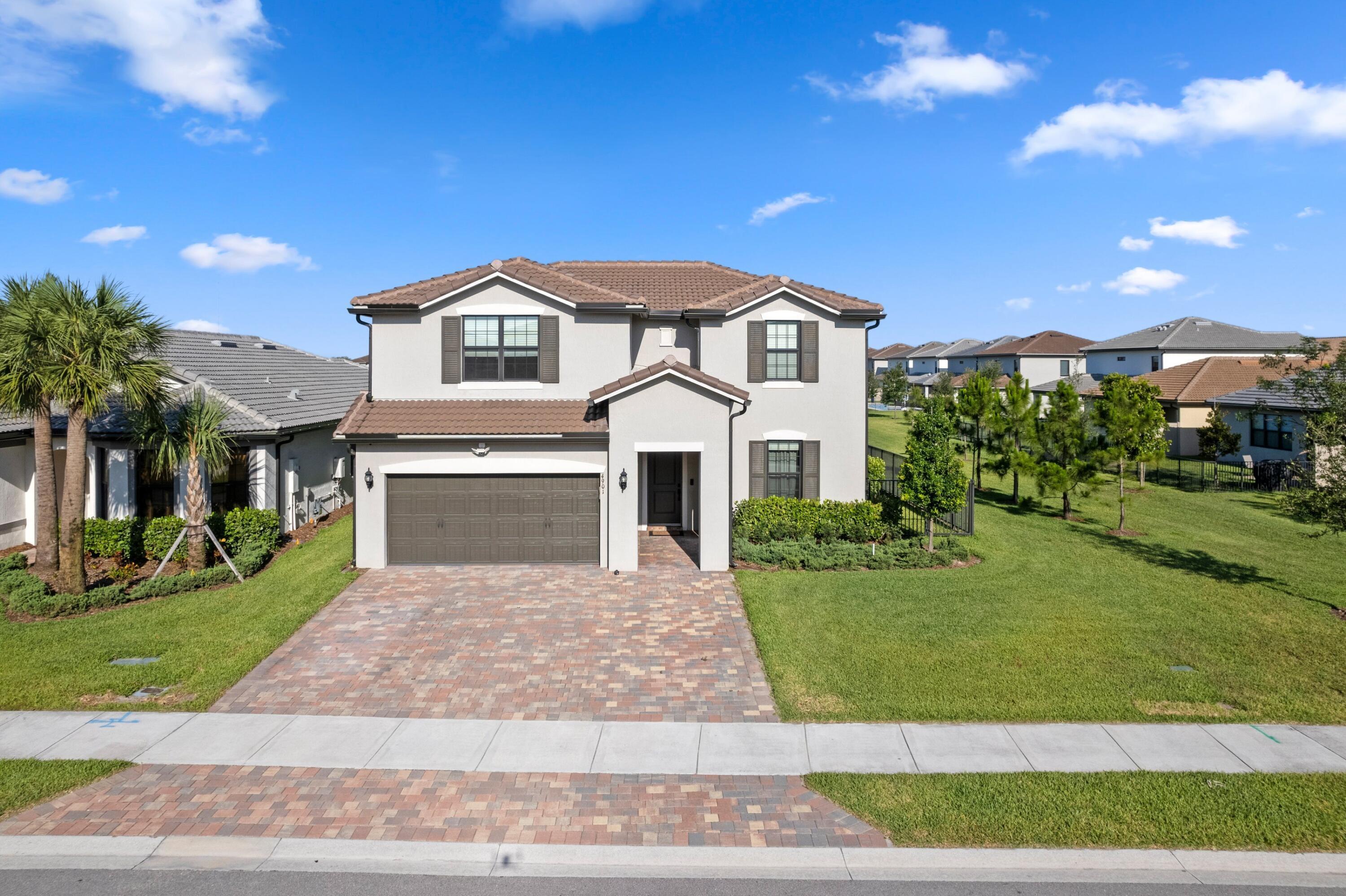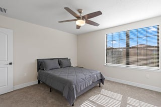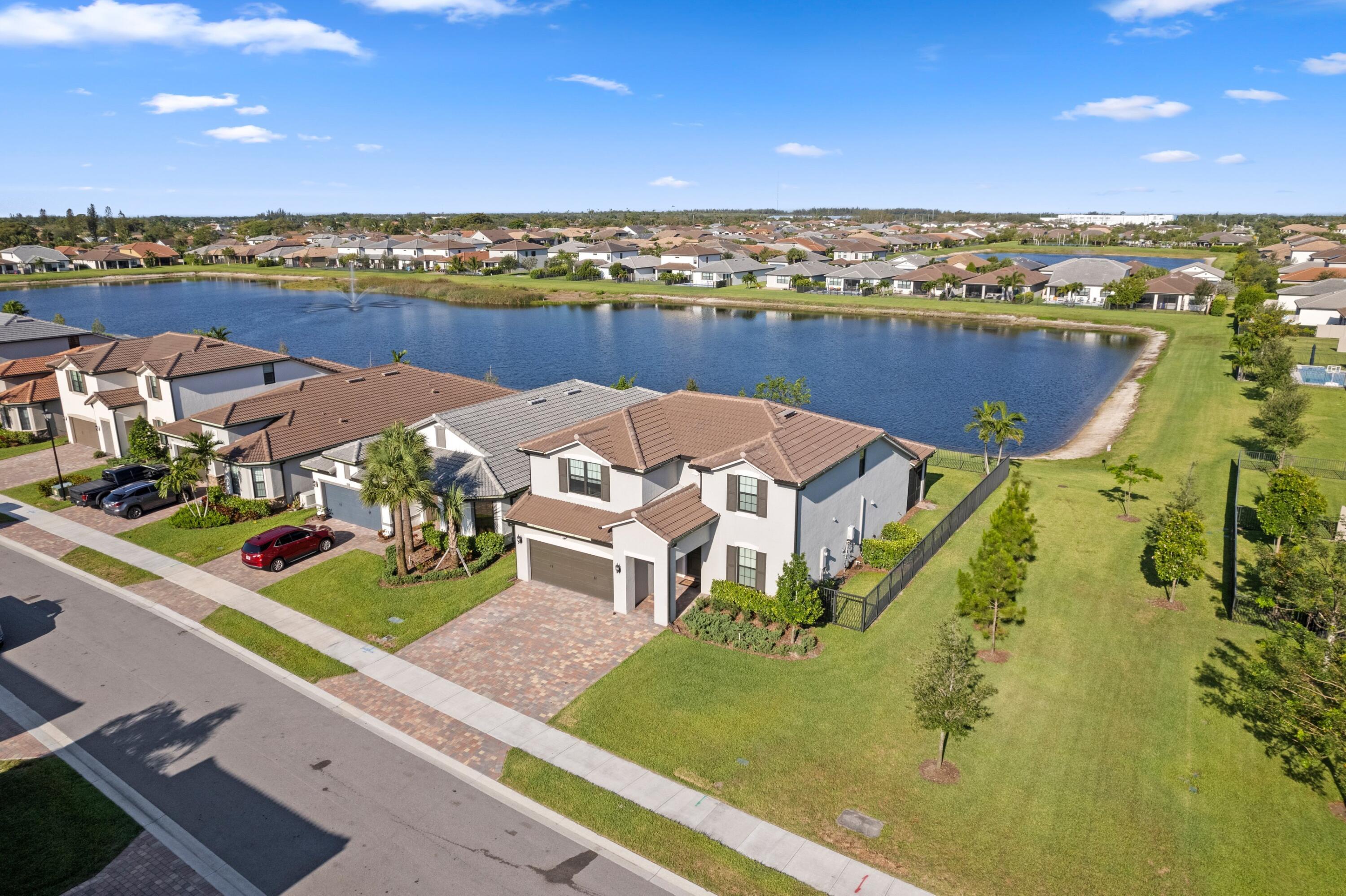 Short term rental available -Owners looking for a 9 month lease! Lake views, luxury vibes, and loaded with space- welcome This 5- bed stunner sits on a corner lot with a dreamy water view and a layout built for real life. Primary suite + bonus guest room (or office) downstairs, massive loft upstairs, and a private guest suite with its own bath. Upgraded tile, plush carpet, and a garage so big you'll actually want to organize it. Extended driveway = no parking battles. Built in 2022 with full impact windows and doors and a builder's warranty still in place. This isn't just a house- it's the one!