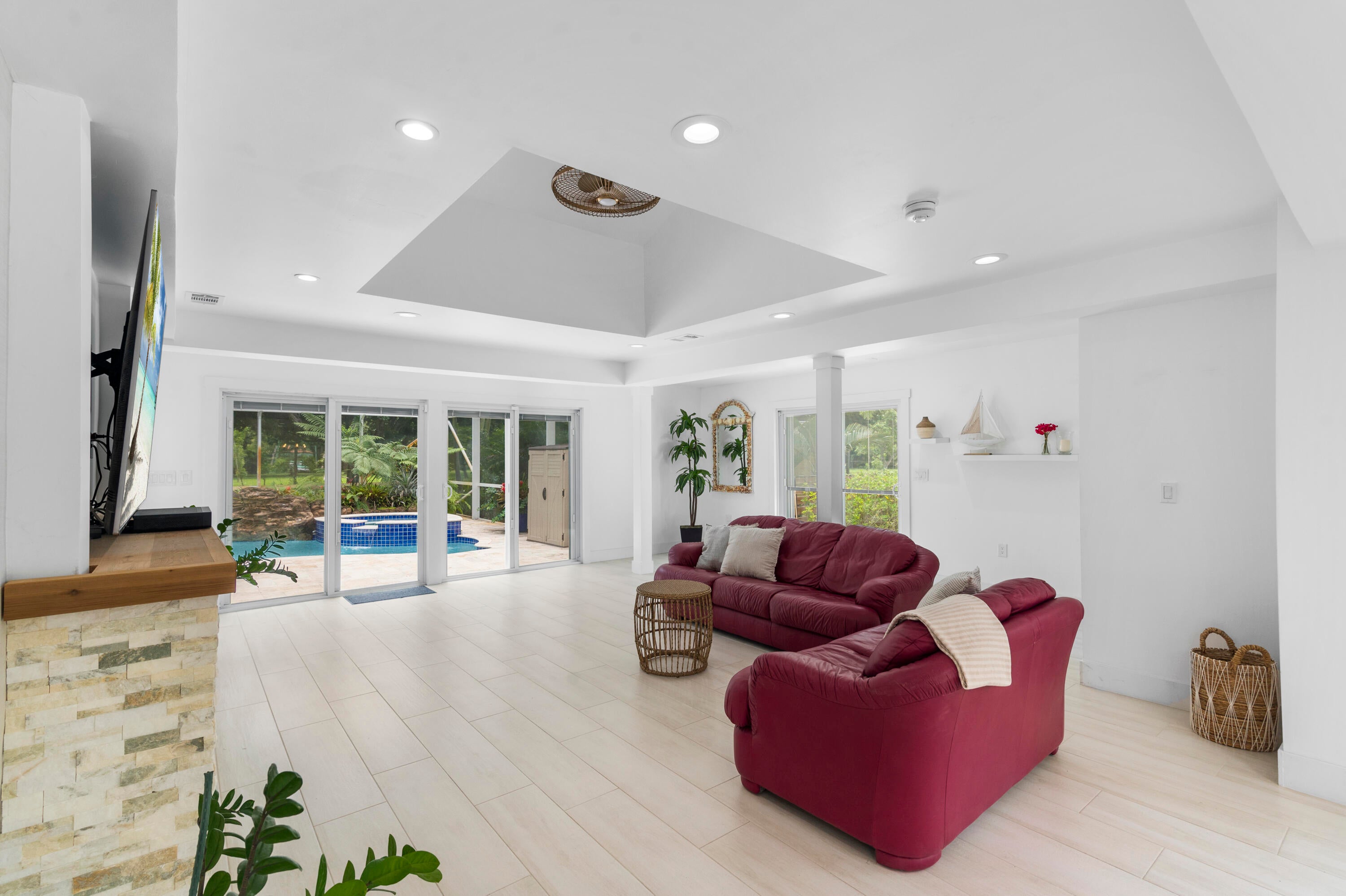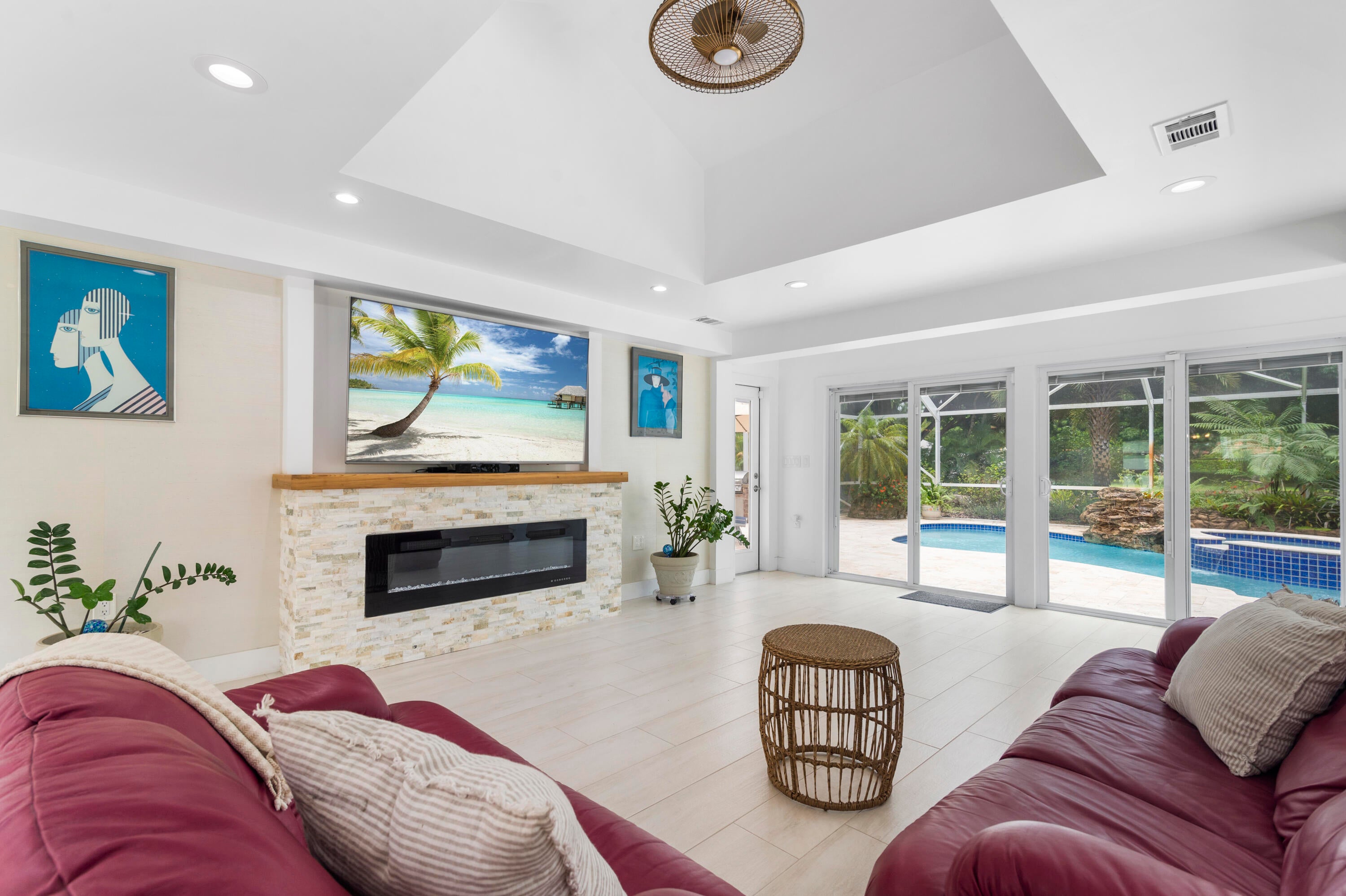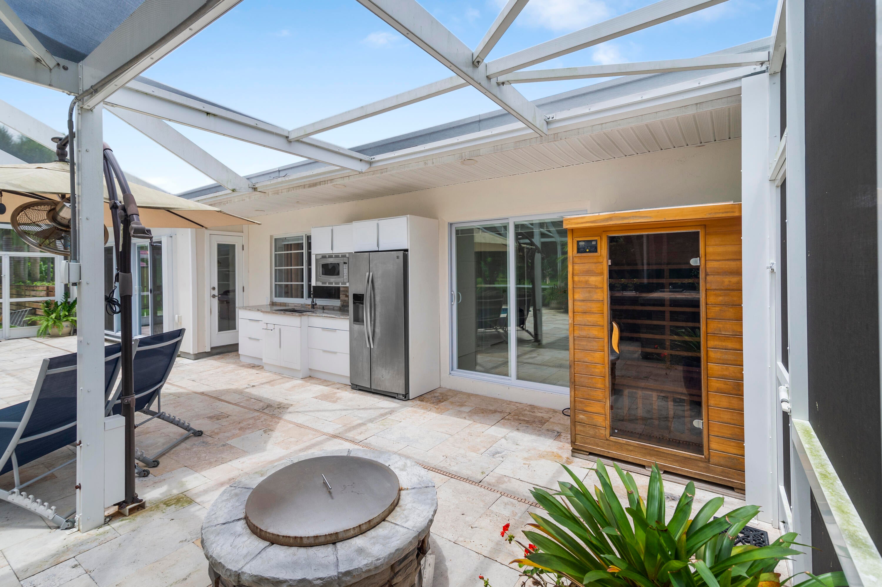 Open, spacious floor plan! Modern cabinets throughout, high end ceiling fans and light fixtures, one skylight and four sun tunnels, two custom fireplaces, three TV's, lots of closet/storage space, fully owned ADT alarm system with cameras, modern European white kitchen with quartz counter tops, stainless steel appliances, tankless water heater, set up for central vacuum, all sliding glass doors have built in blinds, screened in salt pool offer a resort like getaway with travertine patio, full summer kitchen, tropical plants, smoker, bar with patio furniture, storage sheds. Two full size refrigerators/freezer, two wine coolers, over 2.3 acres of 112 fruit trees and sprinkler system. New impact windows and accordion shutters. Enjoy a no HOA neighborhood.You can bring your, animals, boat, RV and more. Great home for entertaining and more.