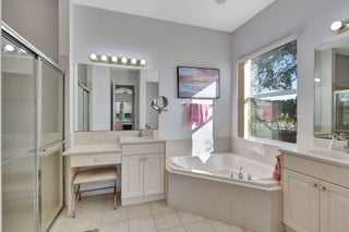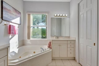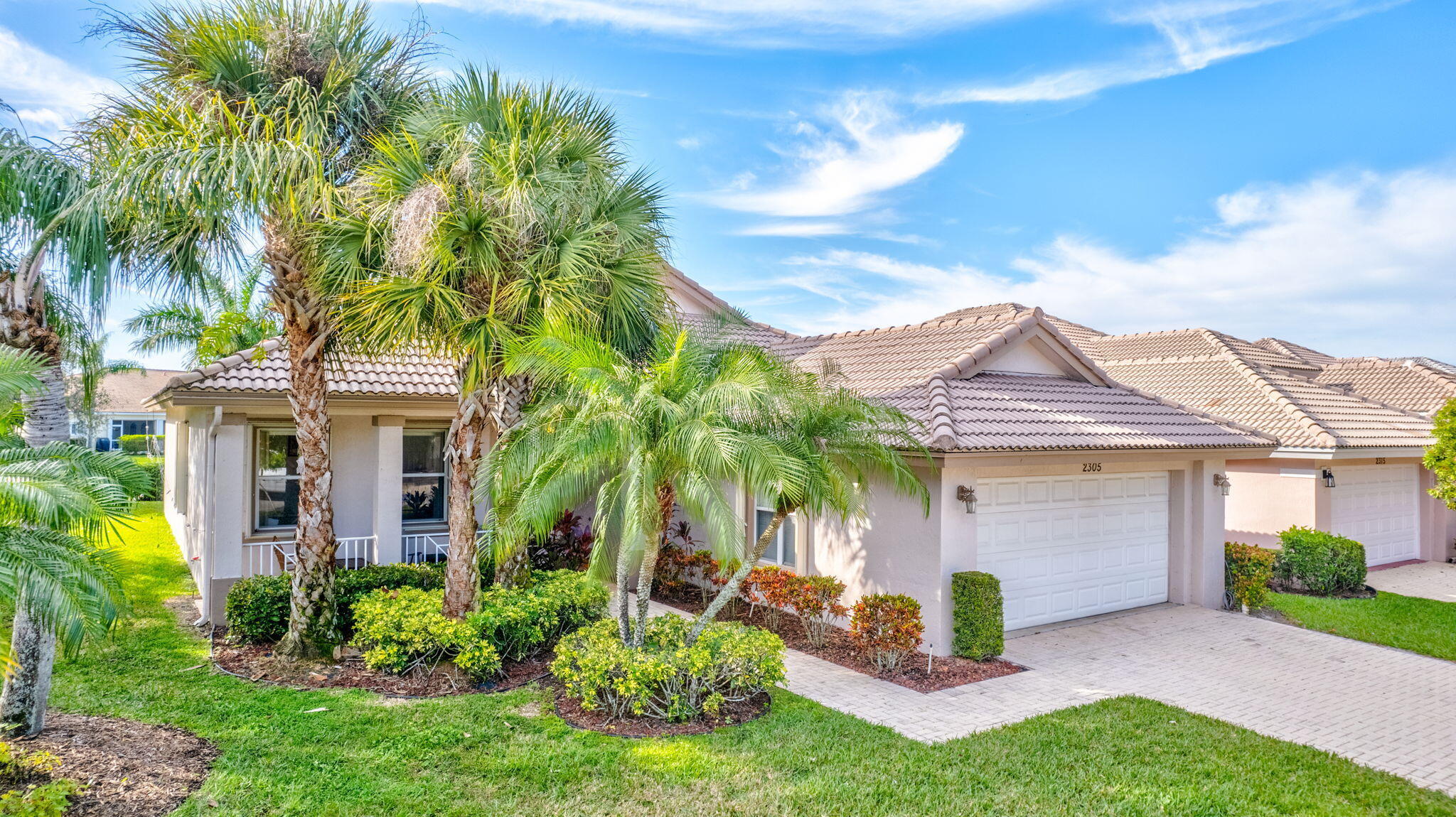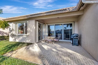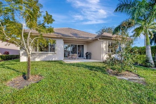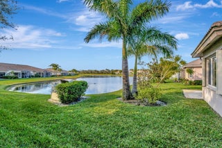 Immaculately maintained, this great room style floor plan features a large front covered patio and expanded back covered paver patio to relax and enjoy your morning coffee or afternoon wine. Reading the newspaper and watching the birds is a favorite activity here on Sailfish Cove. Upgraded kitchen featuring corian counters, and glass backsplash, 42'' cabinets, 5 burner stove, and arts and crafts and/or breakfast table. Enjoy easy to maintain 24'' porcelain tile floors in the living areas. Raised doors with ceiling fans and recessed lighting. Primary bathroom has raised cabinets and counters and a jacuzzi roman tub to soak the day away. Primary bedroom features 2 walk in closets. Wake up to peaceful water views. This home is part of your south Florida lifestyle. Yes, you deserve it!