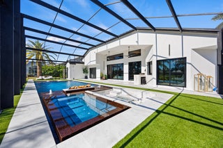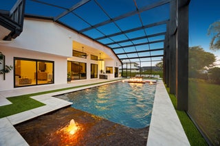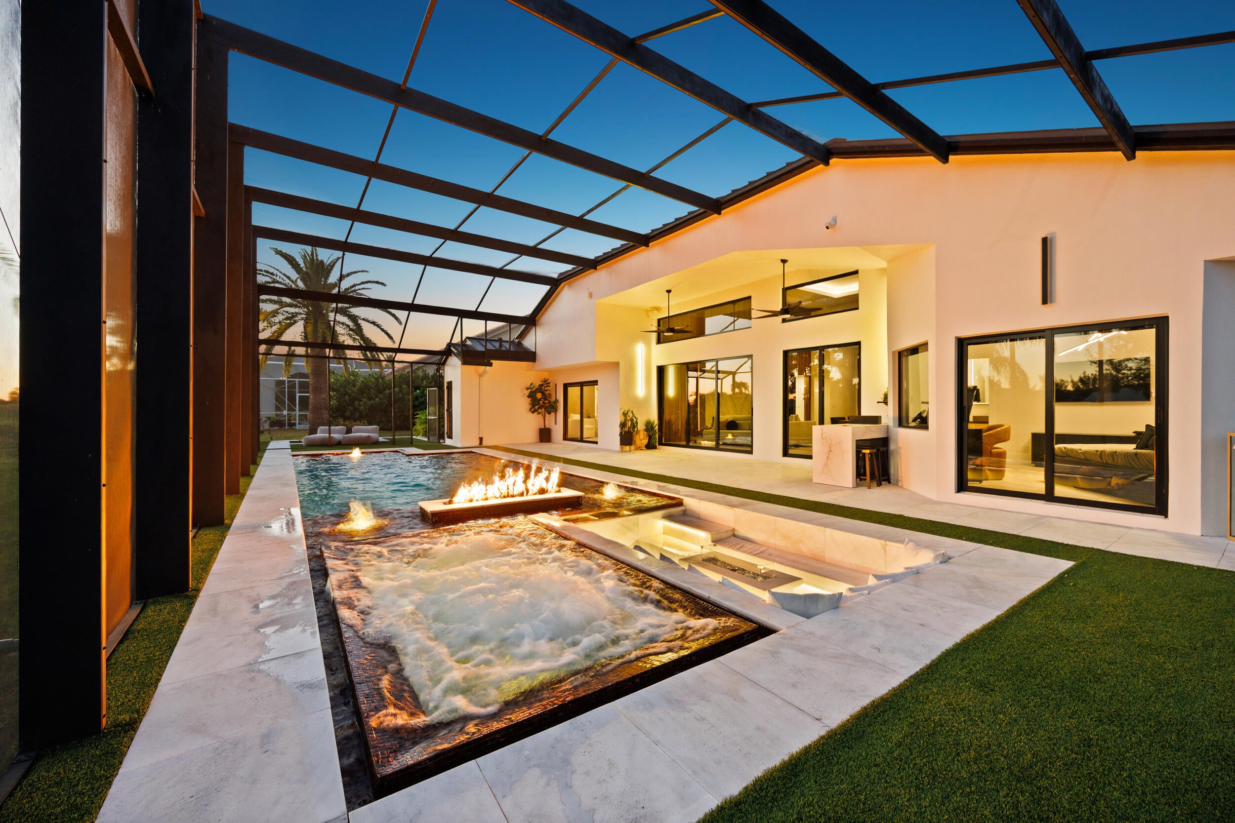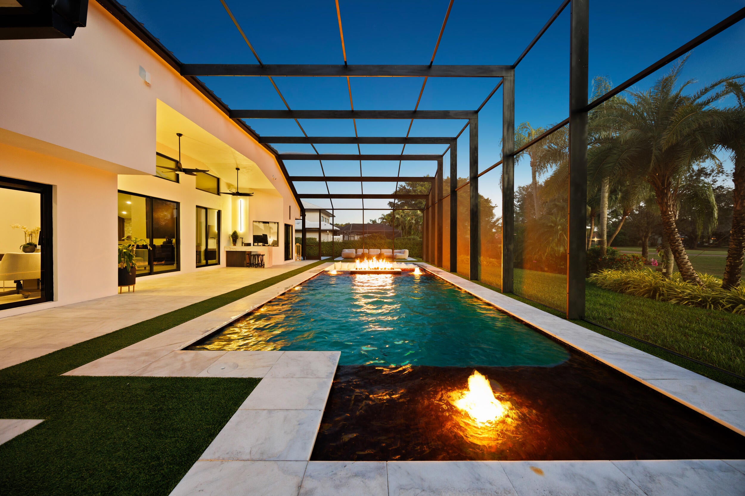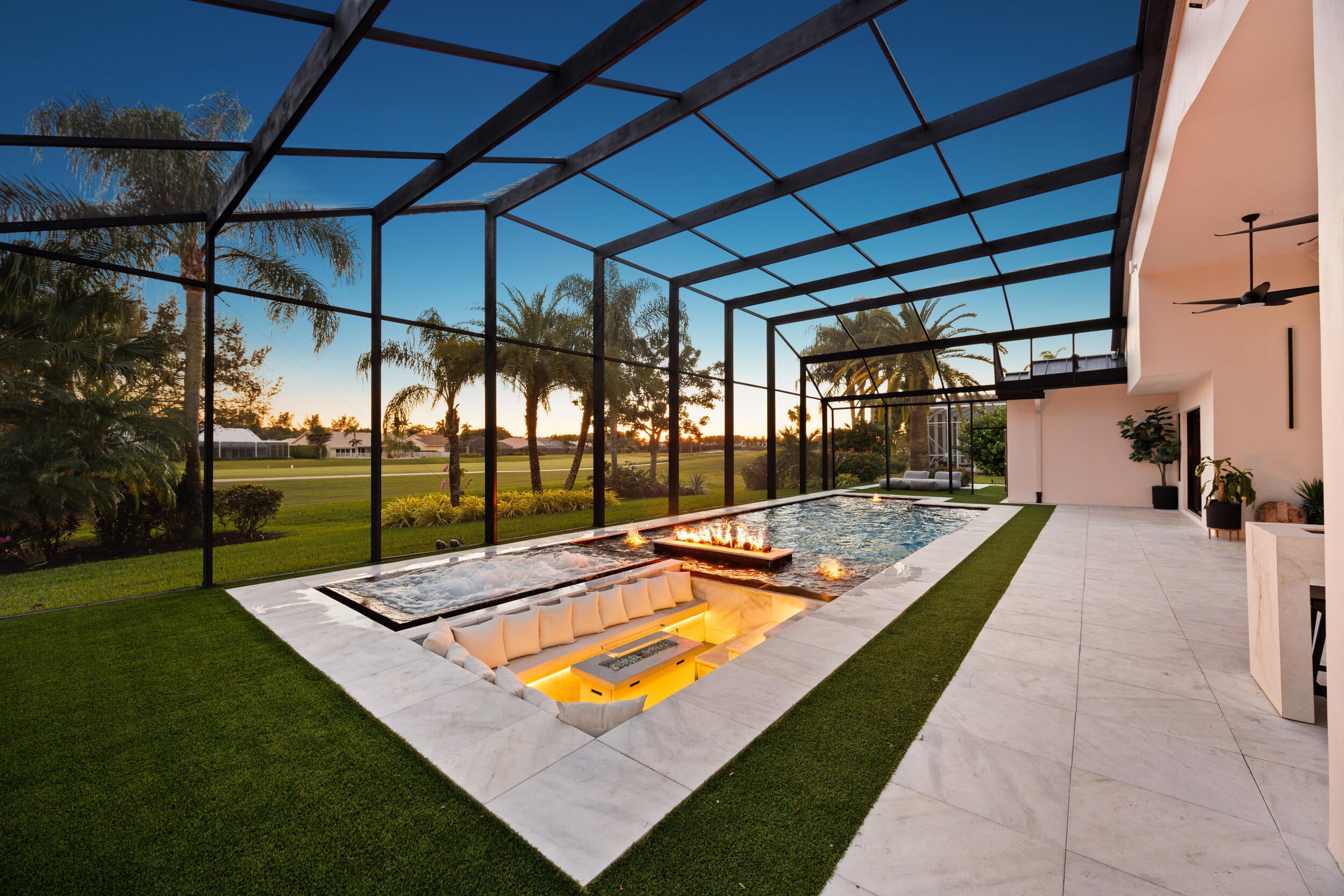From the moment you arrive, this fully renovated home captivates with a floating water walkway and front glass pivot door. Inside, soaring 19-foot ceilings, open-concept living, and impeccable high-end finishes set the stage for sophisticated living. The residence features 4 en-suite bedrooms with custom closets, a spacious primary bedroom with wet-room and dream closet, a chef's kitchen with Wolf appliances, bespoke cabinetry, and quartzite island, a modern Taj Mahal stone fireplace, as well as a 300-bottle wine cellar and man cave garage that elevate lifestyle and entertainment. Step outside to your private resort oasis with a saltwater pool, sunken lounge, in-pool fire pit, swim jets,10-person spa, and cabana steam bath, all framed by lush tropical landscaping and golf course views.This stunning Fully Renovated Home with No Detail Overlooked can be yours. Exterior & Structural "' 'New Standing Seam Metal Roof - Installed 2024 (50+ year life expectancy, energy-efficient, hurricane-rated) "' 'Complete Foam Insulation System - Installed 2024 for maximum energy efficiency "' 'Smooth Stucco Finish - Entire exterior refinished 2024 "' 'Freshly Painted Interior & Exterior - 2024 "' 'Hurricane Impact Protection - Installed 2024 "' 'High-performance impact windows & doors (energy-efficient & noise reducing) "' 'Insulated hurricane-rated garage doors (2-car + golf cart garage) "' 'Expanded Circular Driveway - New paver driveway & walkway with modern hardscaping (2024) Mechanical, Electrical & Plumbing "' 'Dual High-Efficiency HVAC Systems - 2 new units with condensers (2024) "' 'Complete HVAC Ductwork Replacement - Optimized for air quality and comfort (2024) "' 'Smart Control Thermostats - Multi-zone management (2024) "' 'HVAC UV Light Protection "' 'Upgraded 200-Amp Electrical Panel - Installed 2024 "' 'Whole-House Surge & Lightning Protection System - 2024 "' 'Smart Hybrid Electric Water Heater - Energy-efficient with intelligent controls (2024) "' 'Full Repiping Throughout Entire House - Installed 2024 (all new plumbing supply lines) "' '500-Gallon Underground Propane Tank - Installed 2024 (dedicated to range & generator-ready) "' 'Tesla EV Charger - Installed 2025 "' 'Dedicated Irrigation Well - Installed 2025 with rust-prevention system "' 'Smart Irrigation System - Wi-Fi controlled (2025) "' 'Smart Smoke & Carbon Monoxide Detectors - Throughout Lighting & Home Automation "' 'Fully Integrated Smart Home System - Lighting, security, sound, and climate control "' 'Smart Switches & Dimmers - Throughout "' 'LED Recessed High-Hat Lighting - Energy-efficient & modern design "' 'Motorized Window Treatments - Programmable for privacy & efficiency "' 'Smart Sonos Whole-House Audio System - Interior & exterior zones Pool & Outdoor Living "' 'Modern Pool Resurfacing & Custom Tile Design - 2024 "' 'Smart Automated Pool System - Jets, bubbles, LED lighting, automated controls (2024) "' 'Electric Pool Heater & Saltwater System - 2024 "' 'Champagne Spa / Hot Tub - Built-in with dual temperature zones, foot massage pump, and targeted hydrotherapy blowers "' 'Integrated Sunken Lounge - With built-in gas fireplace & modern seating "' '20' High Screen Enclosure - With UV protection (new) "' 'Modern Cabana Bathroom & Steam Room Shower "' 'Outdoor Wet Bar - Built-in with modern finishes "' 'Professionally Designed Landscaping - With LED low-voltage lighting "' 'Ring Security System - Exterior cameras & smart doorbell Interior Features "' 'Modern Custom Walk-In Wine Cellar - Insulated glass, floating racks, capacity ~300 bottles "' 'Custom European-Style MDF Panels & Hidden Doors - For a sleek, modern aesthetic "' 'Custom Kitchen Cabinetry & Bar Pantry - With integrated panel-ready appliances "' 'Luxury Appliance Package: Wolf 60" Professional Fuel Range, Wolf 24" Built-In Microwave Drawer, Signature 60" Refrigerator & Freezer (60" built-in), Asko Dishwasher, LG Tower Washer & Dryer "' 'Modern Custom Closets - Designer MDF-built with integrated lighting "' 'Porcelain Tile Flooring - Oversized 24" x 48" slabs throughout "' 'Smart Toilets - Multiple units with bidet features & ambient lighting "' 'Designer Bathrooms - LED backlit mirrors, premium fixtures, and modern spa-style finishes "' 'Smart Frame TVs - Flush-mounted, integrated entertainment "' 'Interior Fireplaces - Contemporary electric fireplaces with LED accent lighting A Private Club Lifestyle- Golf Paradise!!! Boca Woods Country Club is nestled in the heart of Boca Raton and just minutes from two miles of beautiful white sandy Boca Raton Beaches. Located in Palm Beach County, Boca Raton offers residents an assortment of casual and fine dining, world-class shopping and entertainment venues. Boca Woods Country Club welcomes members to Palm Beach living, in an upscale community, to enjoy an active lifestyle that is set in a relaxed and comfortable golf and country club private residential community. It's a family friendly community where neighbors become friends and friends are like family. Members embrace a complete lifestyle with an array of resort-style amenities including 36-holes of spectacular golf, 7 Har Tru tennis courts, pickleball, modern Fitness Center, card rooms and an elegant-contemporary clubhouse for dining and socializing. Lifelong friendships are made while enjoying a life well lived. Championship Golf in Boca Raton Boca Woods Country Club is home to two of the best golf courses in Southeast coast of Florida. Boca Woods is a golfer's paradise with two of the lowest density courses in the Boca Raton area. Golfers have five sets of tees to choose from, plus recently installed family tees. At Boca Woods, you are sure to enjoy easy golf access to tee times and frequent games. New and seasoned golfers benefit from Boca Woods resources. Newly renovated practice facilities include chipping, putting and driving range facilities, and a newly installed range hood providing plenty of space for golfers to practice in the shade. The Woods Course, de