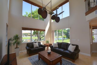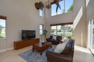 Welcome to this spacious and beautifully designed 5 bedroom, 4 bathroom Mediterranean style home. Located in the sought-after community of Isola Bella Estates. This home is situated on one of the biggest culdesac, waterfront lots in the community. Offering over 3,800 SF of living space across two stories, this home features high ceilings and a functional layout with the primary suite and extra bedroom downstairs. Additionally the upstairs features a nice size loft and 3 extra bedrooms. The beautiful kitchen has all new stainless steel appliances. Lake views can be seen throughout the home. With a great central location in Lake Worth, residents have easy access to Florida's turnpike, top rated schools, shopping, and dining.Residents of Isola Bella Estates enjoy a wide range of amenities including a resort style clubhouse, fitness center, tennis and pickle ball court as well as having a manned gate. Don't miss out on this move in ready home that truly has it all.