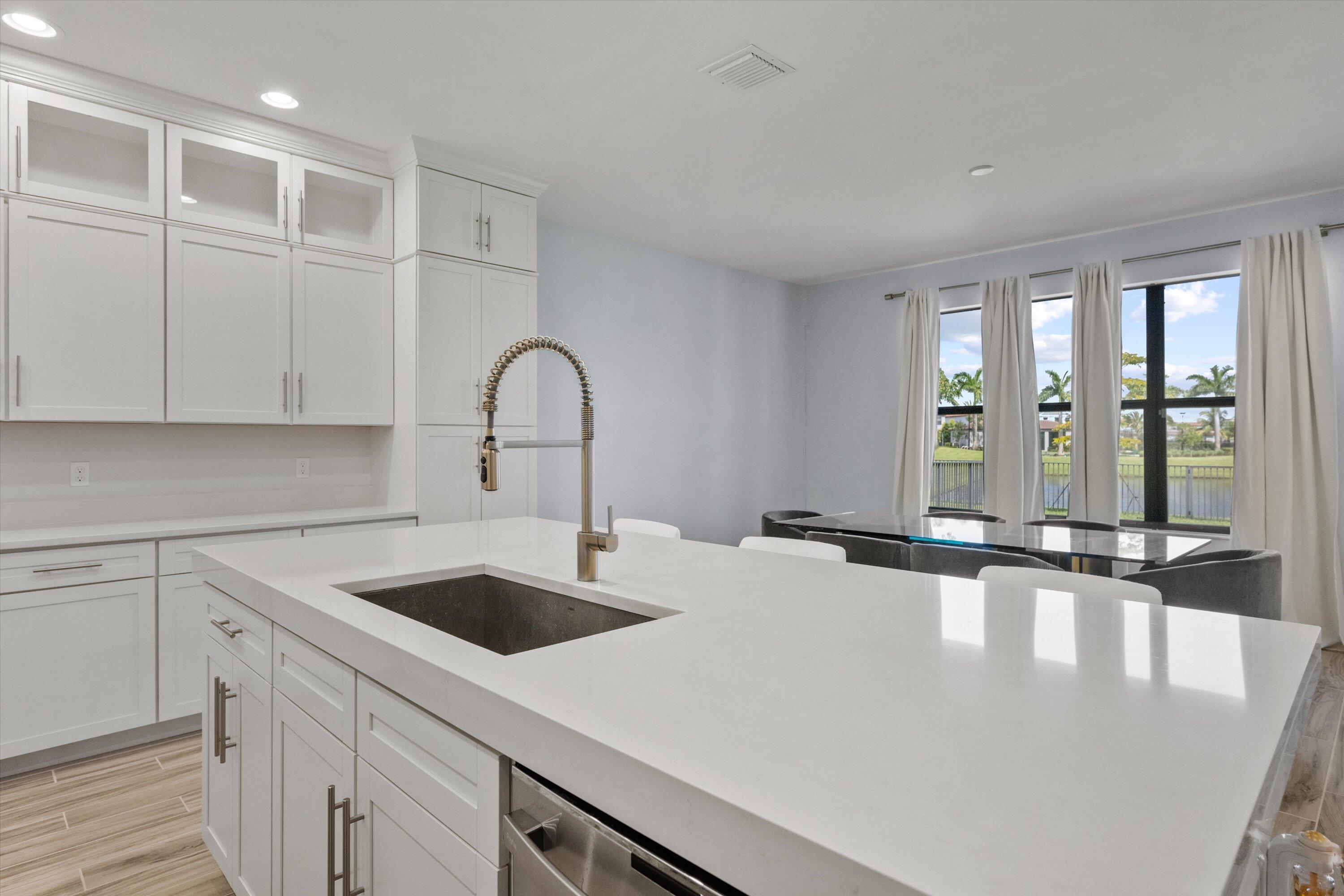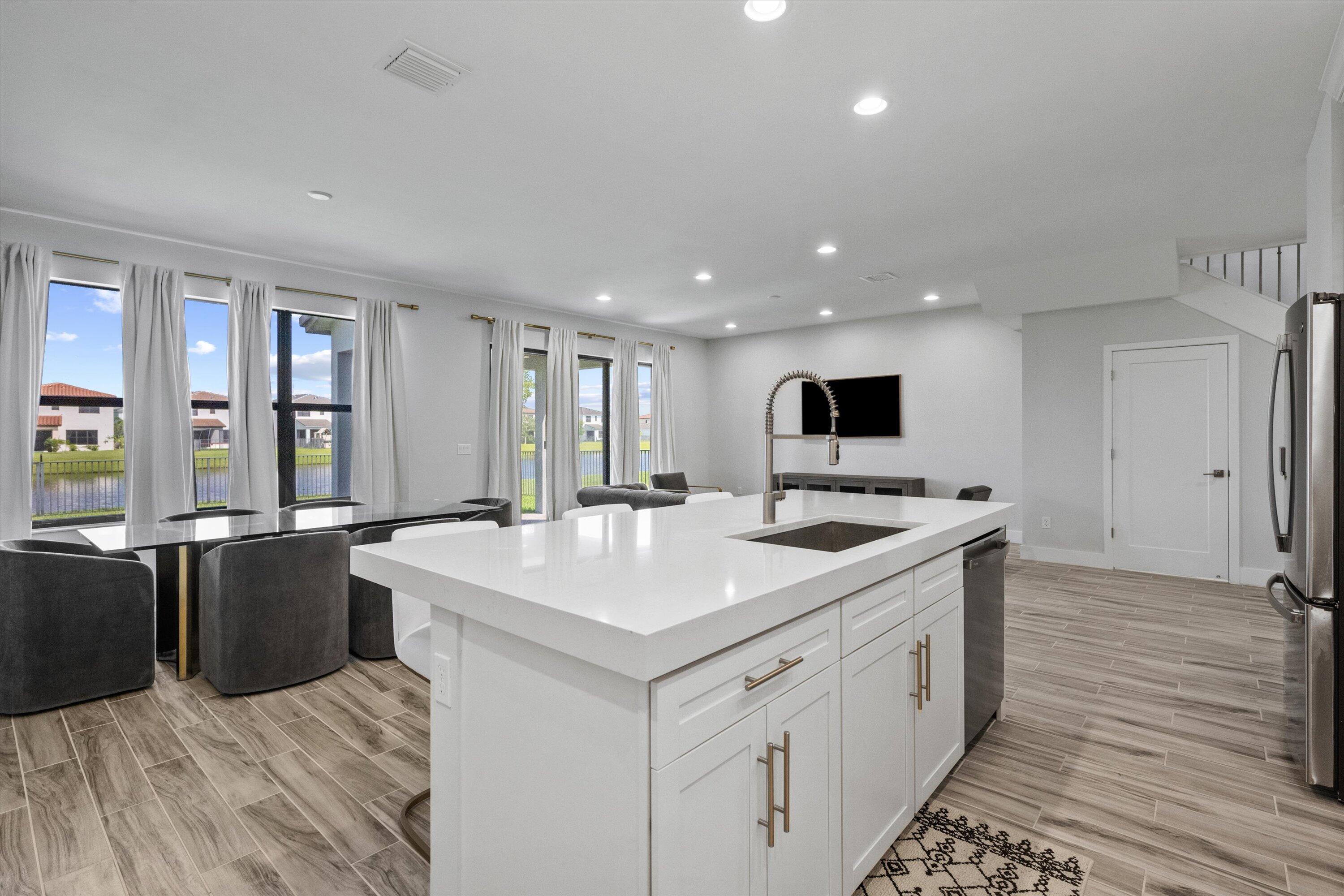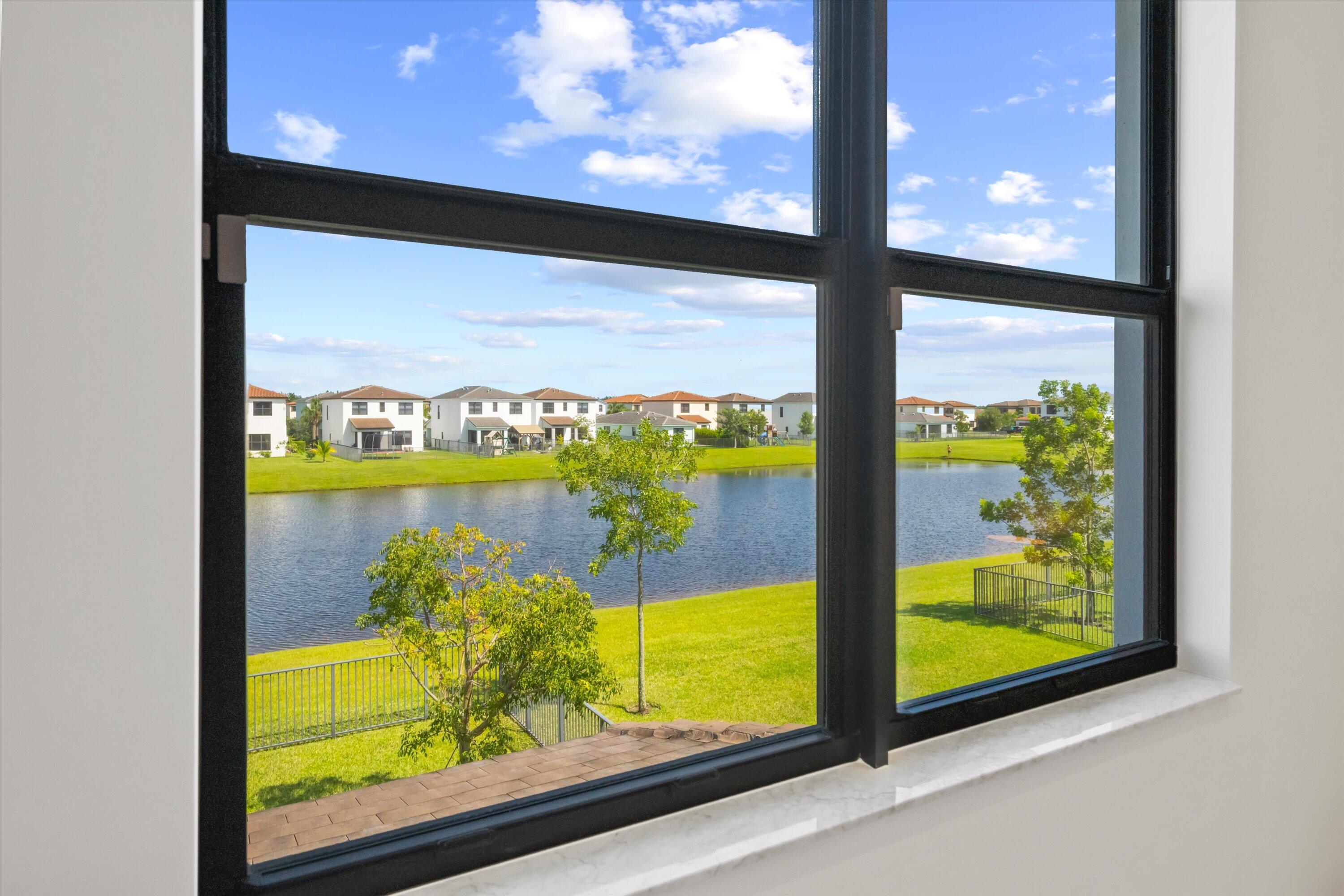Welcome to your dream home nestled in the picturesque community of Skycove. This stunning two-story residence boasts 3 bedrooms, 2.5 bathrooms, and a versatile loft area, perfect for today's lifestyle. As you approach, the impeccable landscaping sets the tone for the elegance and charm found within.Step inside to discover a seamless flow of brown wood-like tile adorning the entire first floor. The heart of the home, the kitchen, is a true showstopper with its ceiling-reaching white shaker cabinets, shimmering white quartz countertops, and sophisticated silver plumbing and hardware. A generous island, topped with a 3" white quartz slab, houses an under-mount sink and is complemented by top-of-the-line stainless steel appliances, including a French door refrigerator. The ample countertop space is ideal for culinary adventures, while the adjacent dining room invites large gatherings, bathed in the natural light streaming through the nearby windows. The expansive living room features recessed lighting and is enriched by glass sliders that open to stunning views of the backyard and serene lake beyond. A stylish half bathroom on the main floor boasts a pedestal sink and framed mirror, offering convenience and elegance. Journey upstairs to the vast loft space, offering endless possibilities for customization. The upper level, unified by the continuation of the beautiful tile flooring, is home to three bedrooms and two chic bathrooms. The master suite is a retreat of its own, featuring recessed lighting, a walk-in closet, and breathtaking lake views. Its ensuite bathroom is adorned with dual sinks, white quartz countertops, and a luxurious shower encased in glass with marble-like tiles. The two additional bedrooms provide ample closet space, while the second bathroom echoes the home's style with dual sinks, a tub, and sleek finishes. The spacious laundry room is equipped with a washer and dryer, along with abundant storage space, catering to every practical need. Completing this remarkable home is a convenient 2-car garage, providing ample space for vehicles and additional storage solutions. Step outside to the fenced backyard, an entertainer's dream with extended pavers perfect for gatherings, all set against the tranquil backdrop of the lake. This home is the perfect blend of style, comfort, and modern living, ready to welcome its new owners. Don't miss the opportunity to make this exquisite Skycove residence your own and start creating lasting memories. Landlord will pay for landscaping and pest control.