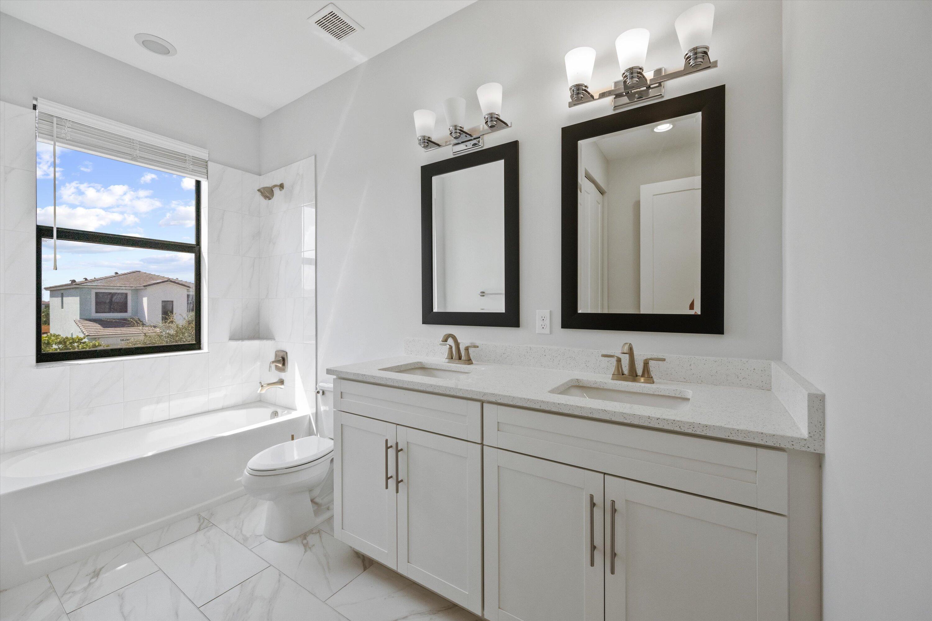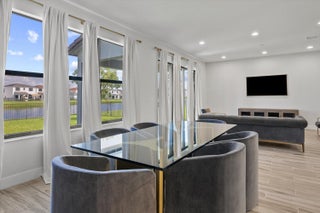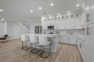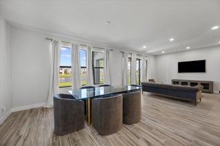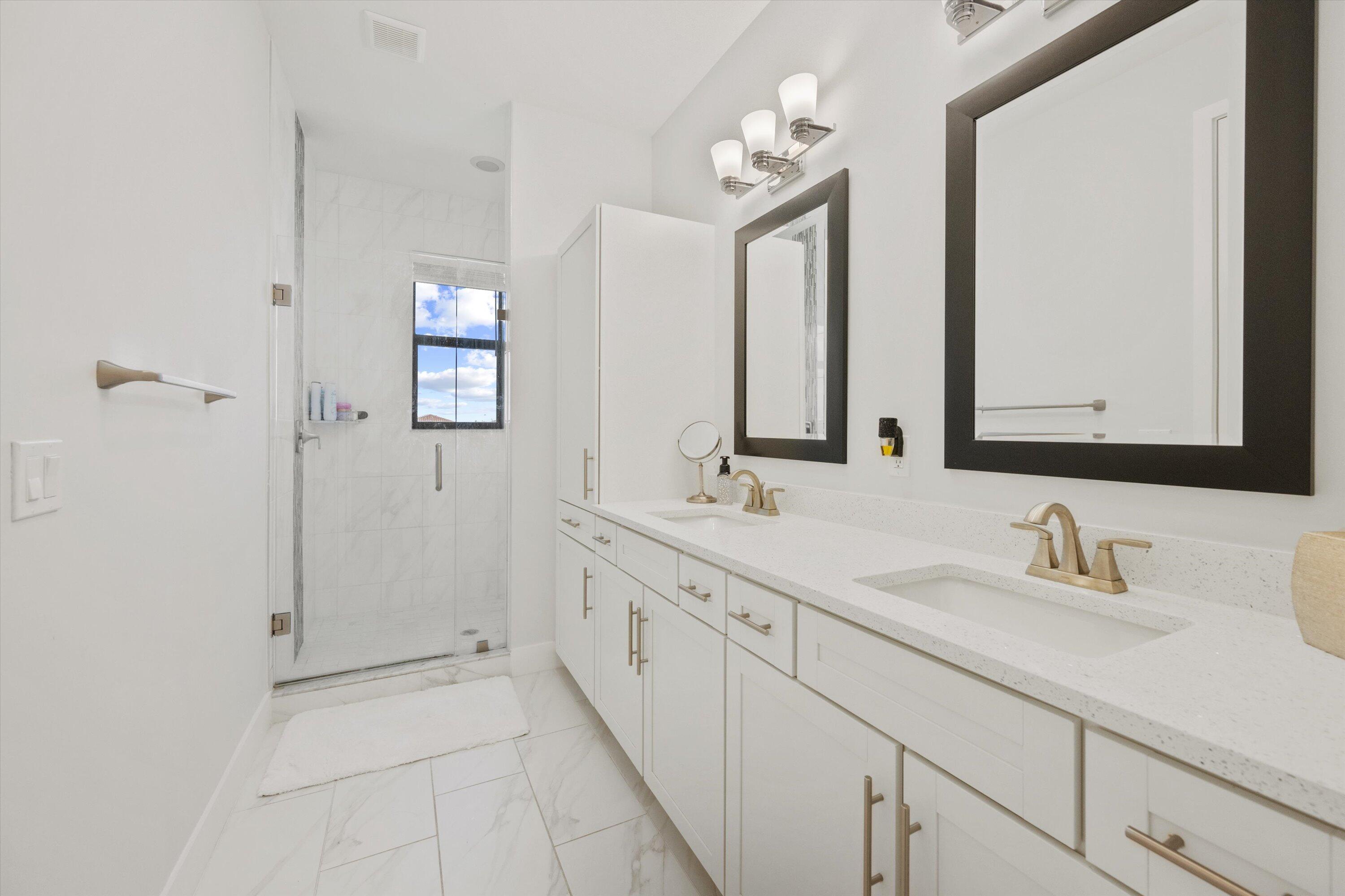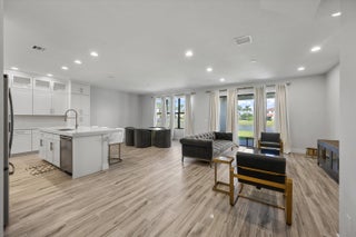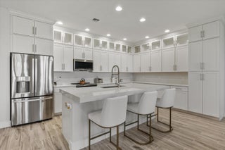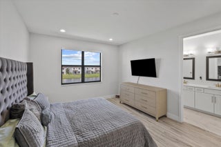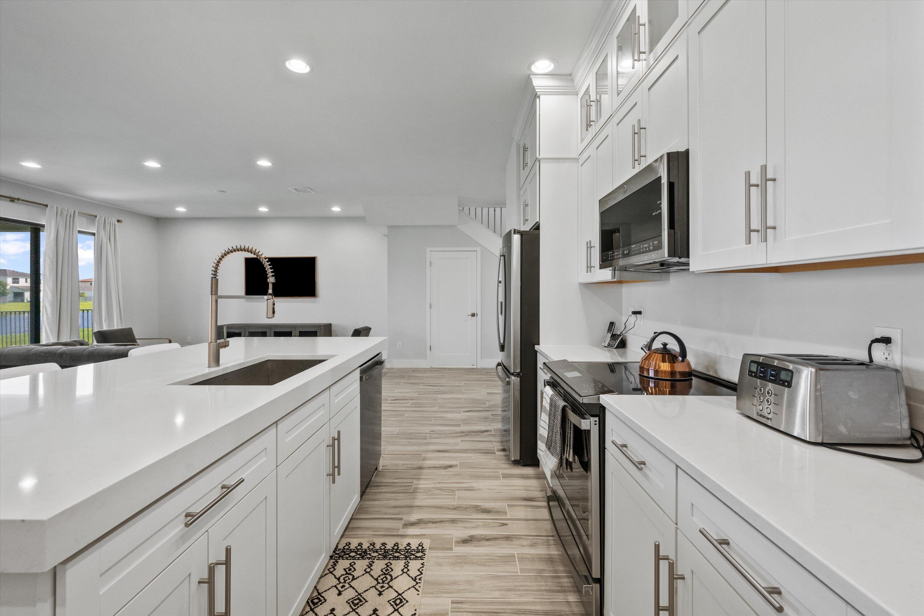 Welcome to your dream home nestled in the picturesque community of Skycove. This stunning two-story residence boasts 3 bedrooms, 2.5 bathrooms, and a versatile loft area, perfect for today's lifestyle. As you approach, the impeccable landscaping sets the tone for the elegance and charm found within.Step inside to discover a seamless flow of brown wood-like tile adorning the entire first floor. The heart of the home, the kitchen, is a true showstopper with its ceiling-reaching white shaker cabinets, shimmering white quartz countertops, and sophisticated silver plumbing and hardware. A generous island, topped with a 3" white quartz slab, houses an under-mount sink and is complemented by top-of-the-line stainless steel appliances, including a French door refrigerator. The ample countertop space is ideal for culinary adventures, while the adjacent dining room invites large gatherings, bathed in the natural light streaming through the nearby windows. The expansive living room features recessed lighting and is enriched by glass sliders that open to stunning views of the backyard and serene lake beyond. A stylish half bathroom on the main floor boasts a pedestal sink and framed mirror, offering convenience and elegance. Journey upstairs to the vast loft space, offering endless possibilities for customization. The upper level, unified by the continuation of the beautiful tile flooring, is home to three bedrooms and two chic bathrooms. The master suite is a retreat of its own, featuring recessed lighting, a walk-in closet, and breathtaking lake views. Its ensuite bathroom is adorned with dual sinks, white quartz countertops, and a luxurious shower encased in glass with marble-like tiles. The two additional bedrooms provide ample closet space, while the second bathroom echoes the home's style with dual sinks, a tub, and sleek finishes. The spacious laundry room is equipped with a washer and dryer, along with abundant storage space, catering to every practical need. Completing this remarkable home is a convenient 2-car garage, providing ample space for vehicles and additional storage solutions. Step outside to the fenced backyard, an entertainer's dream with extended pavers perfect for gatherings, all set against the tranquil backdrop of the lake. This home is the perfect blend of style, comfort, and modern living, ready to welcome its new owners. Don't miss the opportunity to make this exquisite Skycove residence your own and start creating lasting memories. Landlord will pay for landscaping and pest control.