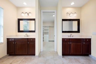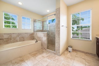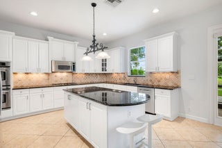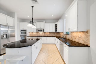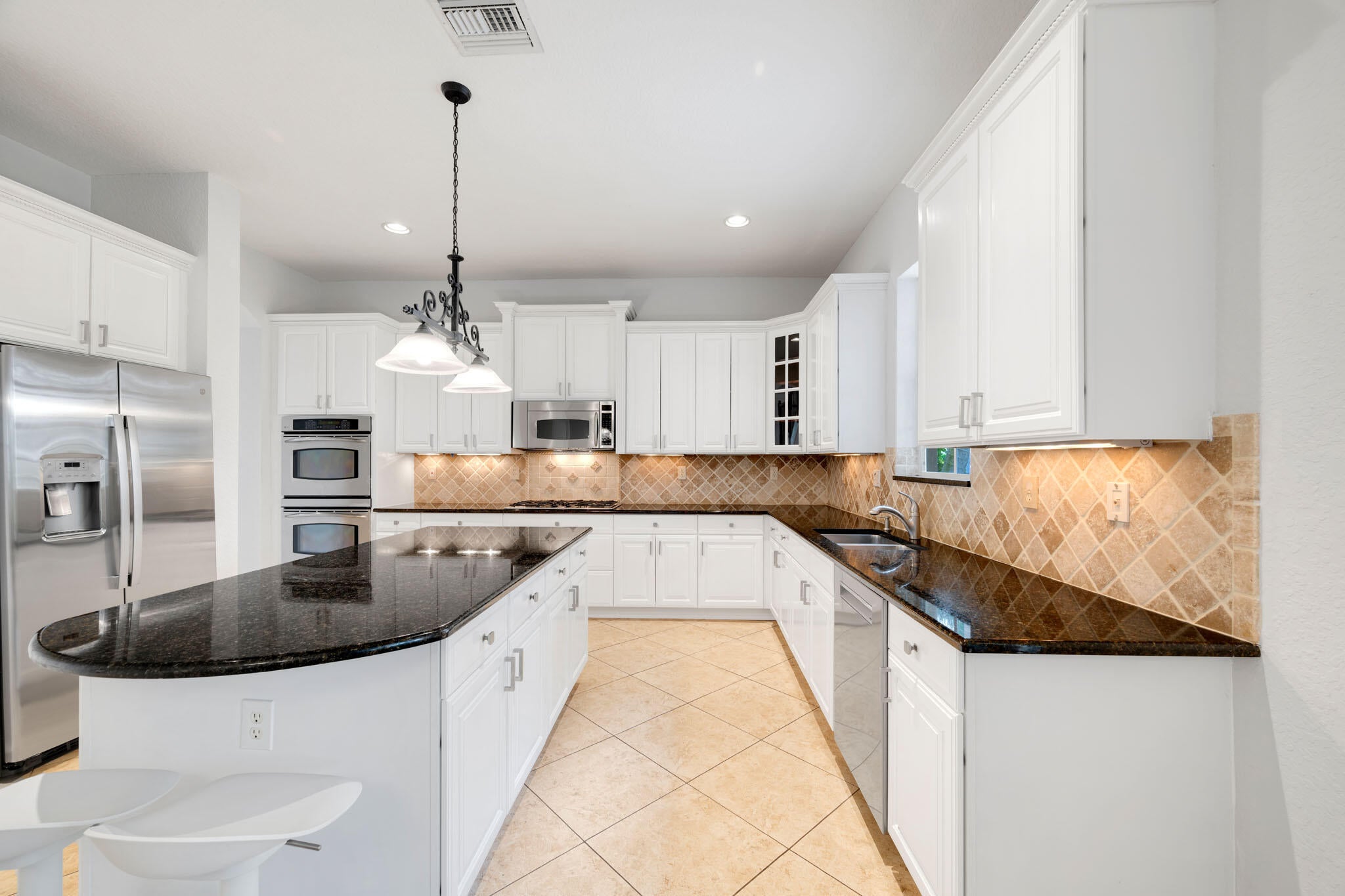 Stunning lakeview home on a premium lot in a highly sought-after community, just 5 minutes from the beach, mall, and highway! This move-in ready 4 bed, 3.5 bath home features an open layout, upgraded kitchen with massive island, white wood cabinets, granite counters, stainless steel appliances, and tile backsplash. Enjoy 2 luxurious master suites with a private screened balcony, spa-style bath, and huge walk-in closet. Includes a spacious den/office (convertible to 5th bed), crown molding, wood-iron stair rail, custom travertine patio, lush landscaping, high ceilings, and a finished 735sf garage.