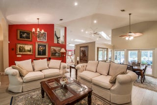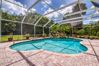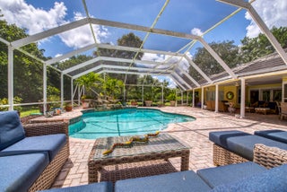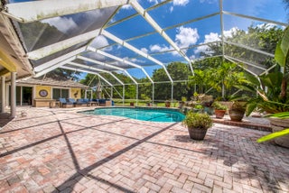 Nestled on a sprawling 1.24-acre cul-de-sac lot within the prestigious guard-gated community of Steeplechase in Palm Beach Gardens, this 4-bedroom, 3.5-bathroom estate offers both privacy and space to create your dream home. With 3,350 square feet of living area, a 3-car garage, and a screen-enclosed pool and patio overlooking a tranquil interior canal, this residence captures the essence of Florida living. Inside, the heart of the home is the kitchen, appointed with custom ecru-toned cabinetry, granite countertops and backsplash, stainless steel appliances, and a cozy breakfast nook set in a bay window with pool views. The adjoining family room, dining room, and living spaces are designed for connection, each offering French or sliding door access to the outdoor retreat and 180-degreeviews of the pool and patio. The expansive primary suite is a true sanctuary with private areas for work and relaxation, including a sitting area, desk space, and a built-in wet bar with paneled mini-fridge. Ample closet space and en-suite bath complete this retreat. Additional bedrooms offer versatility, including a flex office/guestroom and a retrofitted media room with tiered seating for a true theater experience. Lovingly maintained by its original owners, the property provides a rare opportunity to personalize and modernize to your taste while enjoying the benefits of an established estate community. Experience the privacy, scale, and lifestyle of Steeplechase, schedule your private showing today!