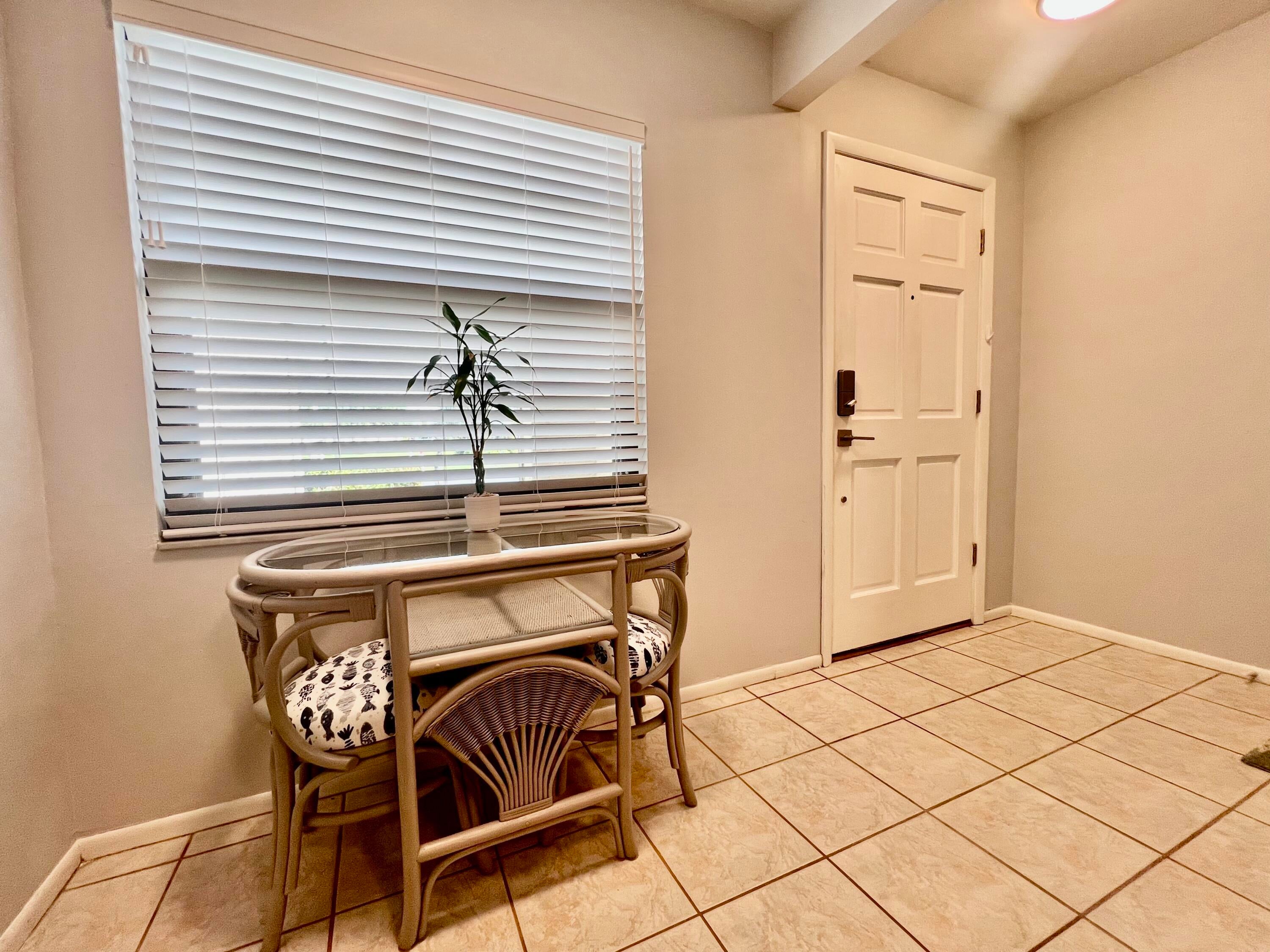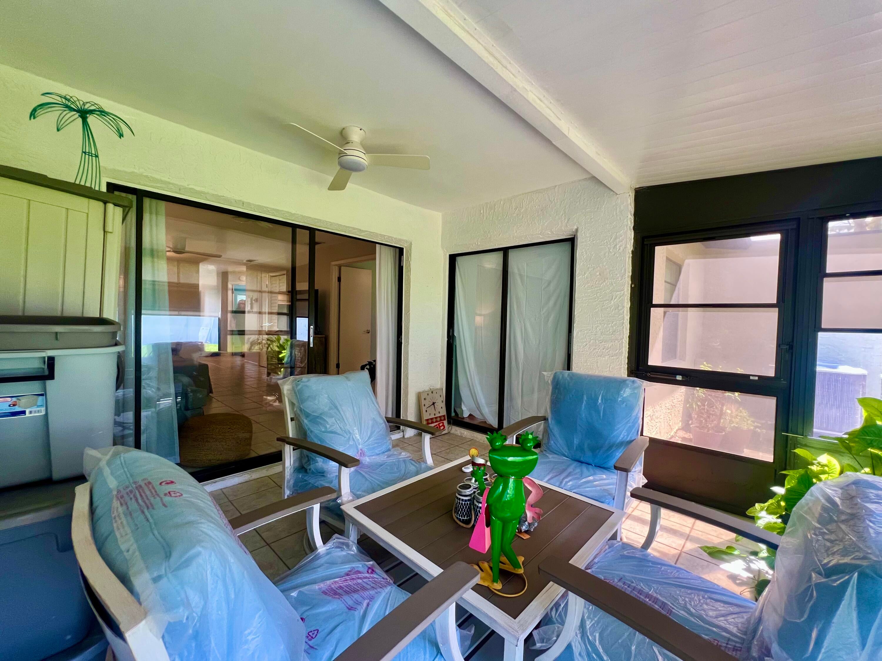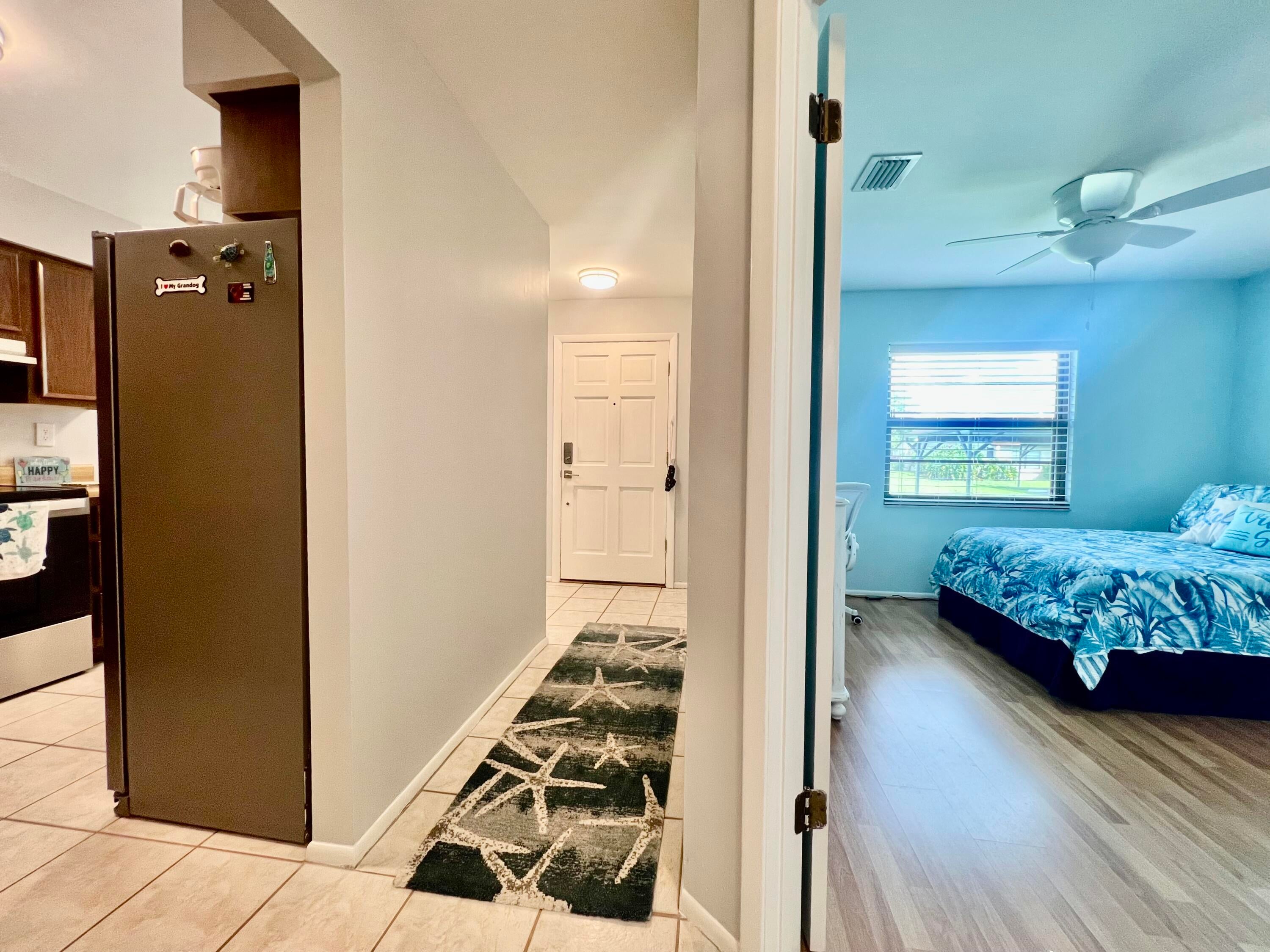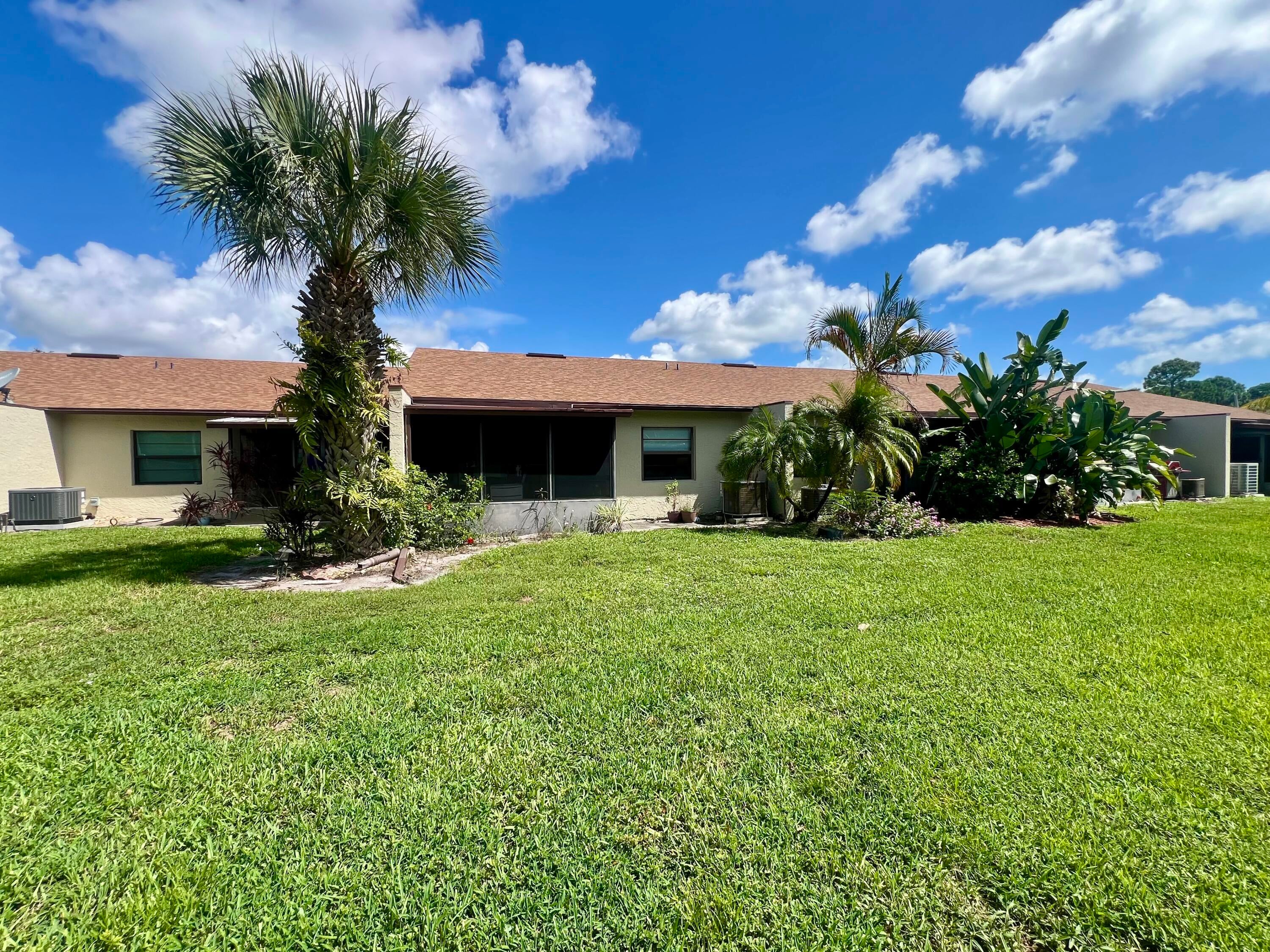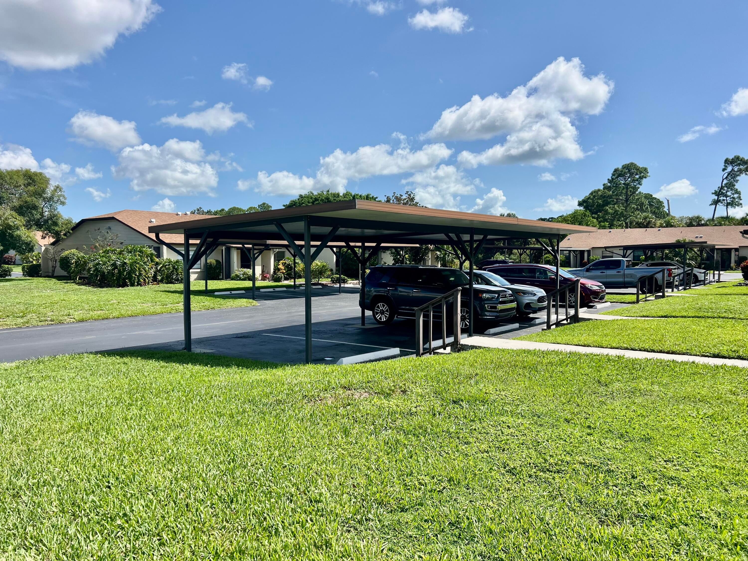 Welcome to this beautifully updated condo in the desirable Indian Pines Village! This move-in-ready home features a freshly painted interior and completely remodeled bathrooms with new showers, bathtubs, vanities, countertops, and modern fixtures. The kitchen shines with stainless steel appliances, while new electrical switches, dimmers, and lighting add a sleek, contemporary touch throughout. Popcorn ceilings have been removed for a smooth finish, and the entrance has been upgraded with a hurricane impact door, storm door, and impact-resistant windows. Enjoy added comfort with new ceiling fans, a private restored patio, and the convenience of an in-unit washer and dryer. Major updates include AC (2017), water heater (2017), and a brand-new roof (12/2023). The community also offers storage for RVs, boats, and motorcyclesperfect for Florida living!