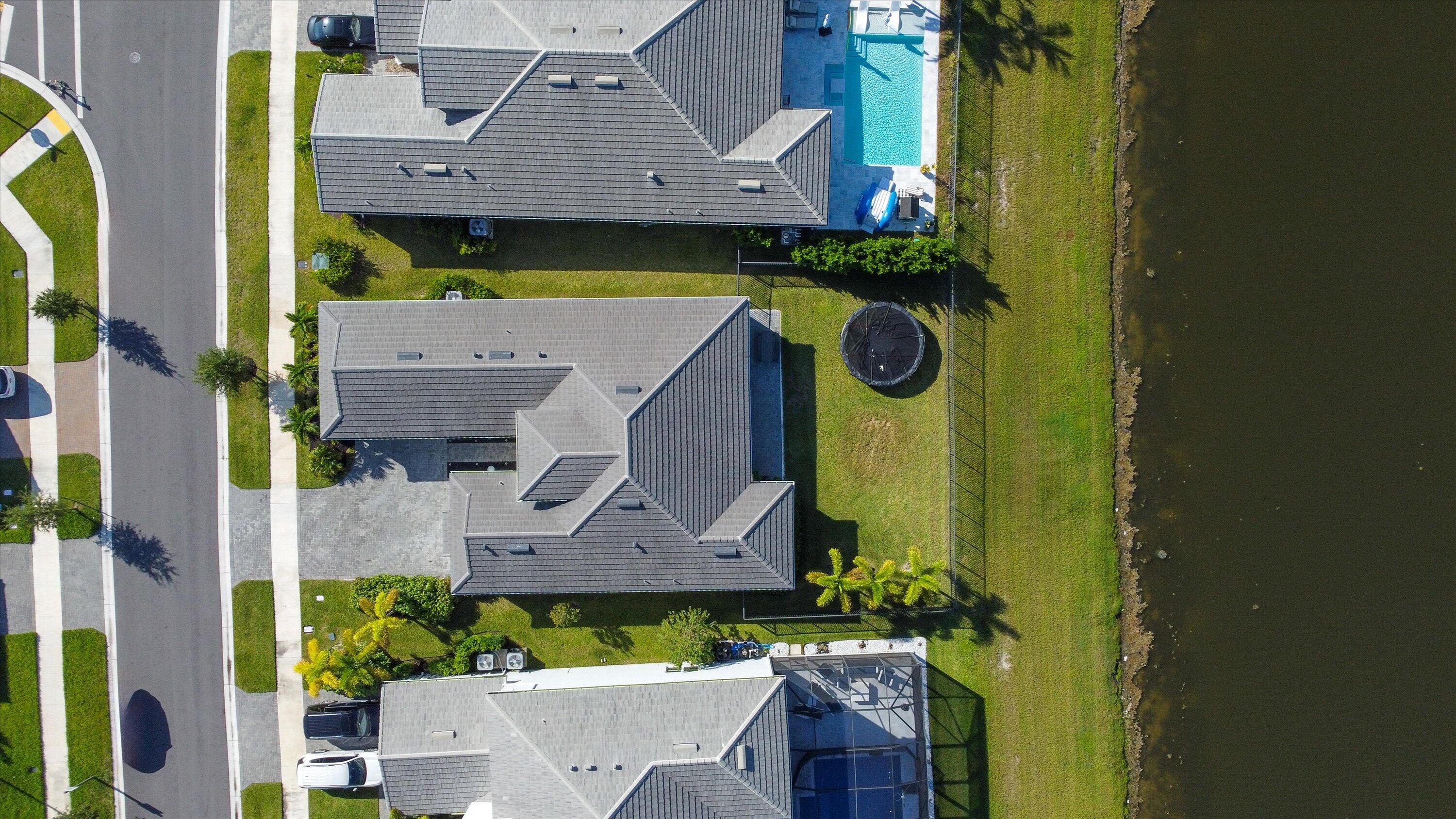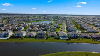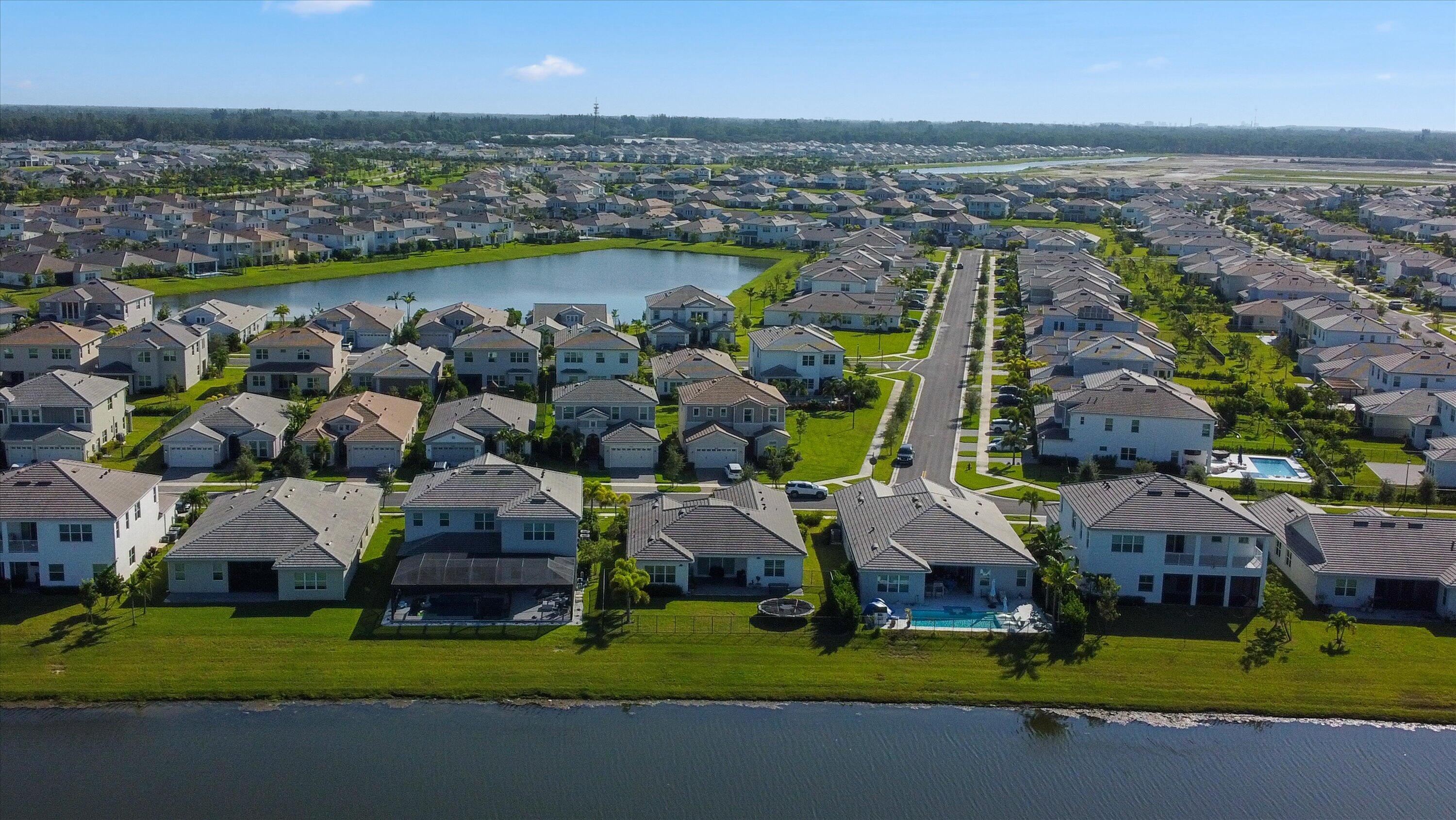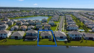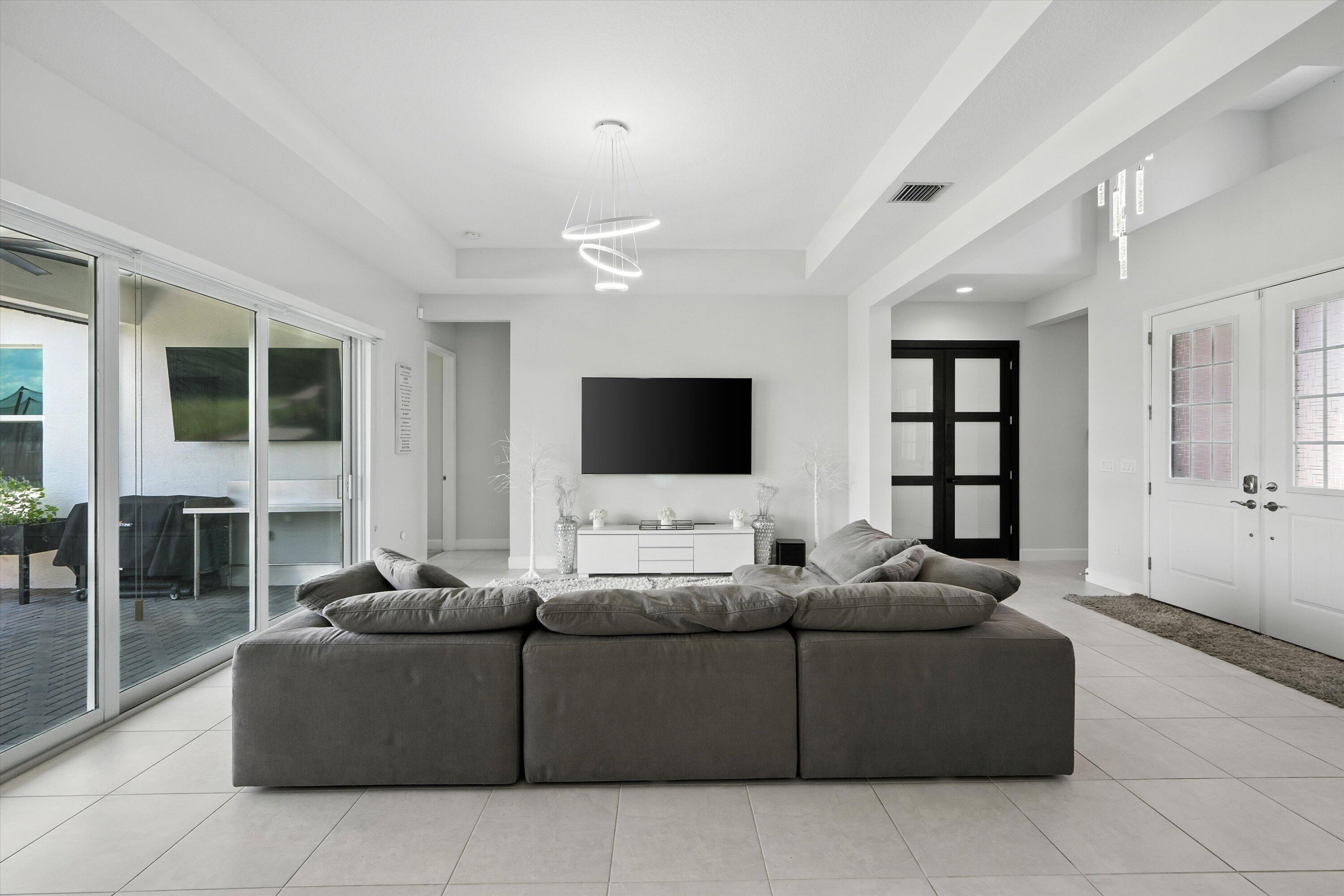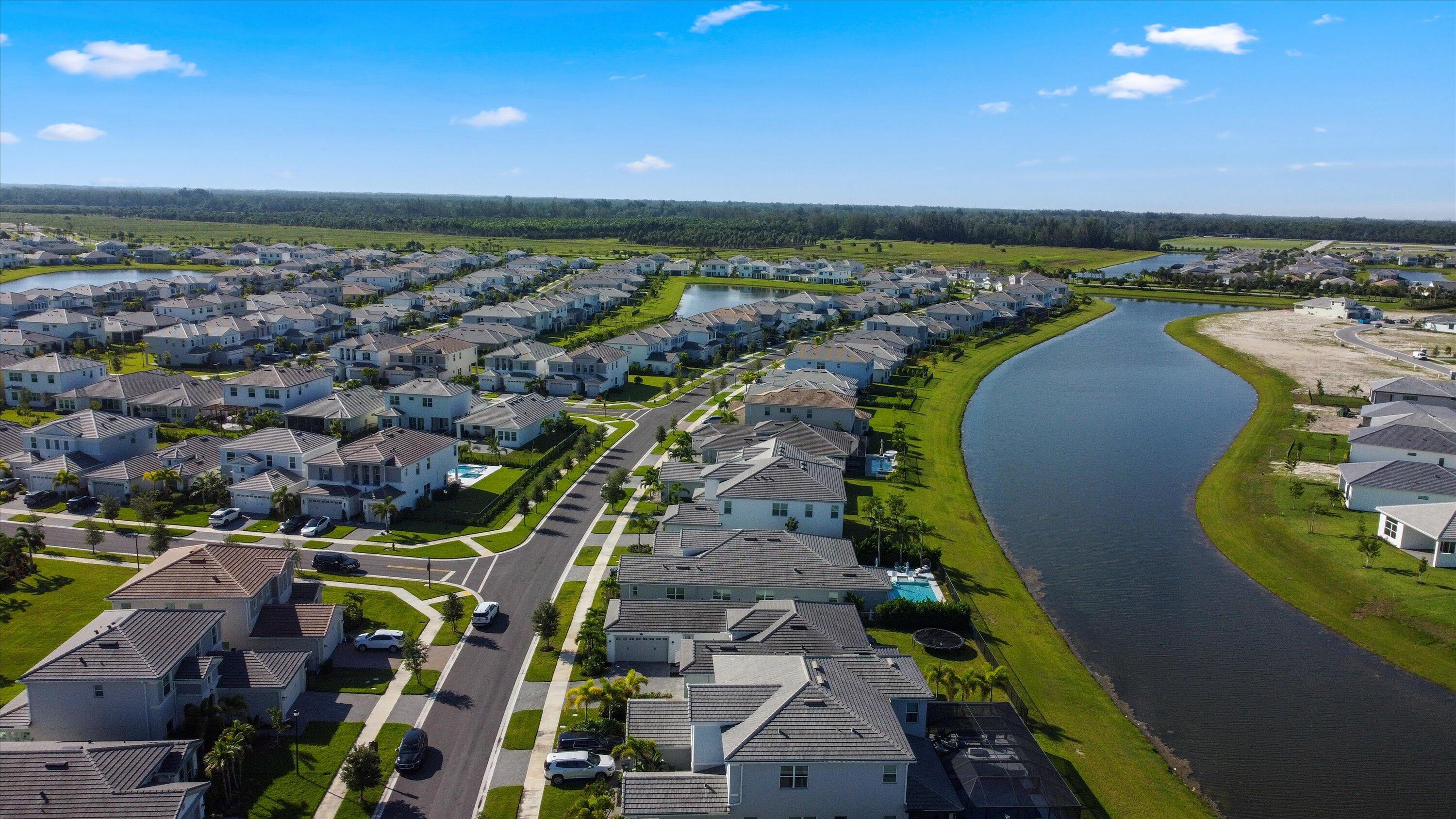 Welcome to this stunning Sandhill model in the desirable Orchards community of Westlake. Offering 3 bedrooms, PLUS a den/office, 3 bathrooms, and a 2-car garage, this home spans 2,410 sq. ft. of thoughtfully designed living space and sits on a beautiful lake view lot. From the moment you arrive, the curb appeal stands out with modern black double doors that open to a bright and inviting interior. White walls and tile flooring flow throughout the main living areas, creating a fresh and airy atmosphere. The living room is filled with natural light thanks to expansive sliding glass doors that frame the picturesque lake views.The gourmet kitchen is a true centerpiece, showcasing white shaker cabinets, an abundance of storage, quartz countertops, a stylish backsplash, stainless steel appliances including double wall ovens, recessed lighting, and a long extended island with seating for up to 10 guests. Just off the kitchen, the formal dining room provides an elegant setting with its spacious design and bold black accent wall. The owner's suite is generously sized with multiple windows that bathe the room in light and features carpet flooring, walk-in closets, and a spa-like bathroom with white shaker cabinetry, granite countertops, dual sinks, and a glass-enclosed shower. The second bedroom is a private ensuite with its own bathroom offering granite counters, white cabinetry, and a shower-tub combination. The third bedroom is conveniently located near a full guest bath, appointed with quartz countertops, white shaker cabinets, and a shower. The home also includes a spacious den/office with upgraded modern double black doors and tile flooring, as well as a laundry room with Whirlpool appliances. Outdoor living is equally impressive with a covered lanai featuring a motorized screen enclosure, extended paver patio, and a fenced backyard with ample space for a pool all while enjoying serene lake views. With full impact windows throughout, this home combines style, comfort, and peace of mind in one perfect package.