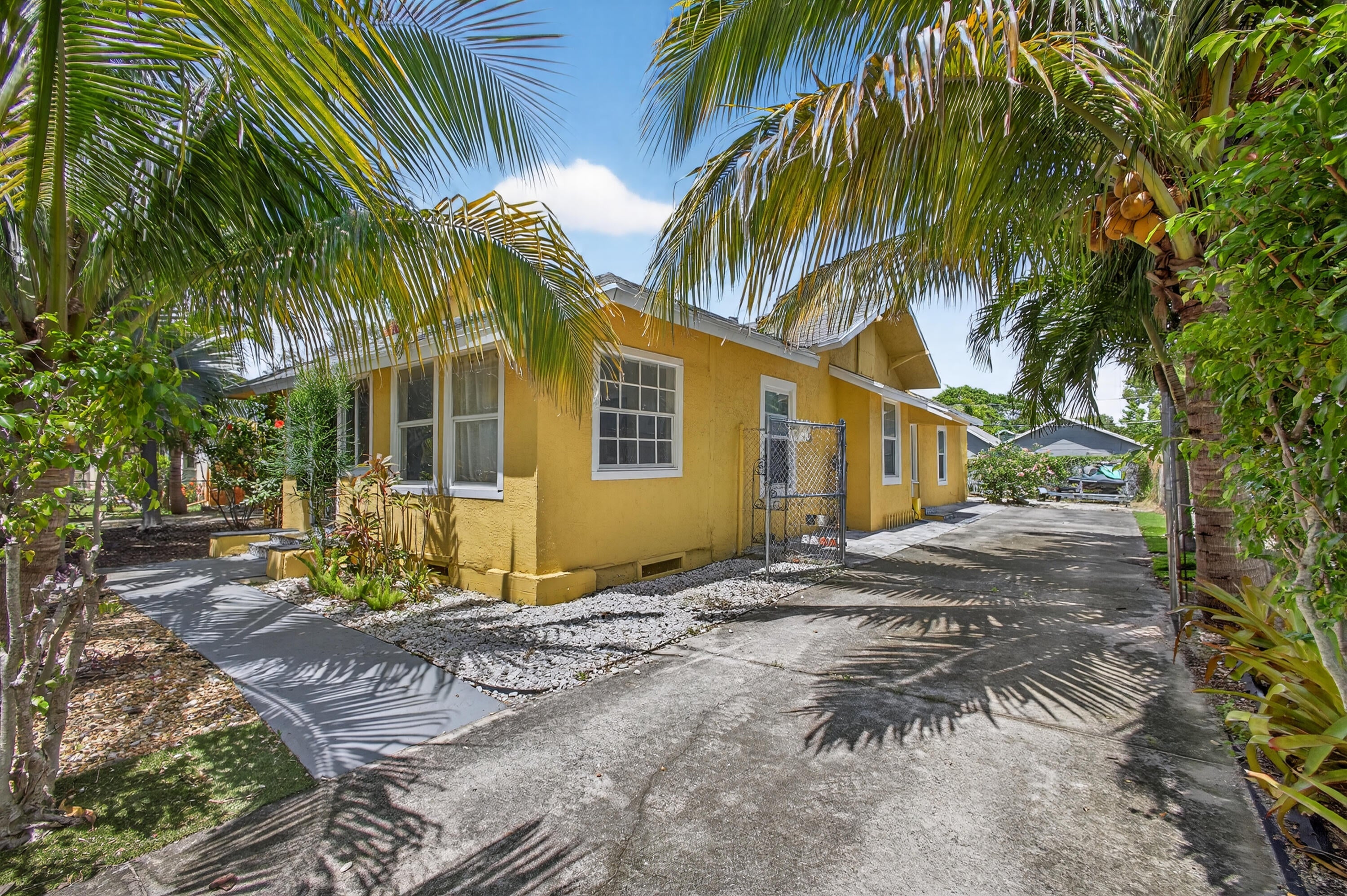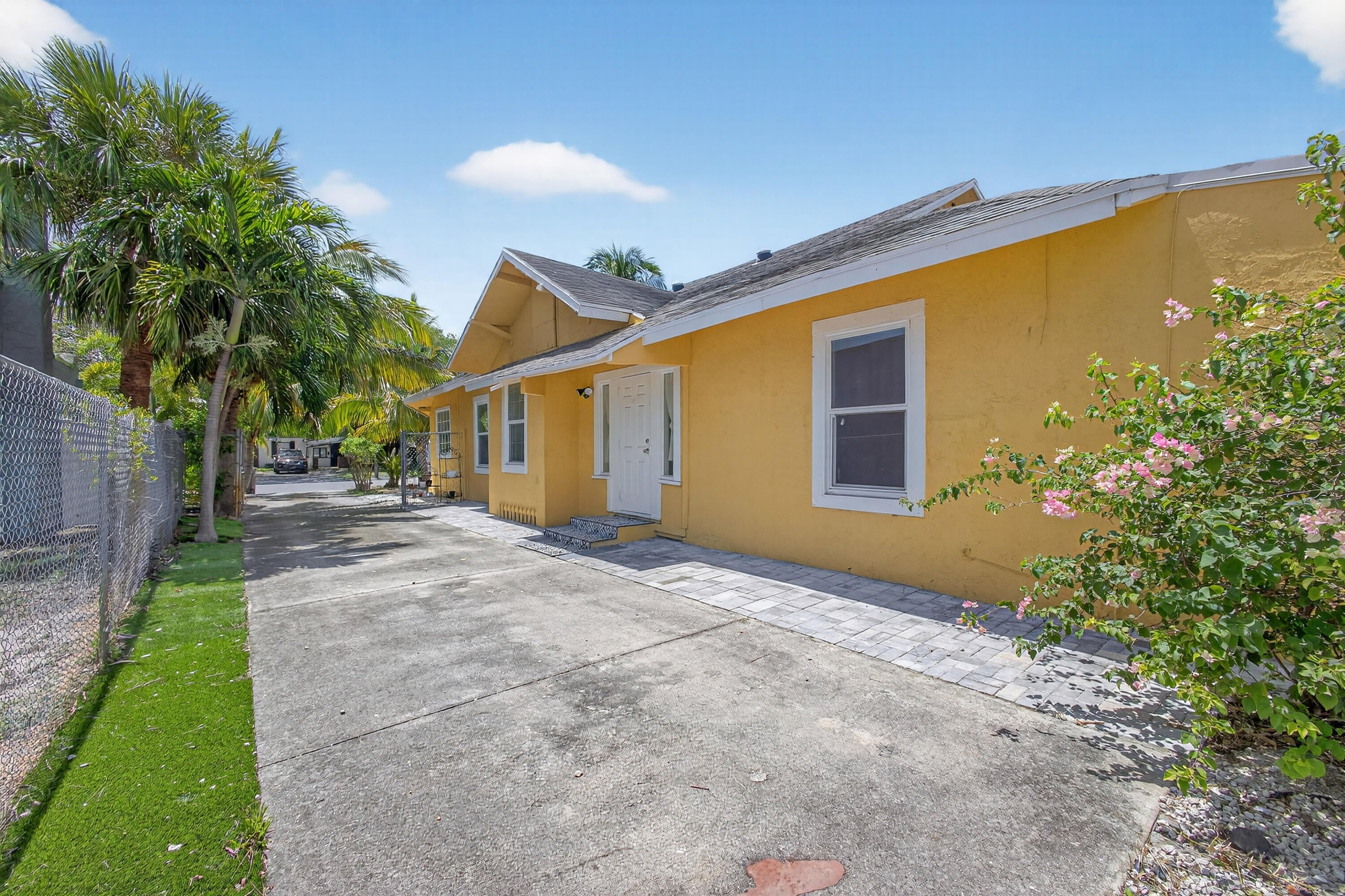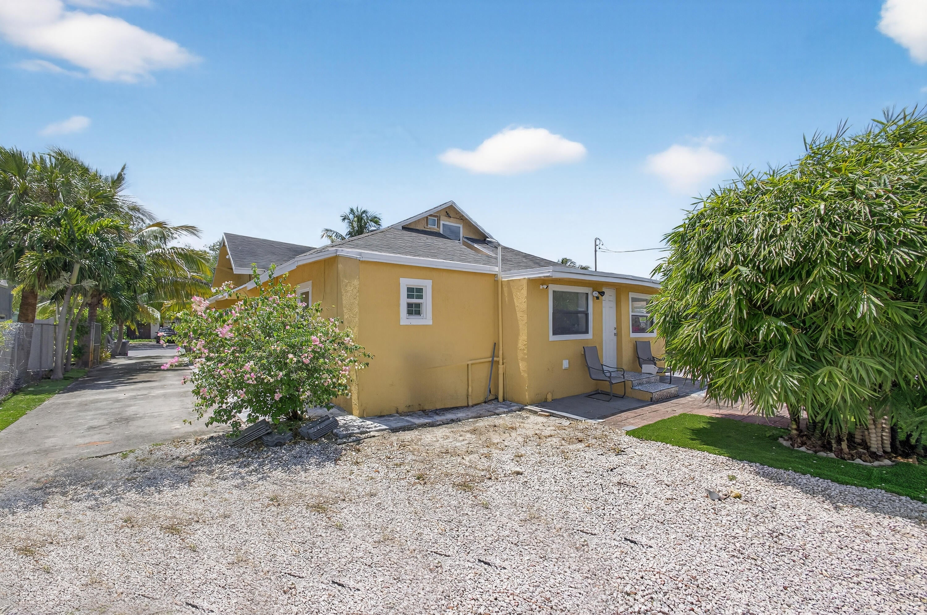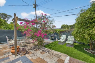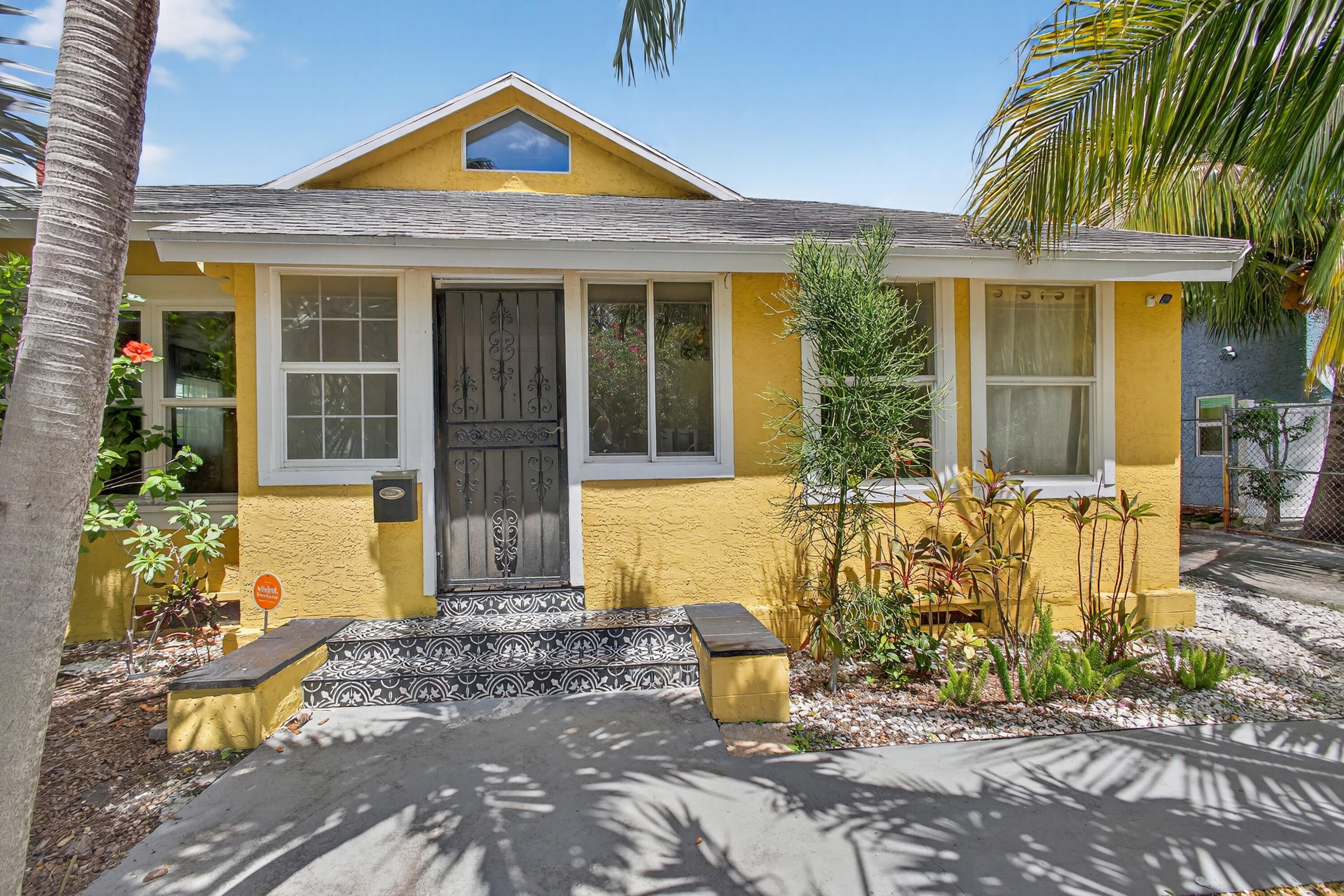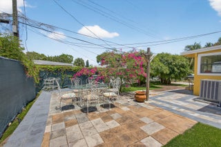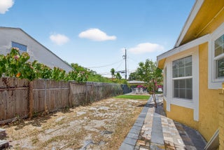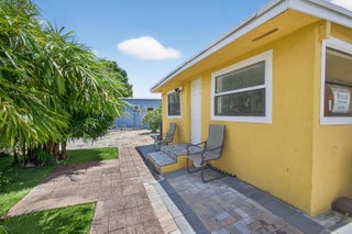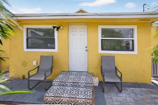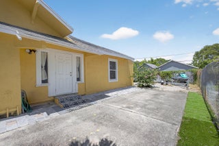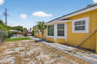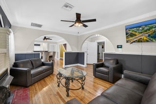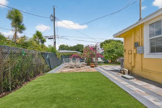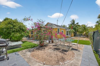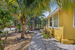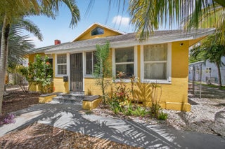 This charming home is a 3bed/3bath with numerous updates including impact windows, restored wood floors, all new kitchen, lighting, new bathrooms plus much more. Tropical landscape leads you into a cozy front porch, then a welcoming foyer, on to the spacious living room that boasts a beautiful fireplace and archway into the dining area with bay windows, then on to the gourmet kitchen and a huge utility room. The main bedroom is on the 1st floor with an en-suite bathroom, bedroom 2 is also an en-suite and has a private entrance, perfect for an in-law suite or income studio, bedroom 3 is upstairs with a huge walk-in closet. The yard is an outdoor oasis with multiple lounging areas, paver patios, artificial turf and fully fenced with lots of parking. Close to beaches and PBI airport. Hurry!