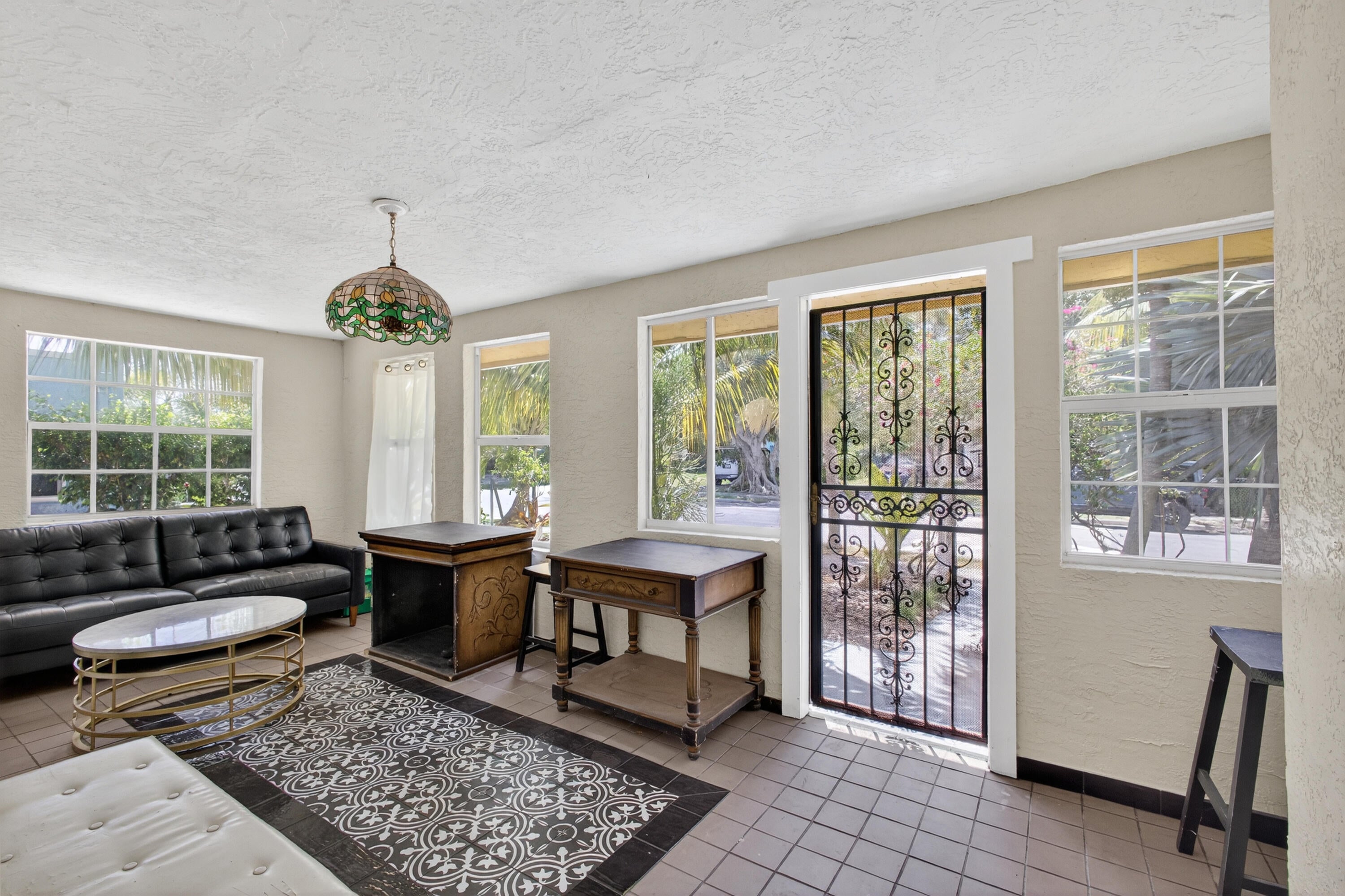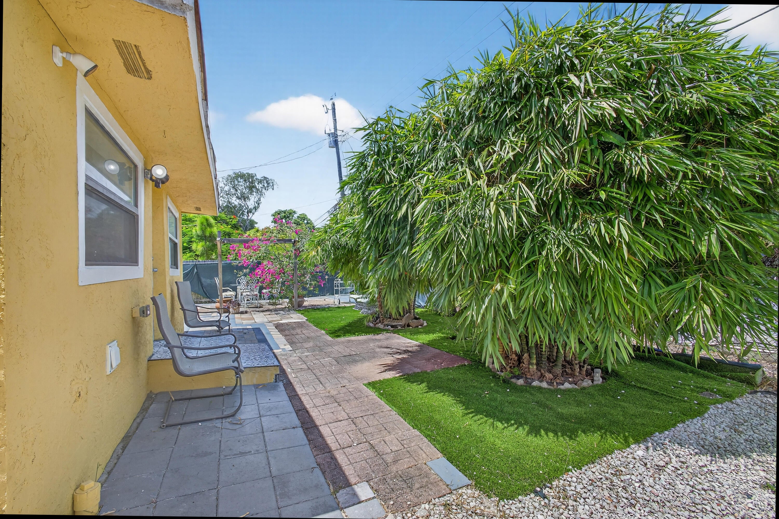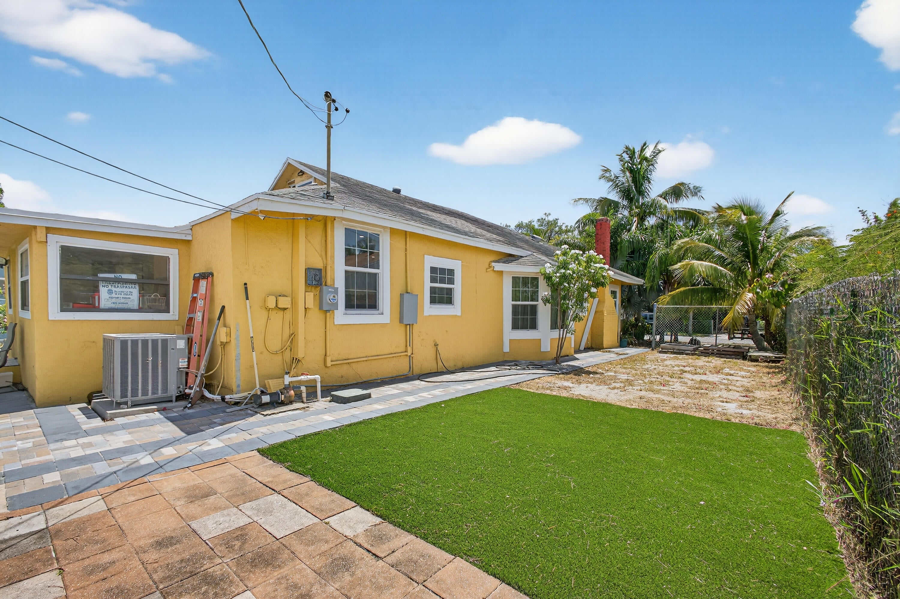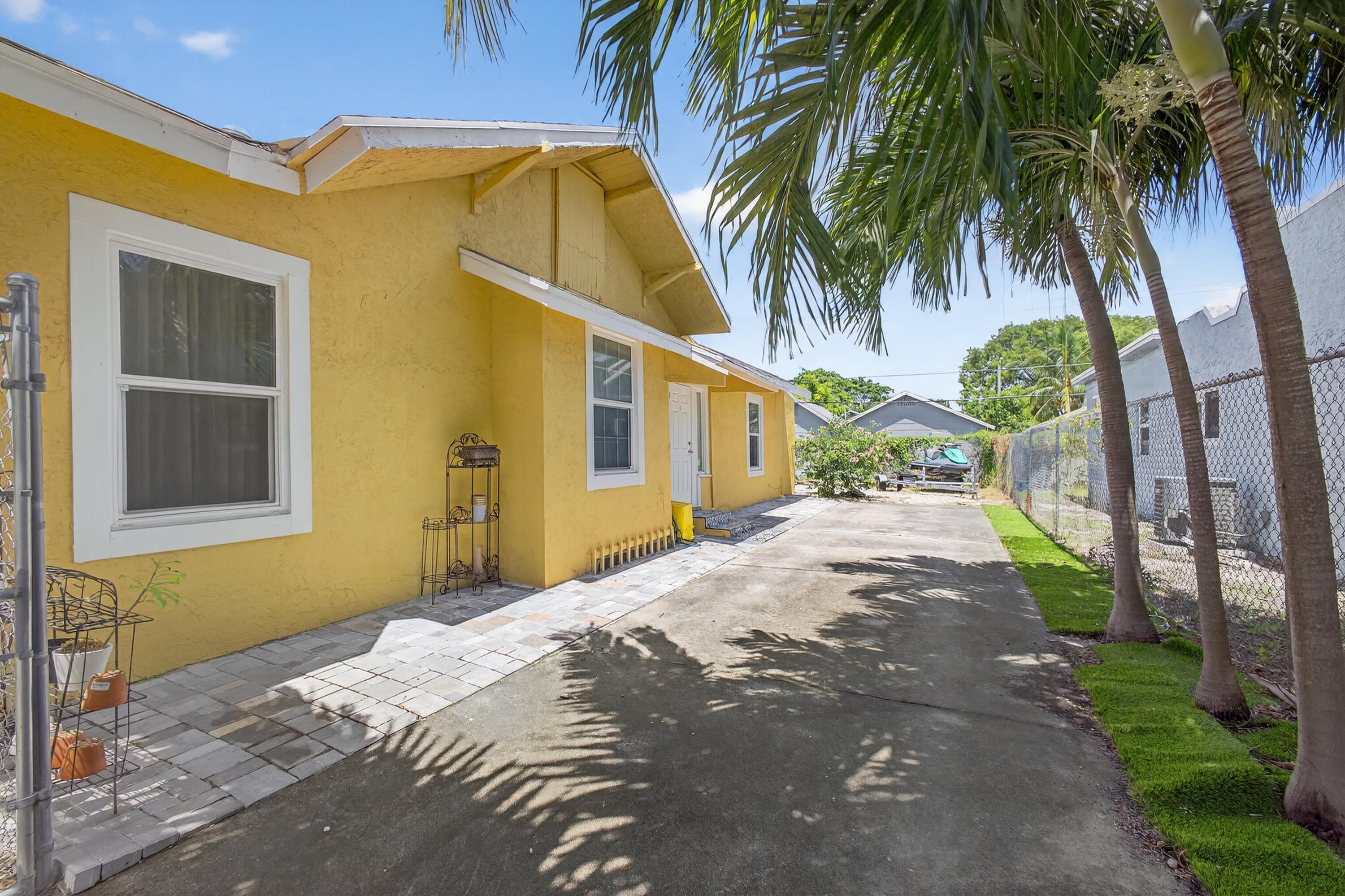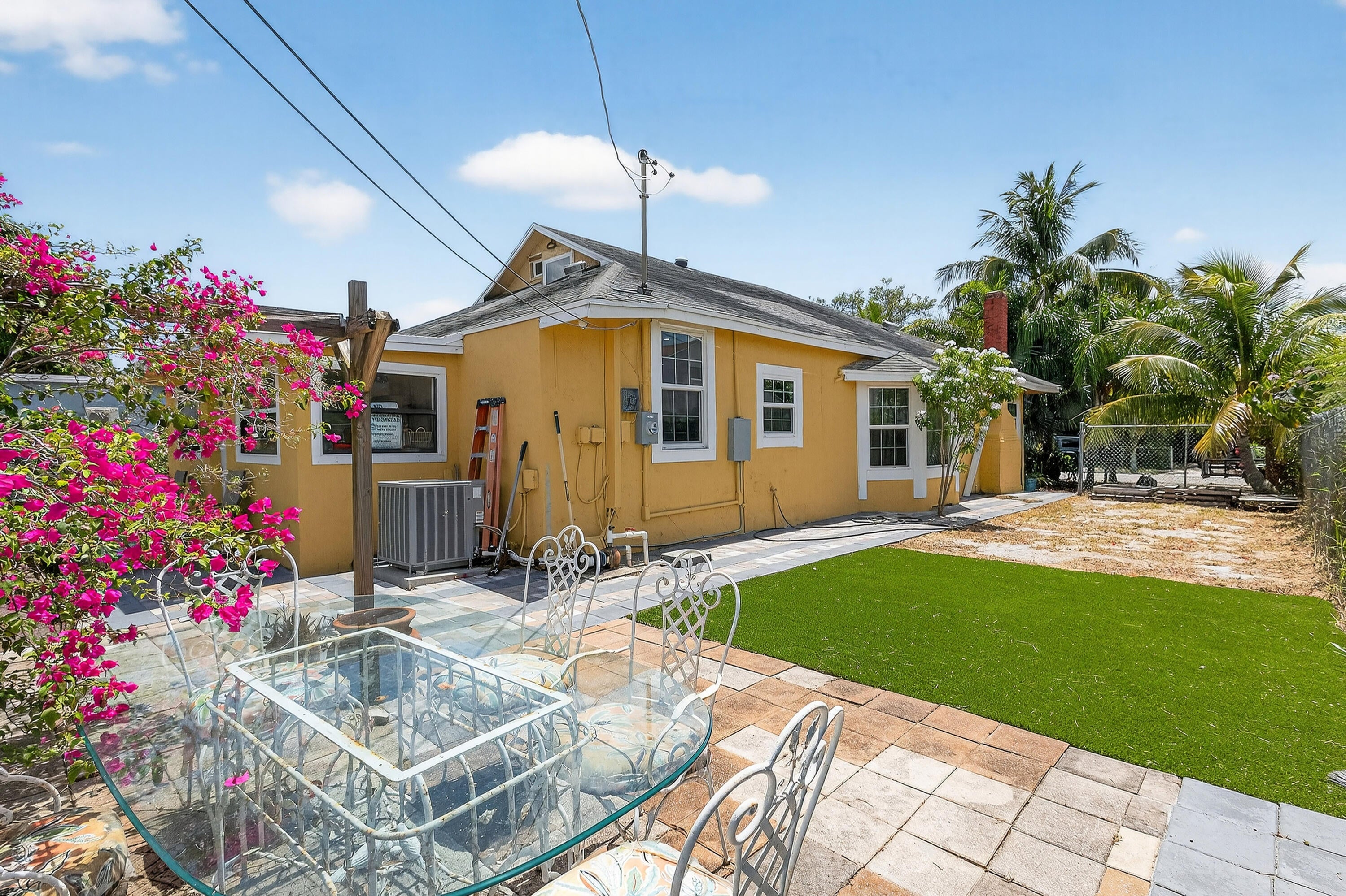 This charming home is a 3bed/3bath with numerous updates including impact windows, restored wood floors, all new kitchen, lighting, new bathrooms plus much more. Tropical landscape leads you into a cozy front porch, then a welcoming foyer, on to the spacious living room that boasts a beautiful fireplace and archway into the dining area with bay windows, then on to the gourmet kitchen and a huge utility room. The main bedroom is on the 1st floor with an en-suite bathroom, bedroom 2 is also an en-suite and has a private entrance, perfect for an in-law suite or income studio, bedroom 3 is upstairs with a huge walk-in closet. The yard is an outdoor oasis with multiple lounging areas, paver patios, artificial turf and fully fenced with lots of parking. Close to beaches and PBI airport. Hurry!