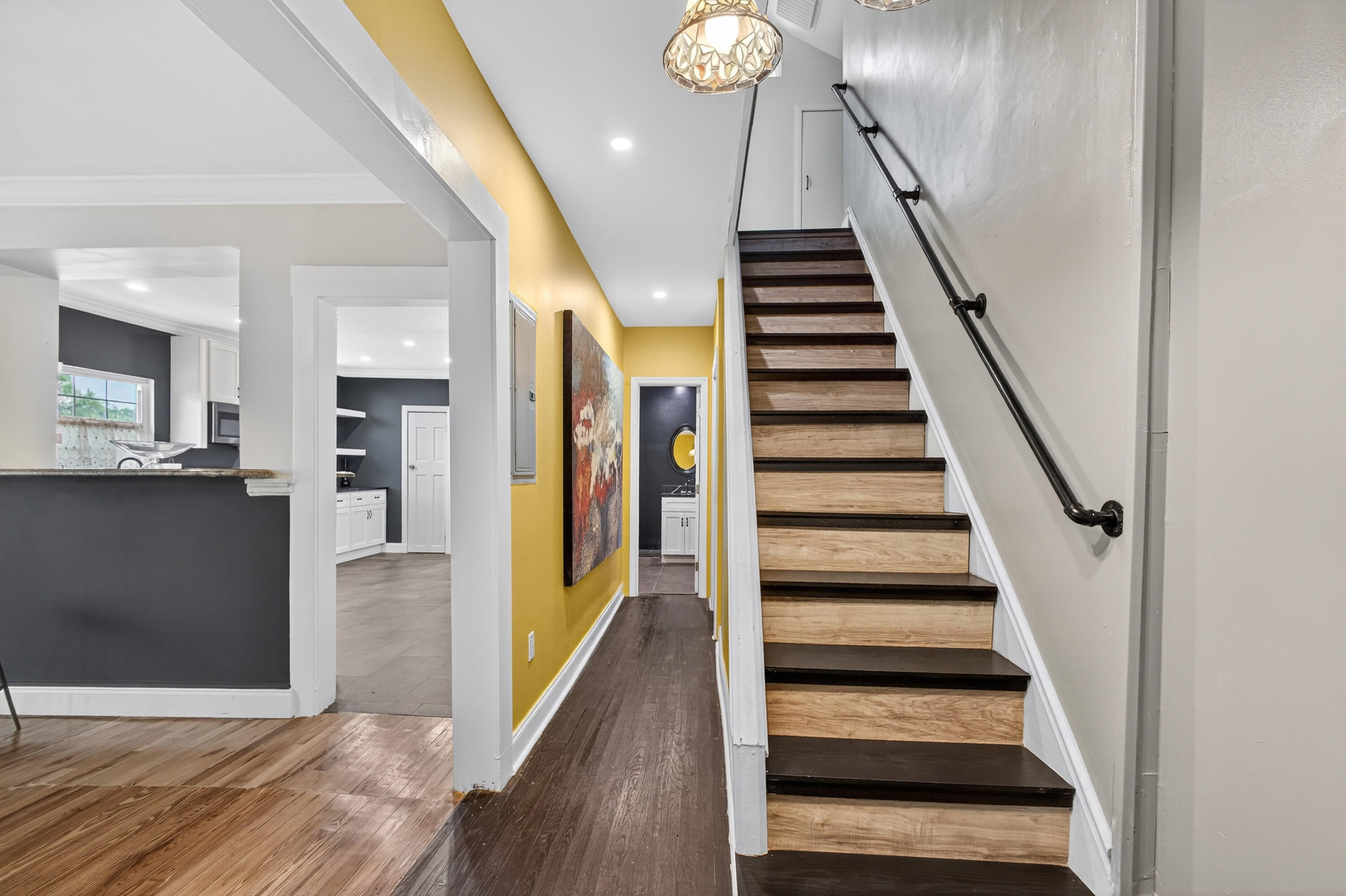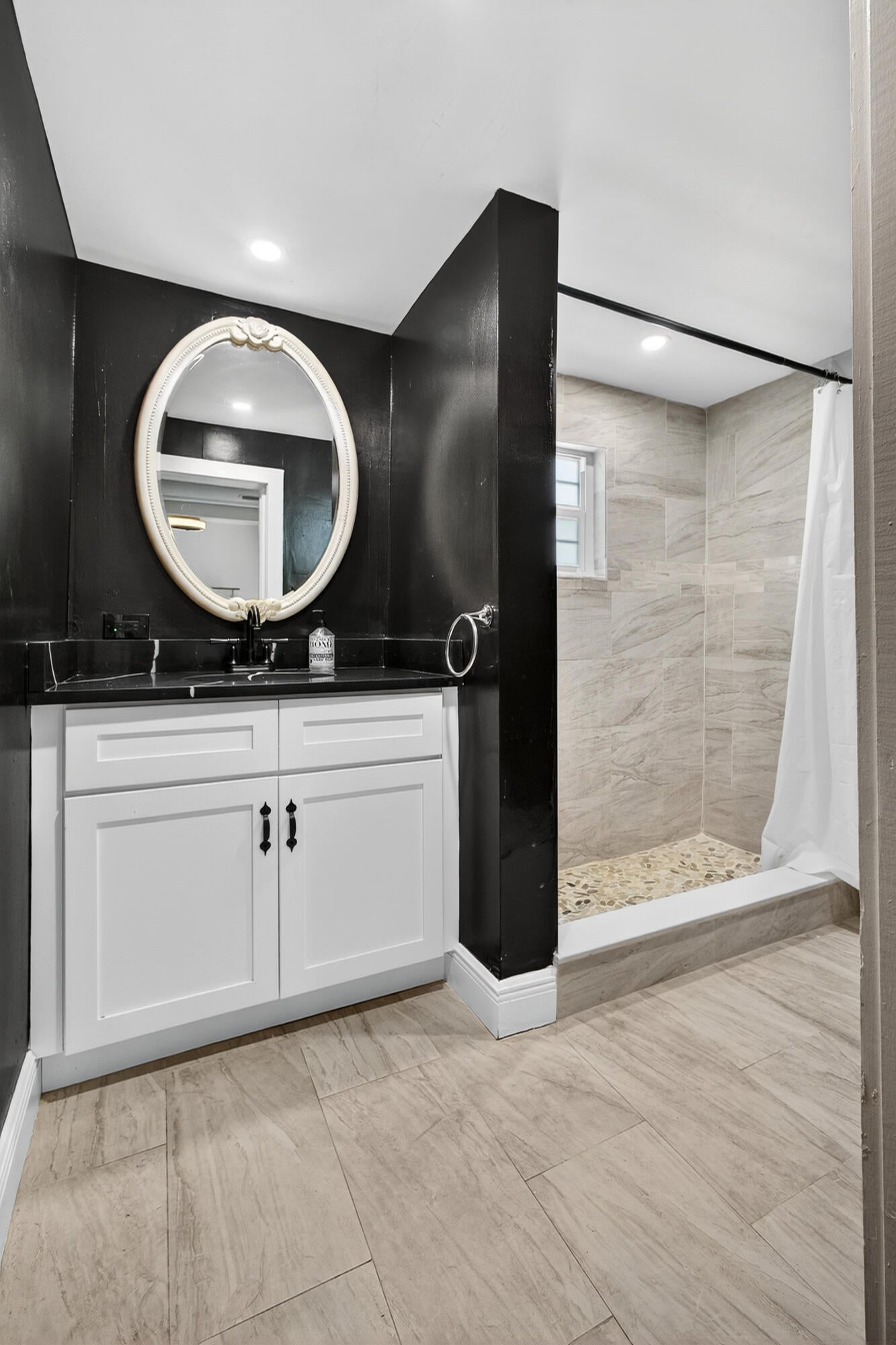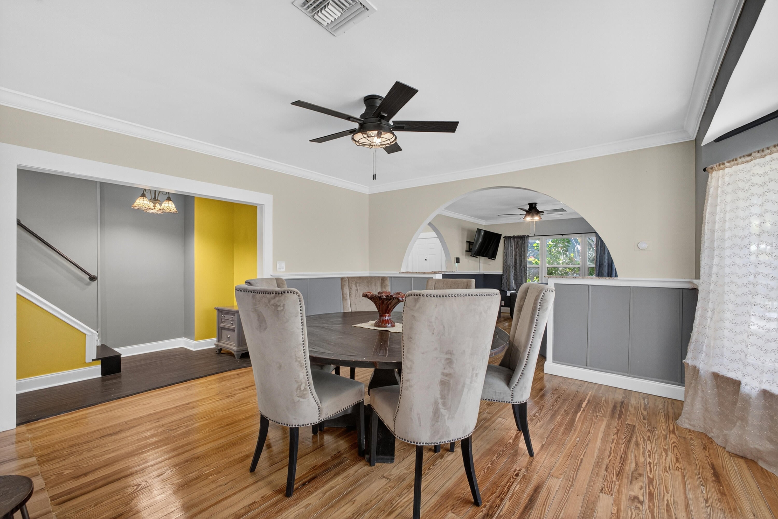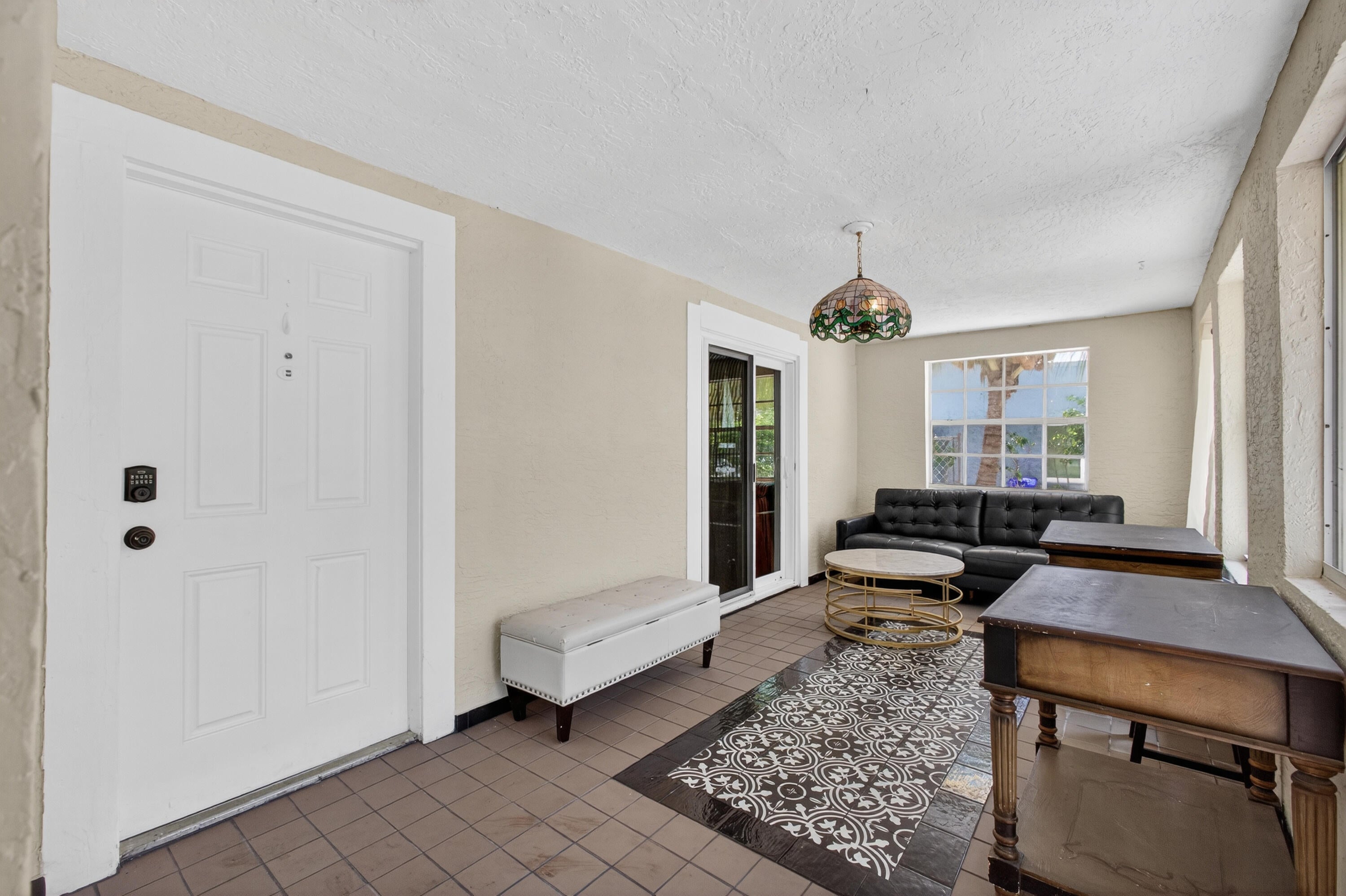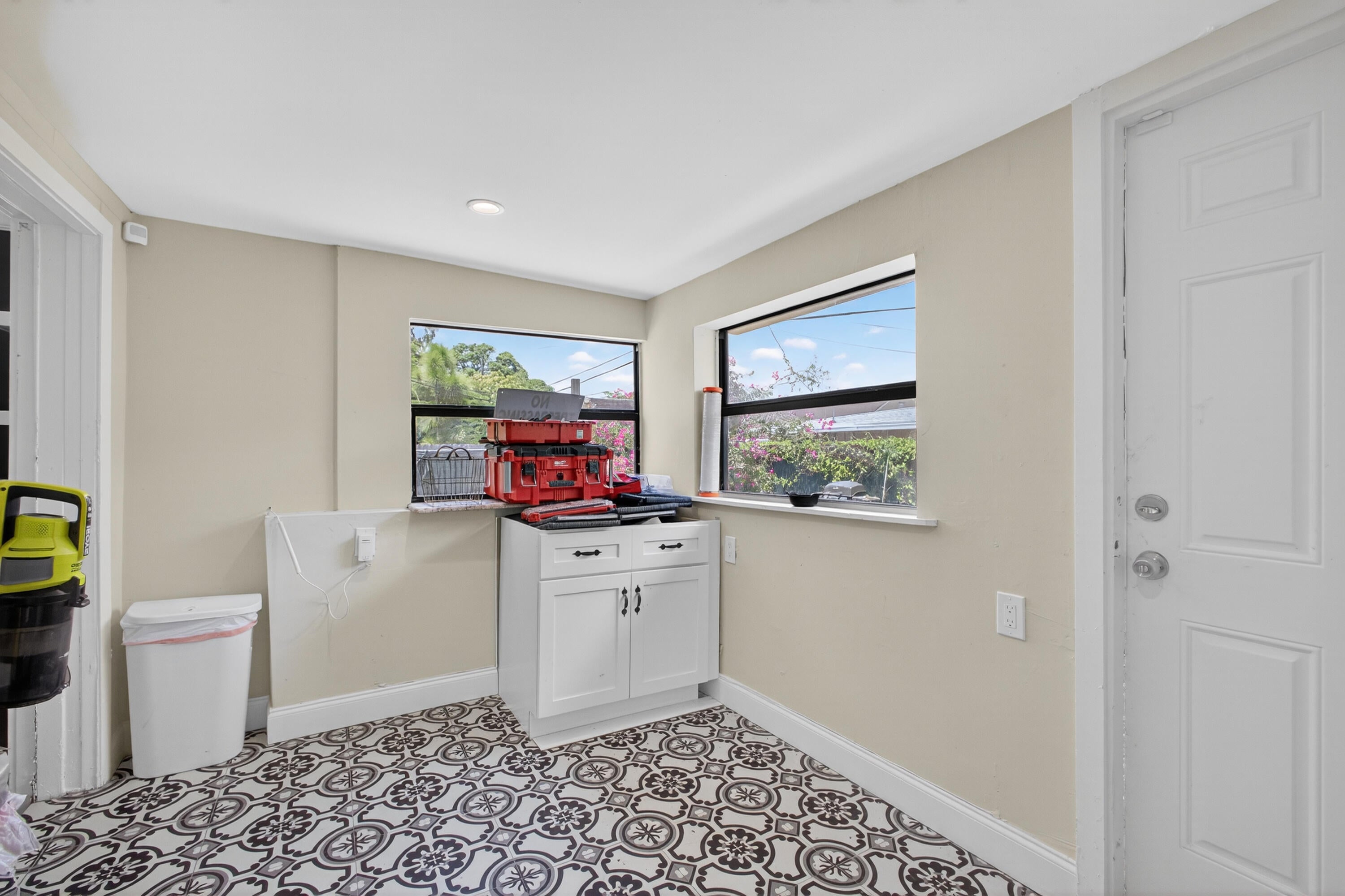 This charming home is a 3bed/3bath with numerous updates including impact windows, restored wood floors, all new kitchen, lighting, new bathrooms plus much more. Tropical landscape leads you into a cozy front porch, then a welcoming foyer, on to the spacious living room that boasts a beautiful fireplace and archway into the dining area with bay windows, then on to the gourmet kitchen and a huge utility room. The main bedroom is on the 1st floor with an en-suite bathroom, bedroom 2 is also an en-suite and has a private entrance, perfect for an in-law suite or income studio, bedroom 3 is upstairs with a huge walk-in closet. The yard is an outdoor oasis with multiple lounging areas, paver patios, artificial turf and fully fenced with lots of parking. Close to beaches and PBI airport. Hurry!