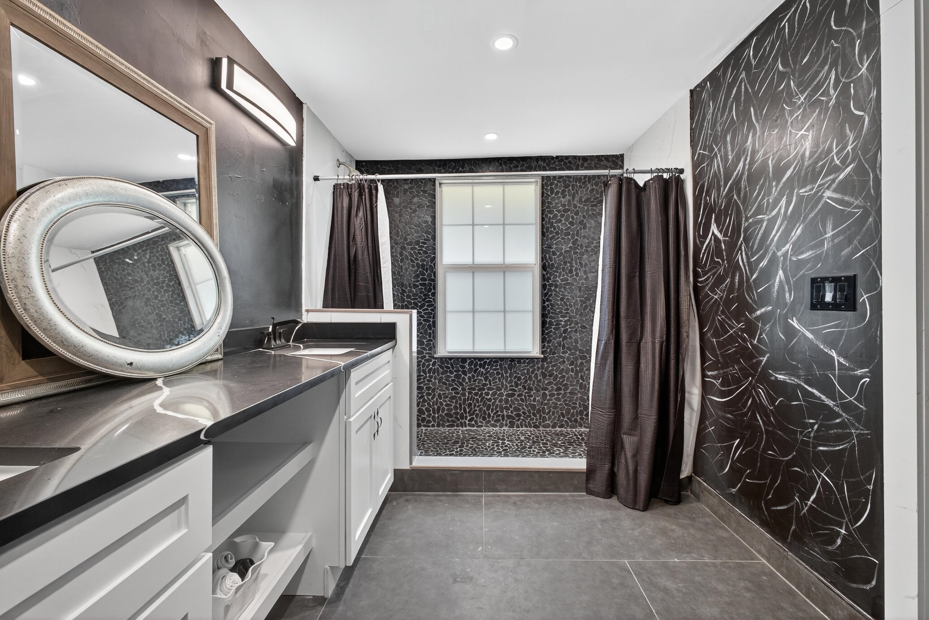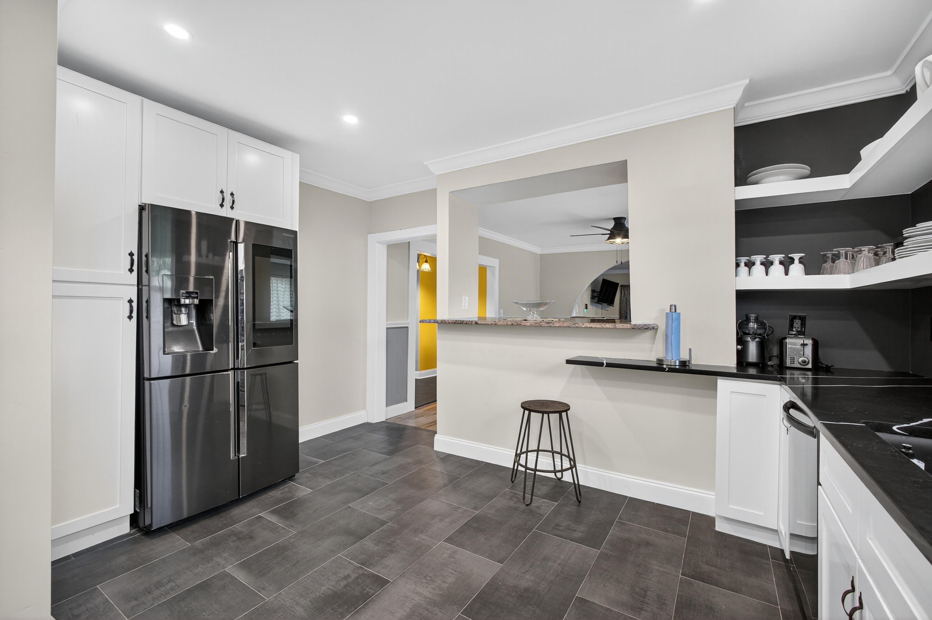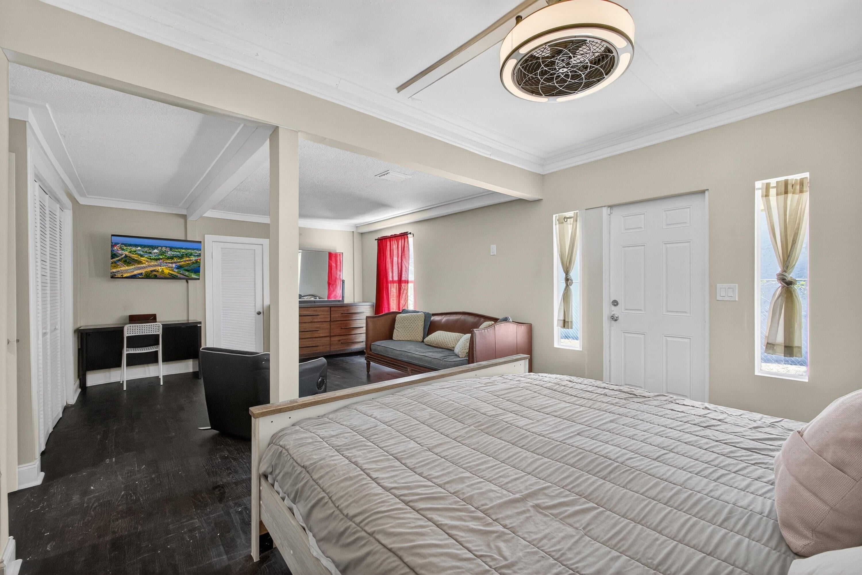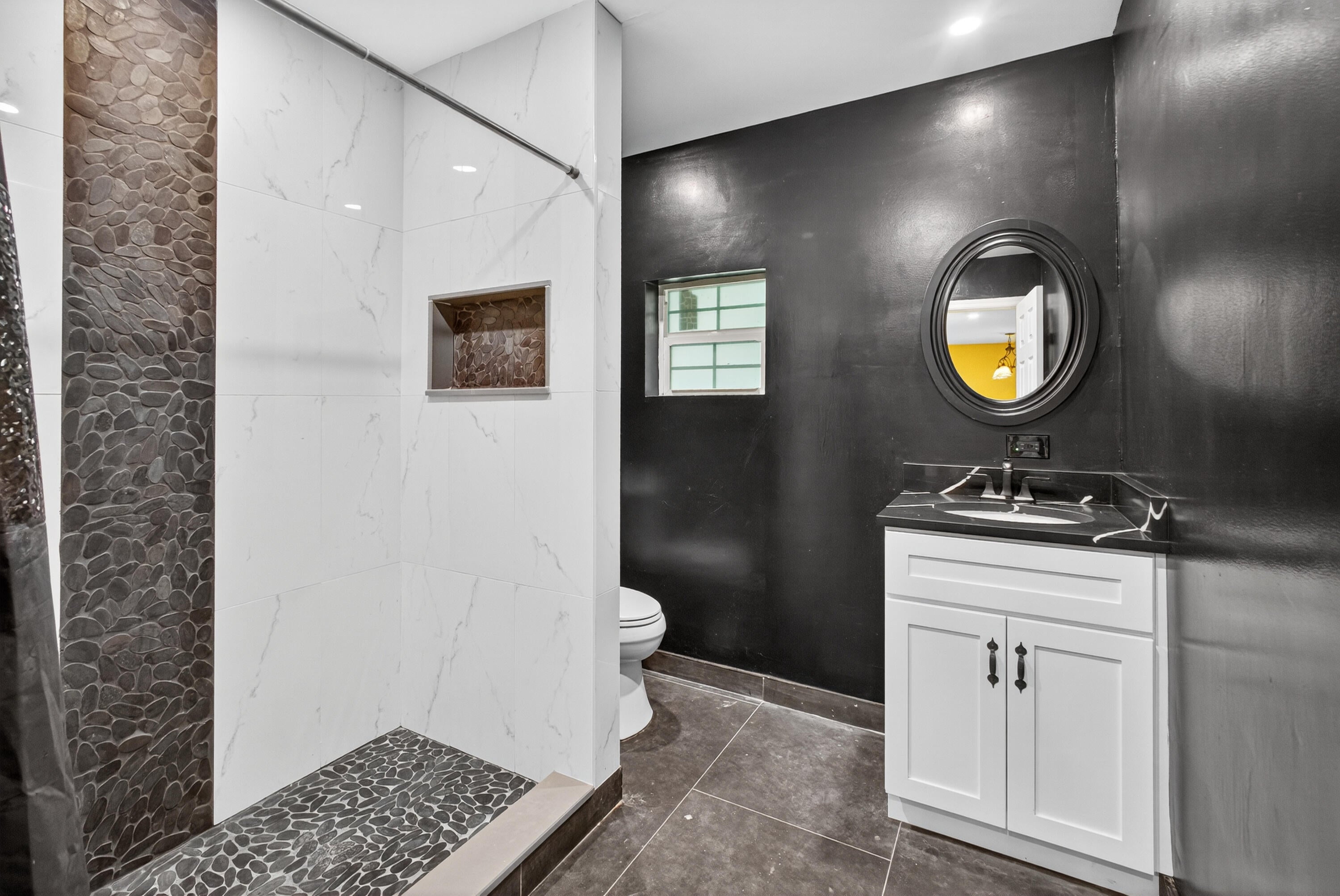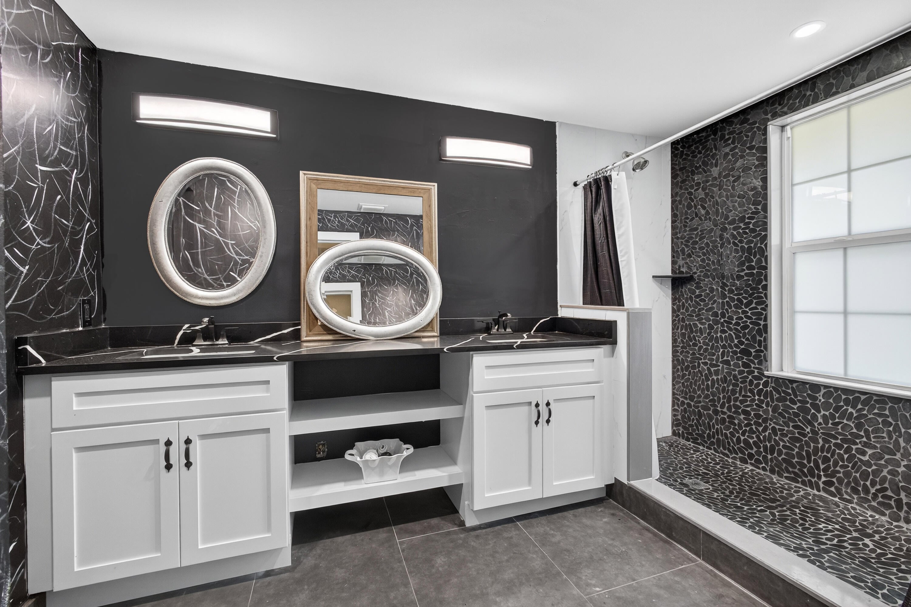 This charming home is a 3bed/3bath with numerous updates including impact windows, restored wood floors, all new kitchen, lighting, new bathrooms plus much more. Tropical landscape leads you into a cozy front porch, then a welcoming foyer, on to the spacious living room that boasts a beautiful fireplace and archway into the dining area with bay windows, then on to the gourmet kitchen and a huge utility room. The main bedroom is on the 1st floor with an en-suite bathroom, bedroom 2 is also an en-suite and has a private entrance, perfect for an in-law suite or income studio, bedroom 3 is upstairs with a huge walk-in closet. The yard is an outdoor oasis with multiple lounging areas, paver patios, artificial turf and fully fenced with lots of parking. Close to beaches and PBI airport. Hurry!