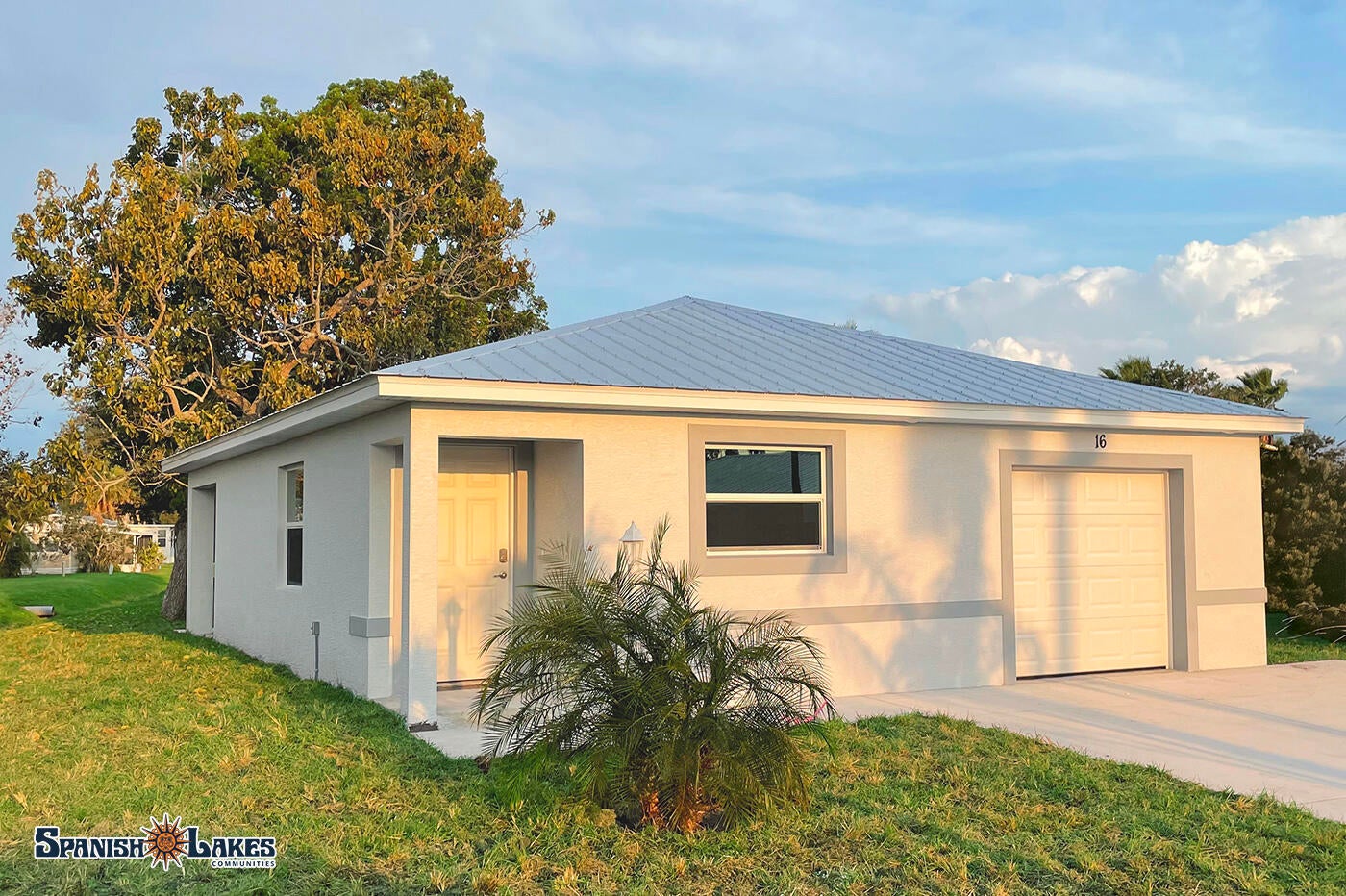 Welcome to easy, elegant 55+ living in our innovative and beautifully designed 1-bedroom Braden model. Featuring concrete block construction, quartz countertops, impact windows, and a metal roof- this home offers both style and durability for those seeking to downsize without compromising value and quality. Enjoy an open-concept living area, full-size washer/dryer in a spacious laundry room, an ample kitchen with stainless steel appliances and a well-appointed bedroom, closet and rear covered porch. Other features: All models are built with 3/16th true plywood roof sheathing, hurricane tie straps, R-30 insulation, & hip roof designs ensuring big ins. premium discounts. Our homes are equipped with energy efficient appliances, keypad door locks, & a continuous quartz kitchen backsplash.